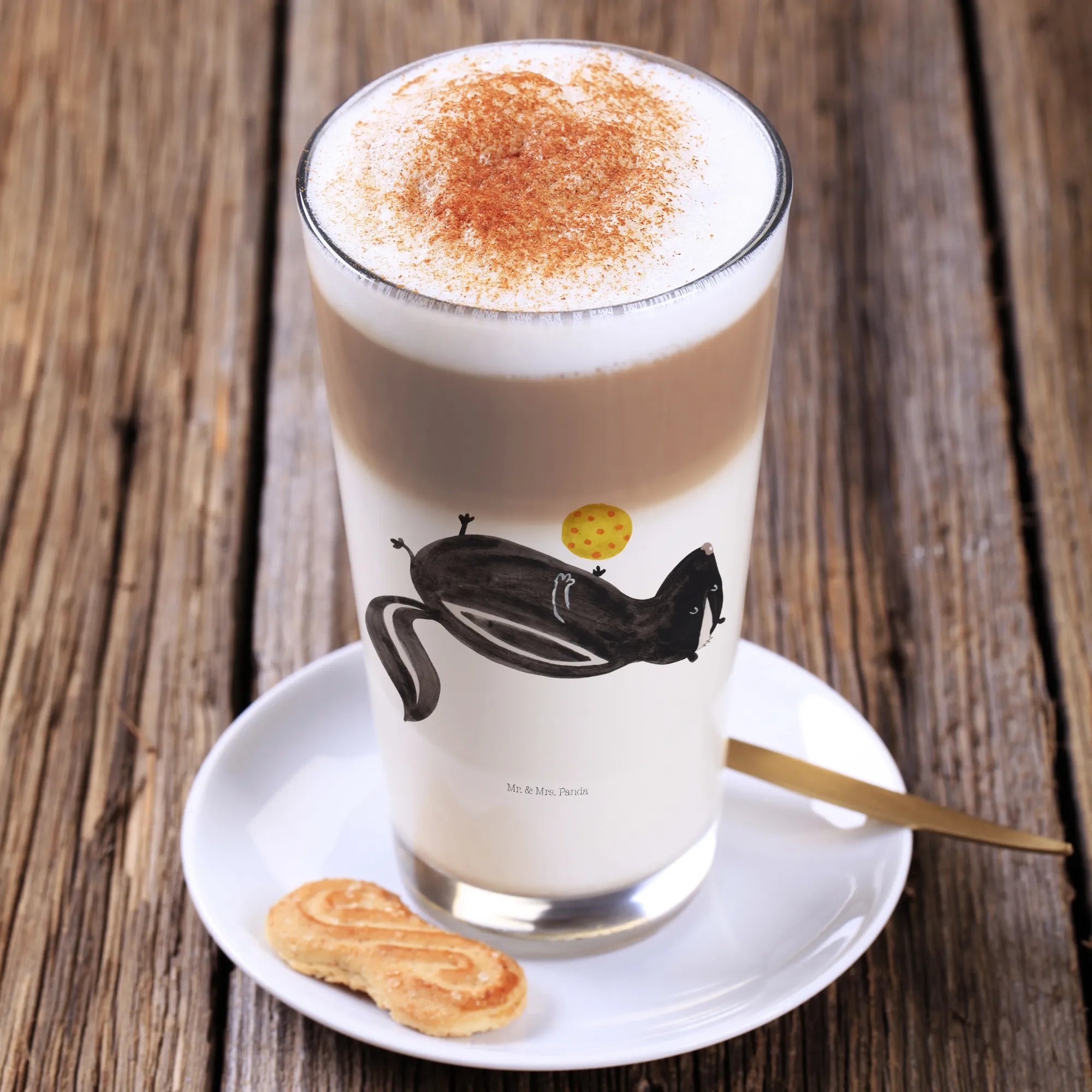 Das Cappuccino Glas mit dem niedlichen Stinktier Ball Motiv von Mr. & Mrs. Panda ist das perfekte Geschenk für jeden Anlass! Es ist nicht nur ein wunderschönes Trinkglas, sondern auch ein Stück Lebensfreude, das bei jeder Benutzung ein Lächeln auf dein Gesicht zaubert.