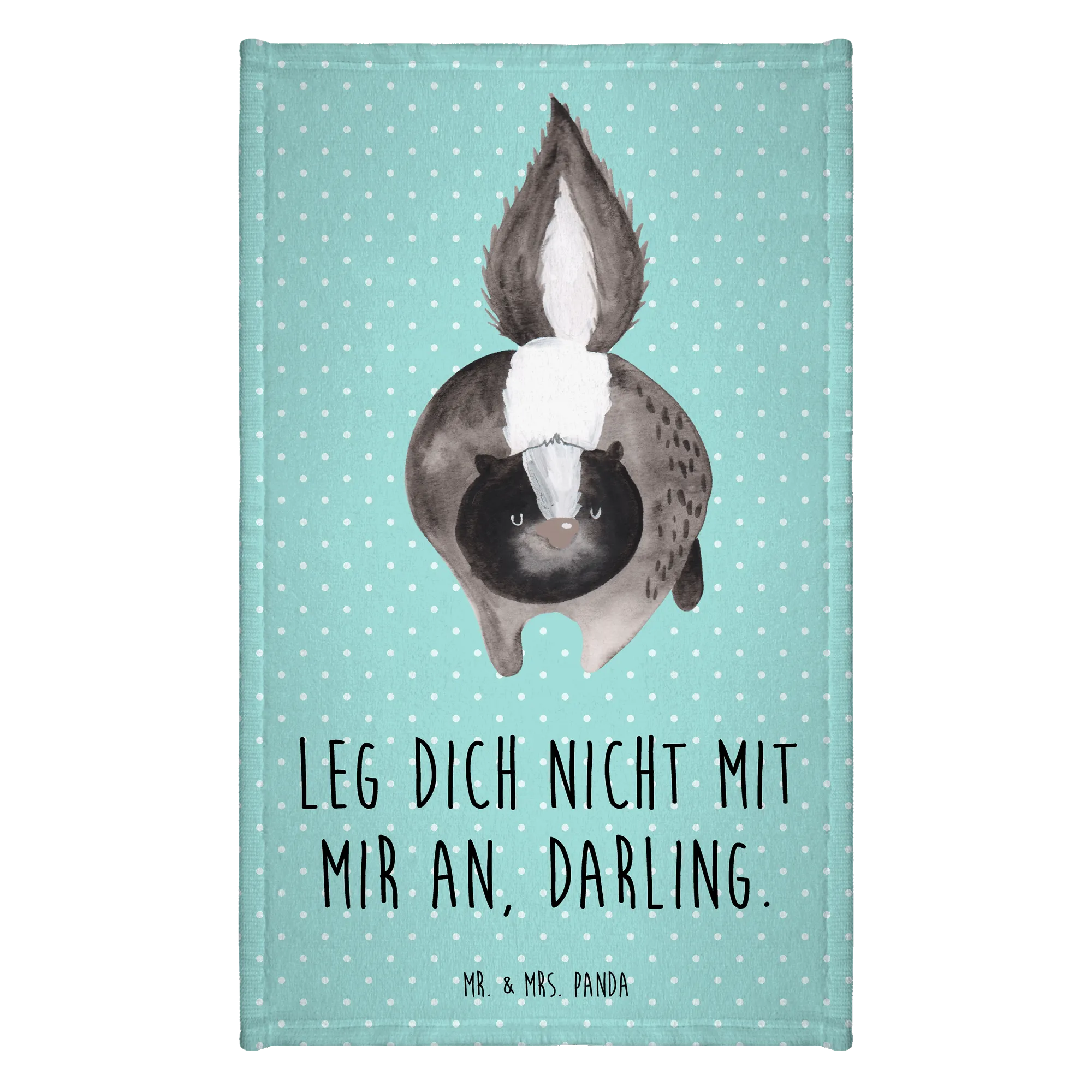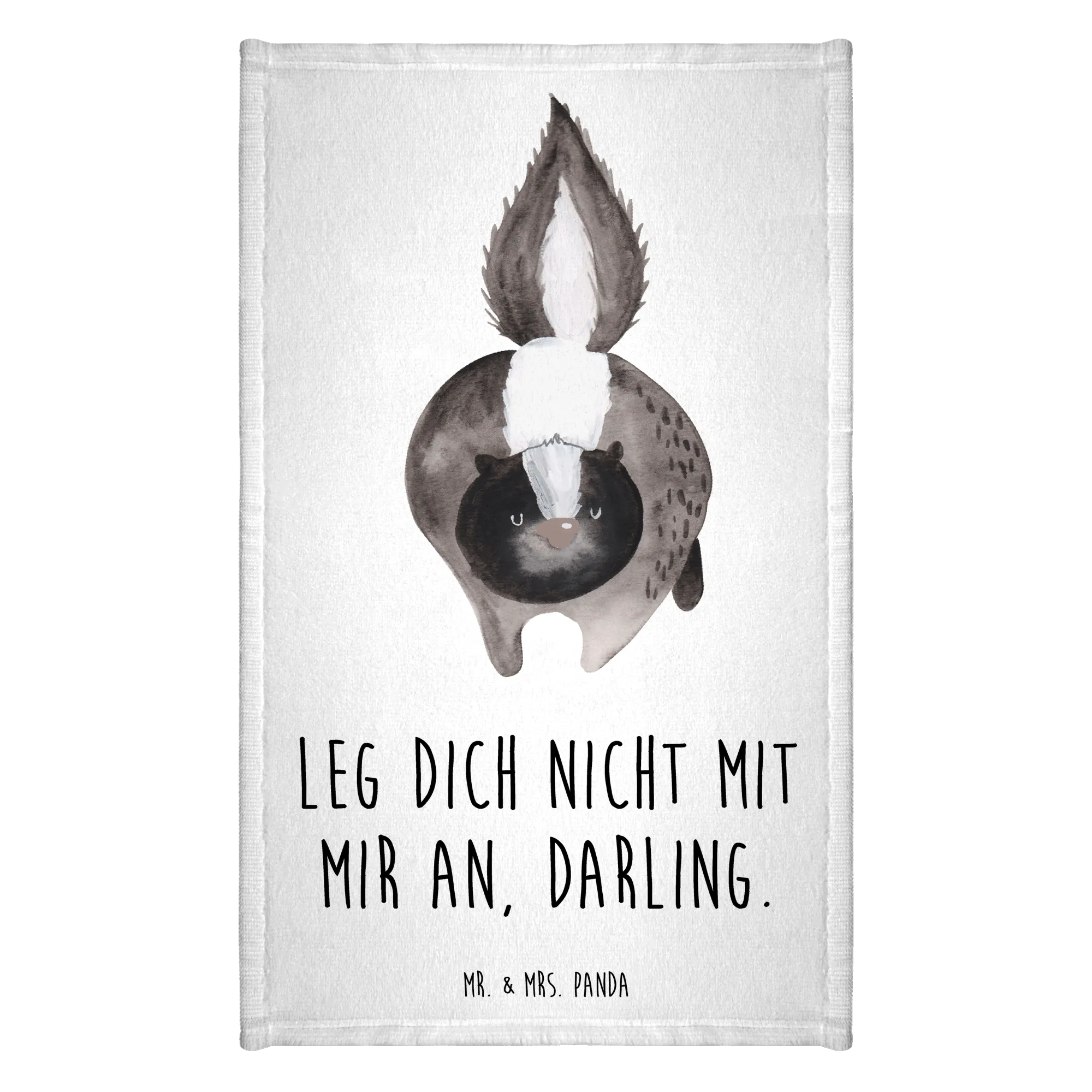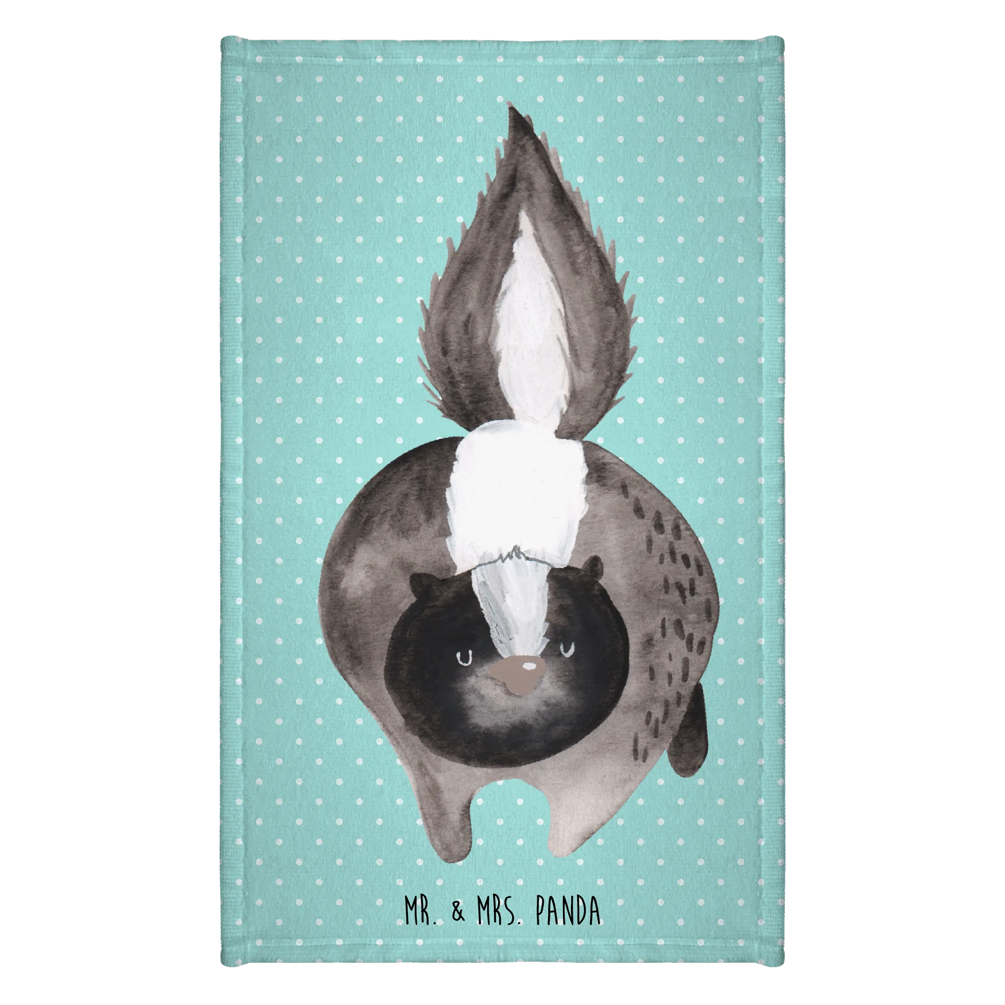 Das perfekte Gästehandtuch von Mr. & Mrs. Panda ist nicht nur ein praktisches Accessoire, sondern auch ein wunderbares Kunstwerk für dein Bad. Mit einem süßen Stinktier-Motiv "Angriff", das schmollend seinen buschigen Schwanz in die Luft hält, bringt es ein wenig Spaß und Stil in jeden Raum. Dieses Gästetuch ist hochwertig bedruckt und aus einer flauschigen Baumwollmischung gefertigt, wodurch es nicht nur extra weich ist, sondern sich auch fantastisch anfühlt! Mit den Maßen 300 mm x 500 mm eignet es sich hervorragend für dein Gästebad oder schlicht als liebevolles Detail in deinem Badezimmer.