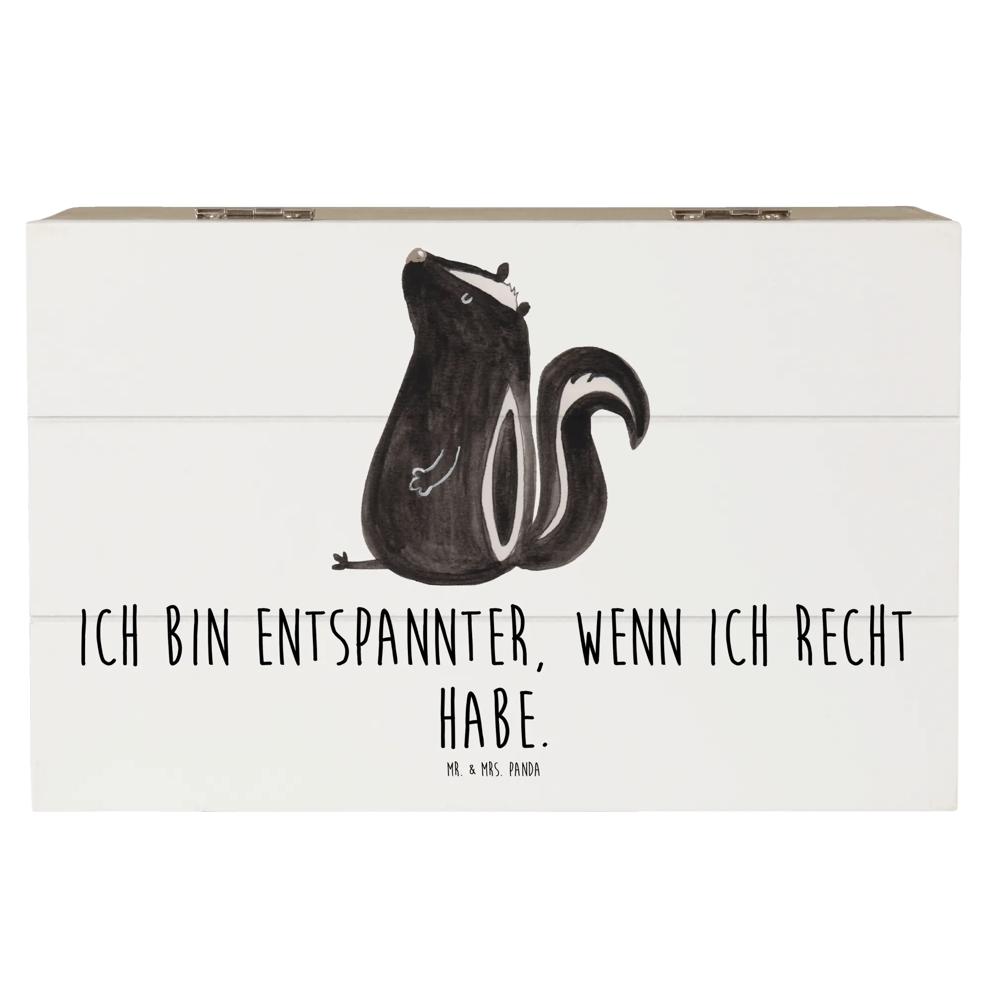 Das Motiv - das sitzende Stinktier - wird nicht nur die Herzen von Kindern erfreuen, sondern auch die von Erwachsenen! Charmante Sprüche wie "Ich bin entspannter, wenn ich Recht habe" machen diese Holzkiste zu einem witzigen und praktischen Geschenk für Kollegen im Büro oder für all jene, die gerne einen humorvollen Touch in ihrem Leben haben.