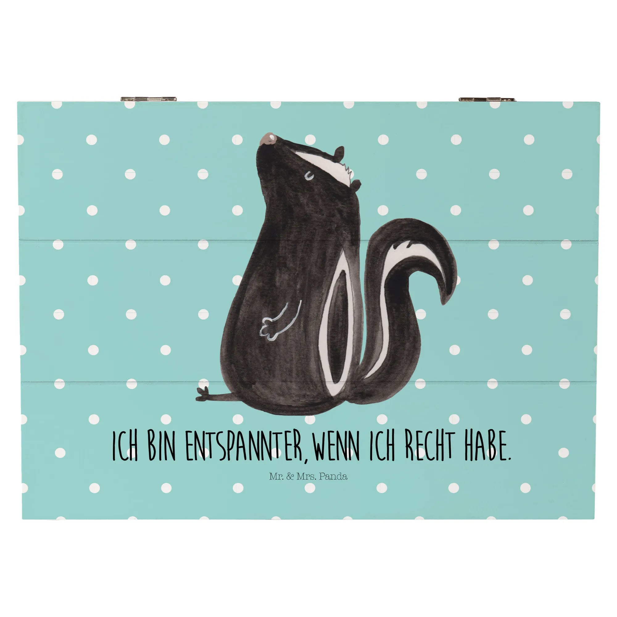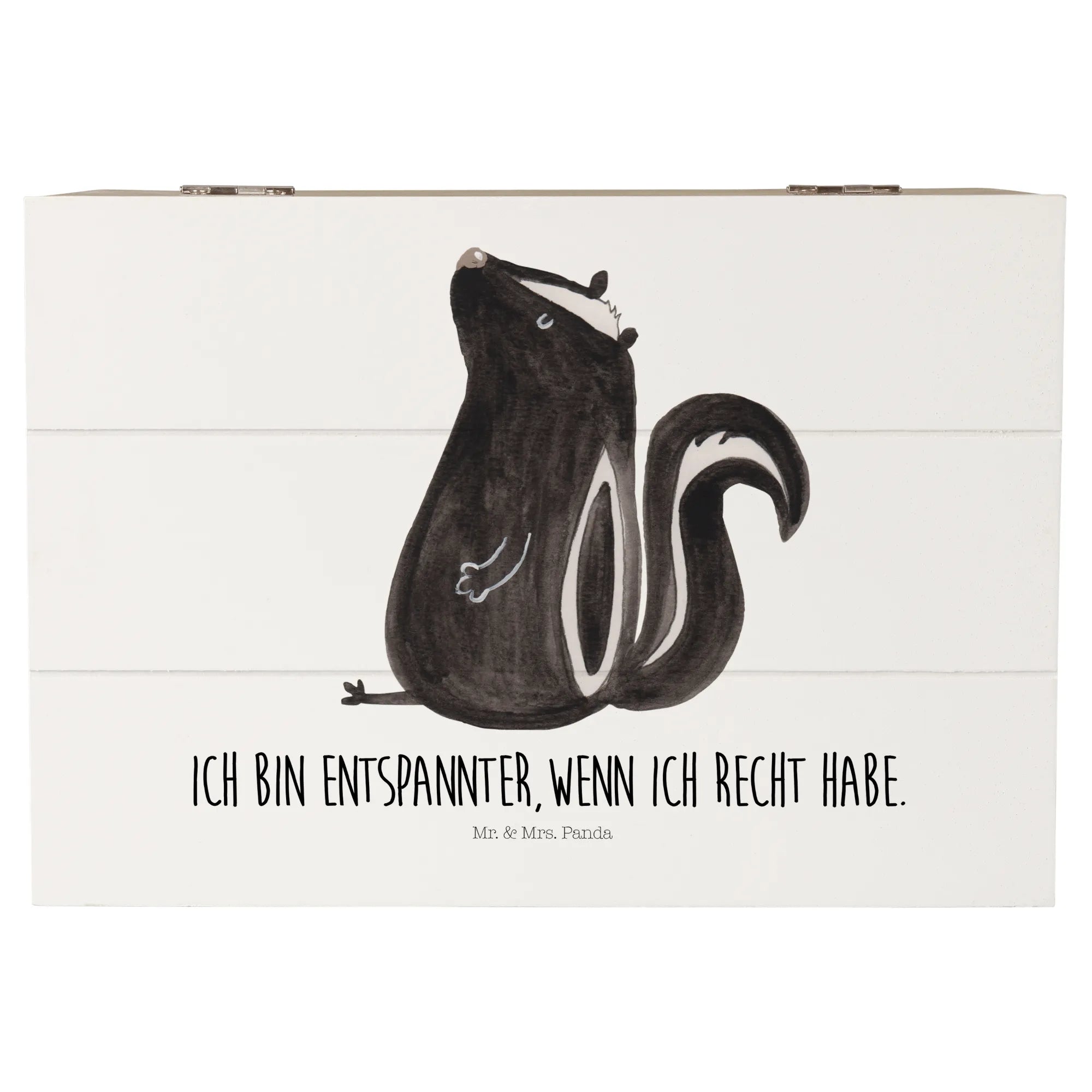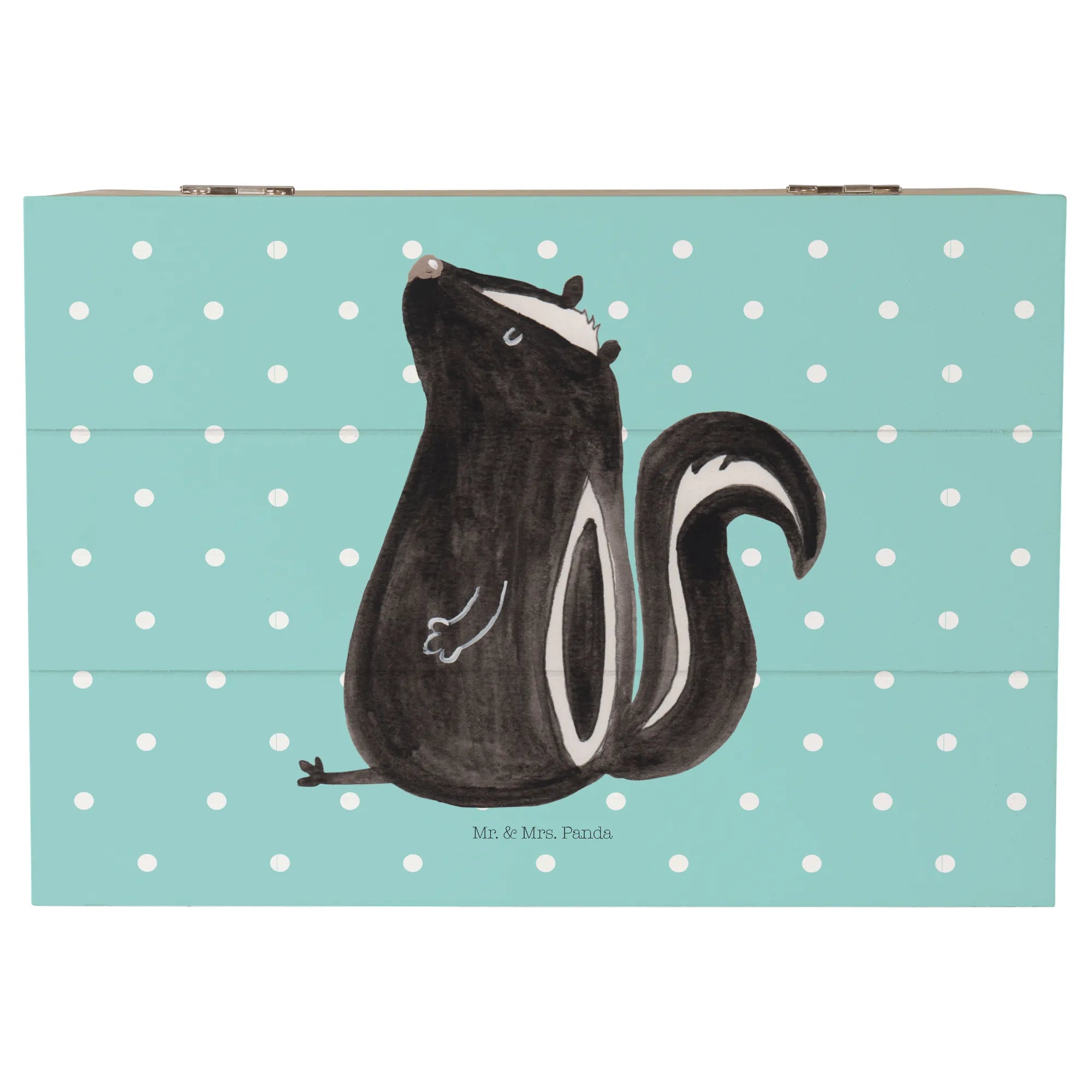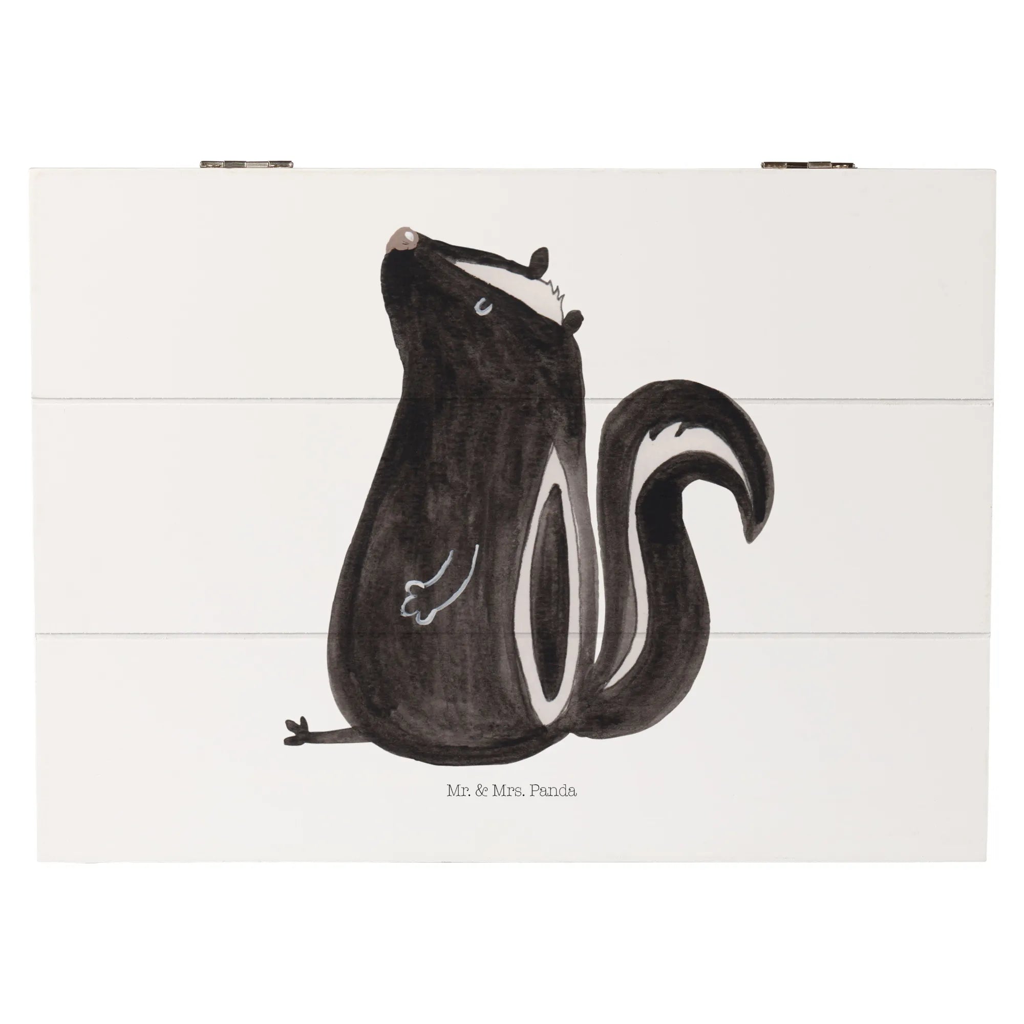 Suchst du nach dem perfekten Geschenk, das gleichzeitig nachhaltig und praktisch ist? Dann ist die wunderschöne Holzkiste mit dem sitzenden Stinktier-Motiv aus der Stinktier-Kollektion von Mr. & Mrs. Panda genau das Richtige für dich! Diese Erinnerungsbox ist mehr als nur eine Kiste - sie ist der ideale Aufbewahrungsort für deine wertvollsten Schätze, sei es für Fotos, besondere Erinnerungen oder kleine Andenken.