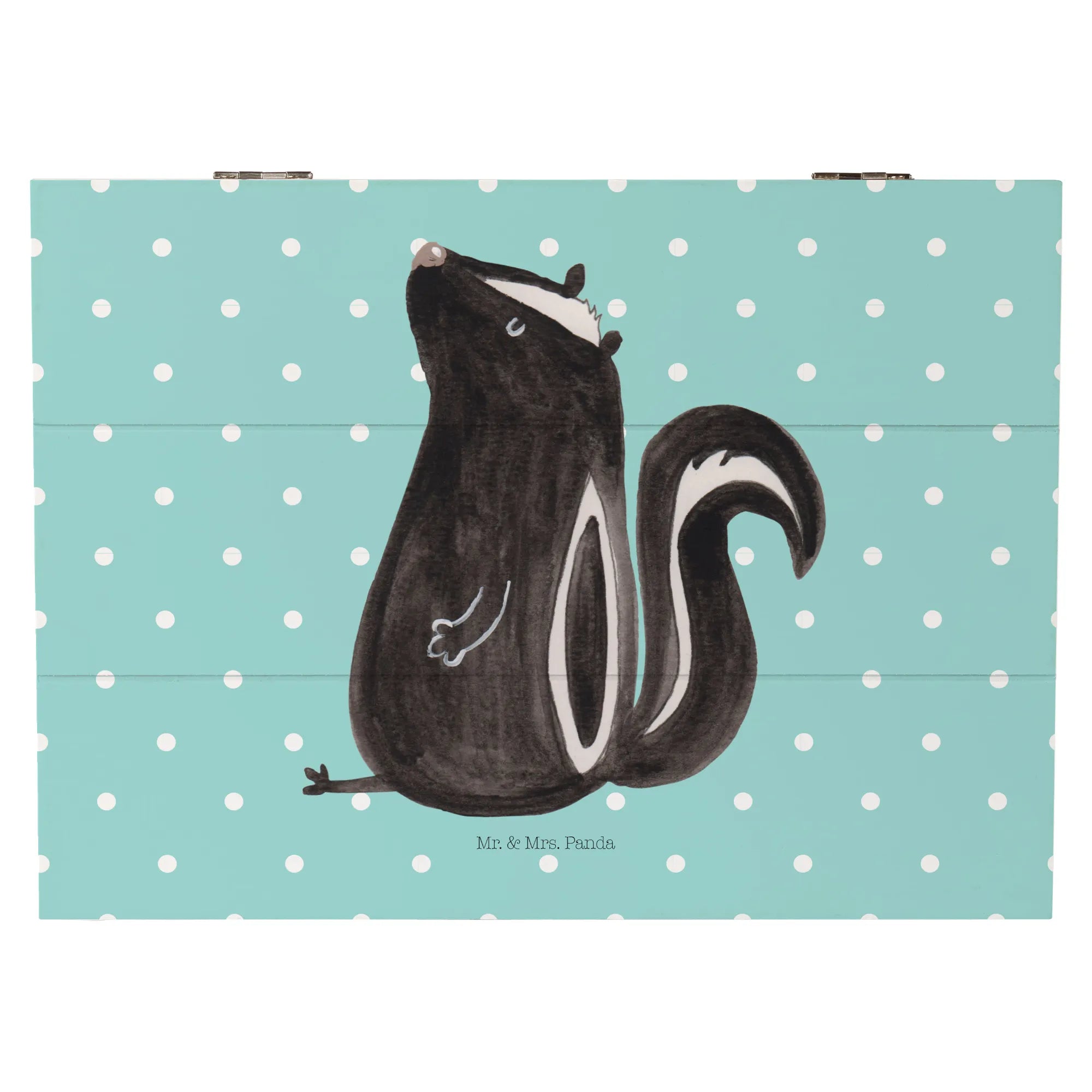 Die wunderschöne Holzkiste von Mr. & Mrs. Panda mit dem niedlichen Motiv des sitzenden Stinktieres ist das perfekte Geschenk für jeden Anlass! Ob zur Kommunion, Konfirmation oder einfach als Erinnerungskiste für besondere Momente, diese Kiste bietet einen stilvollen und robusten Aufbewahrungsort für all deine wertvollen Schätze.