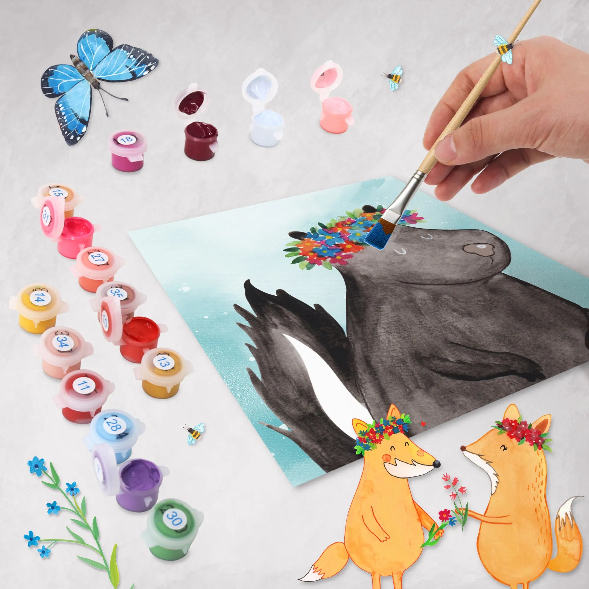 Die Stinktier Kollektion von Mr. & Mrs. Panda ist eine Hommage an die Schönheit der Natur und liefert dir die Möglichkeit, in eine kunterbunte Welt einzutauchen. Wir haben versucht, die perfekten Stinktier Motive für dich zu kreieren, damit jeder beim Malen ein Lächeln ins Gesicht gezaubert bekommt. Jedes Set wird mit Liebe getestet und ausgewählt, um sicherzustellen, dass du ein hochwertiges Produkt erhältst. Male dein eigenes Stinktier Blumenmädchen und teile deine Kreativität mit der Welt!