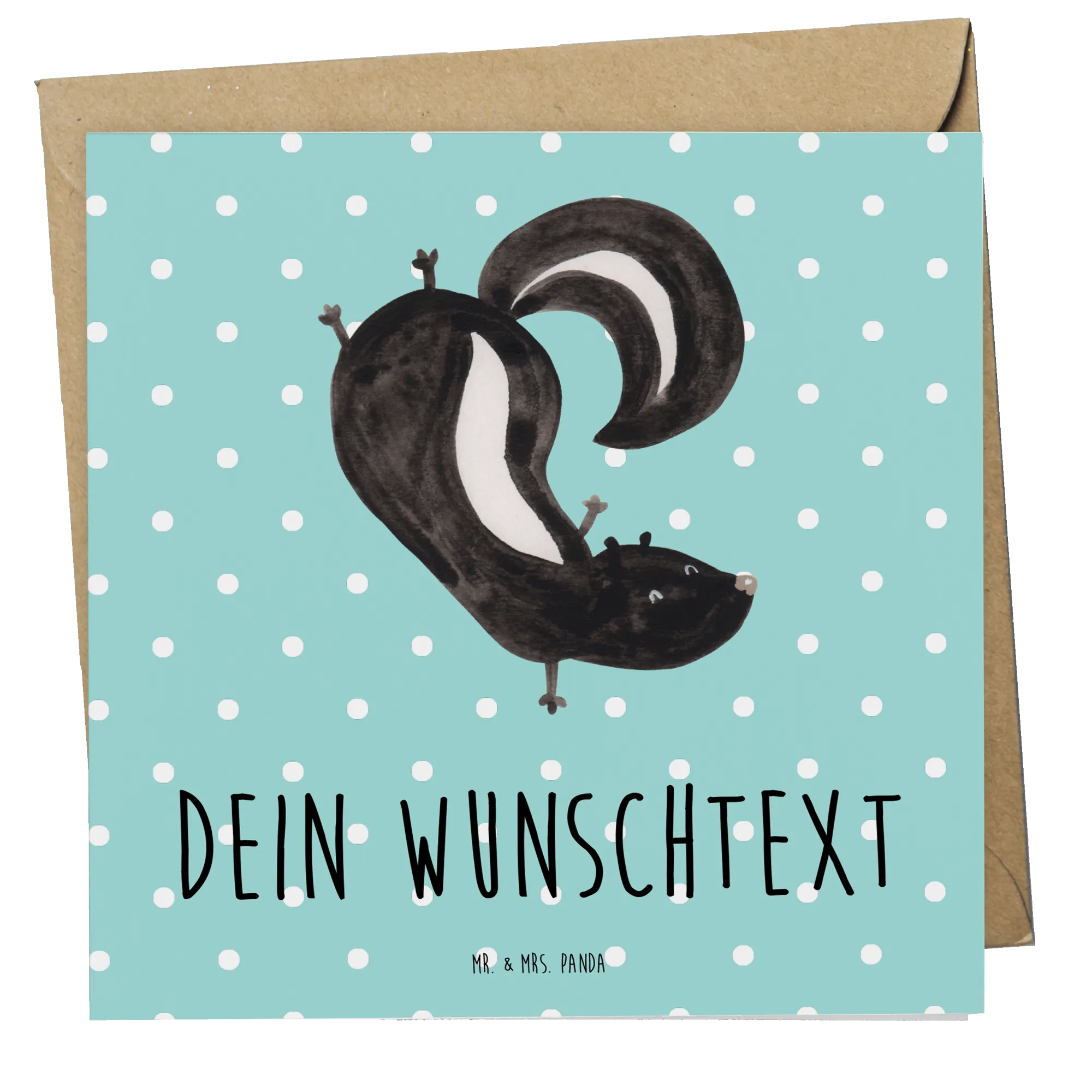 Entdecke die wundervolle, personalisierte Deluxe Karte mit dem süßen Stinktier im Handstand von der Stinktier-Kollektion von Mr. & Mrs. Panda! Diese Karte ist nicht nur ein echtes Unikat, sondern auch ein perfektes Geschenk für viele feierliche Anlässe.