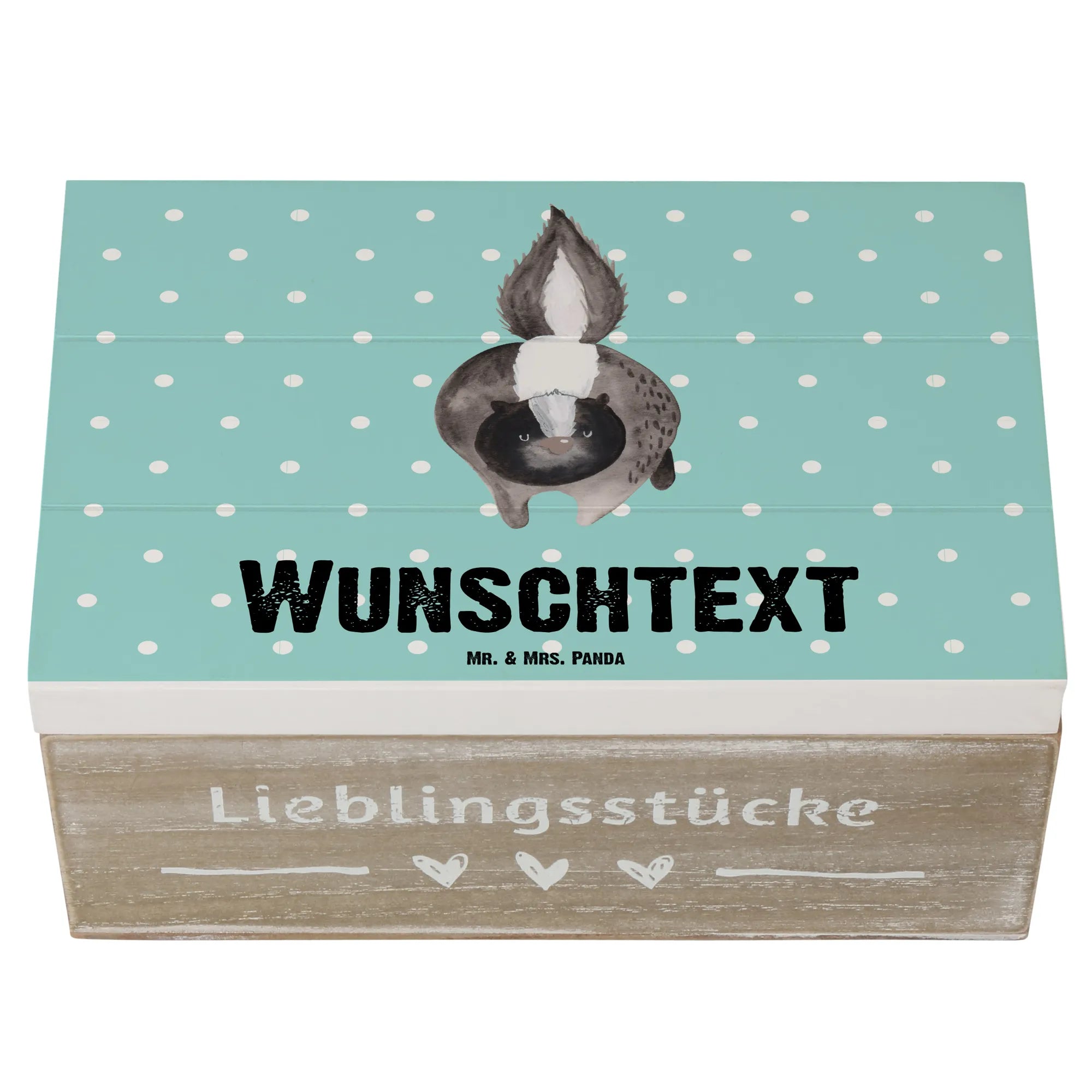 Entdecke die bezaubernde personalisierte Holzkiste "Stinktier Angriff" von Mr. & Mrs. Panda!
