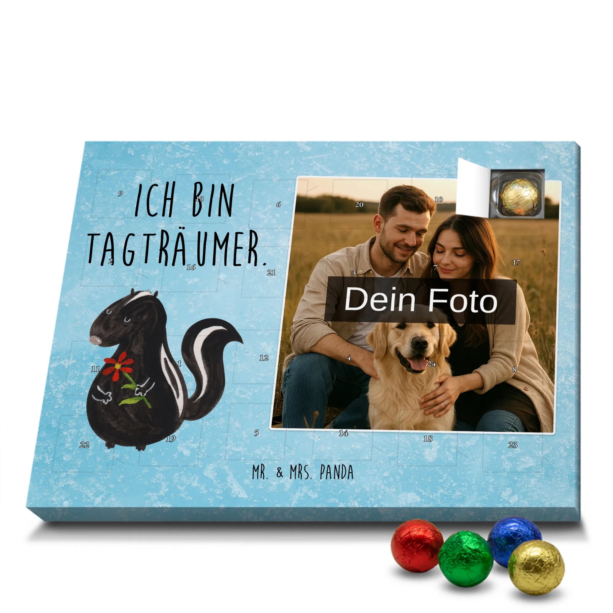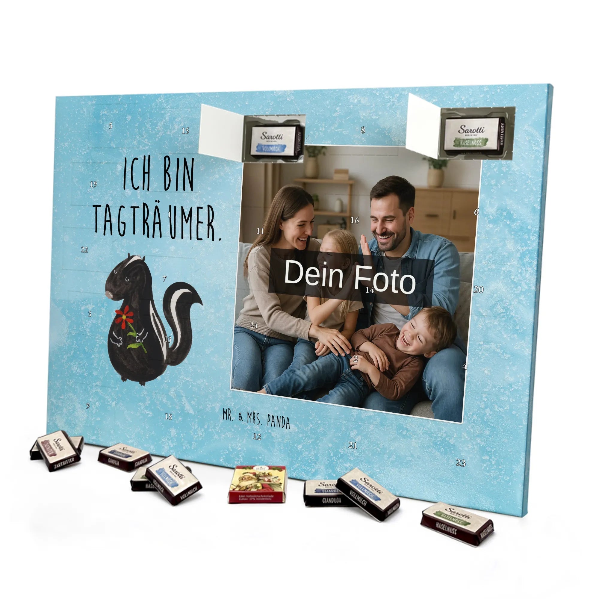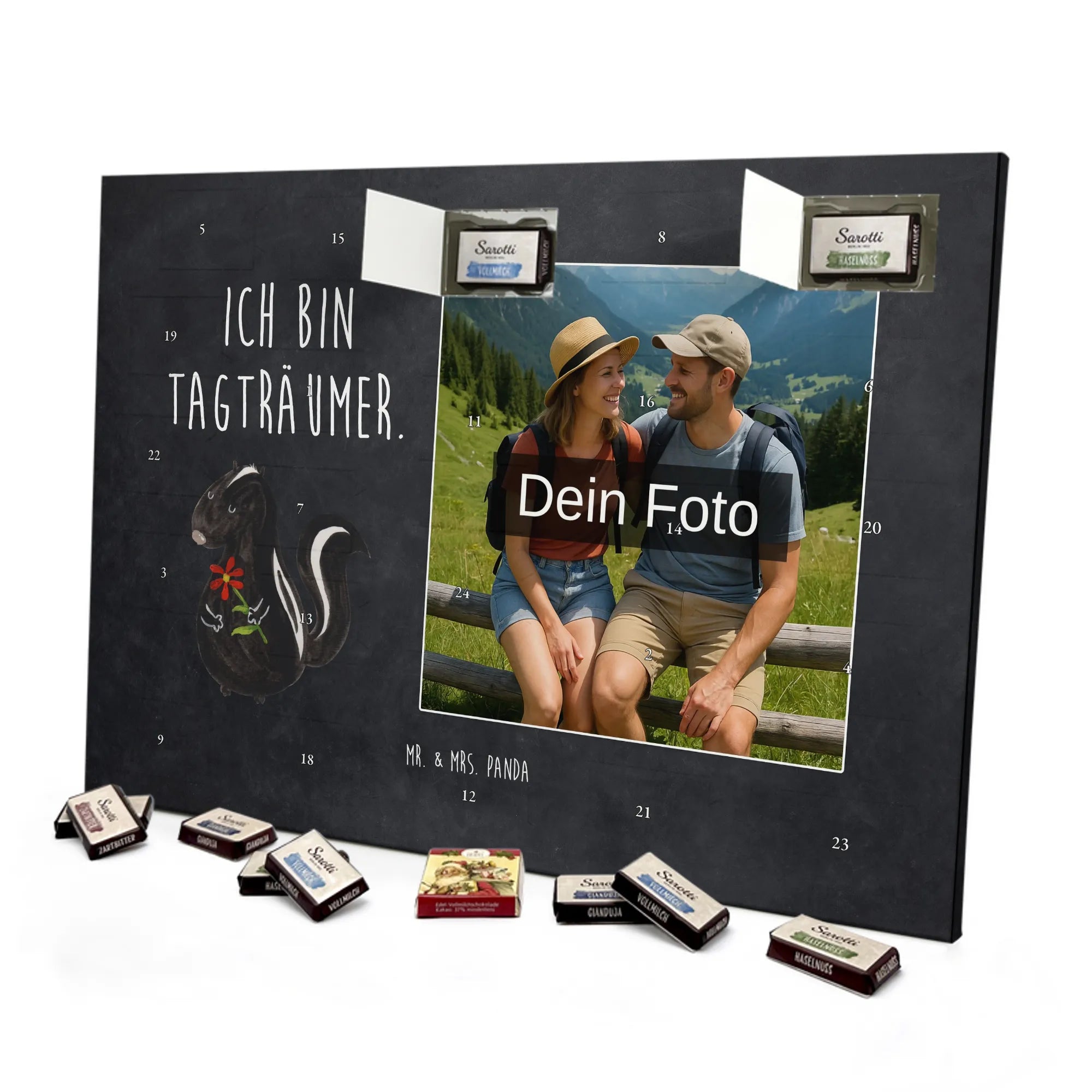 Personalisierter Schoko Foto Adventskalender Stinktier Blume - Classic - Kreidetafel