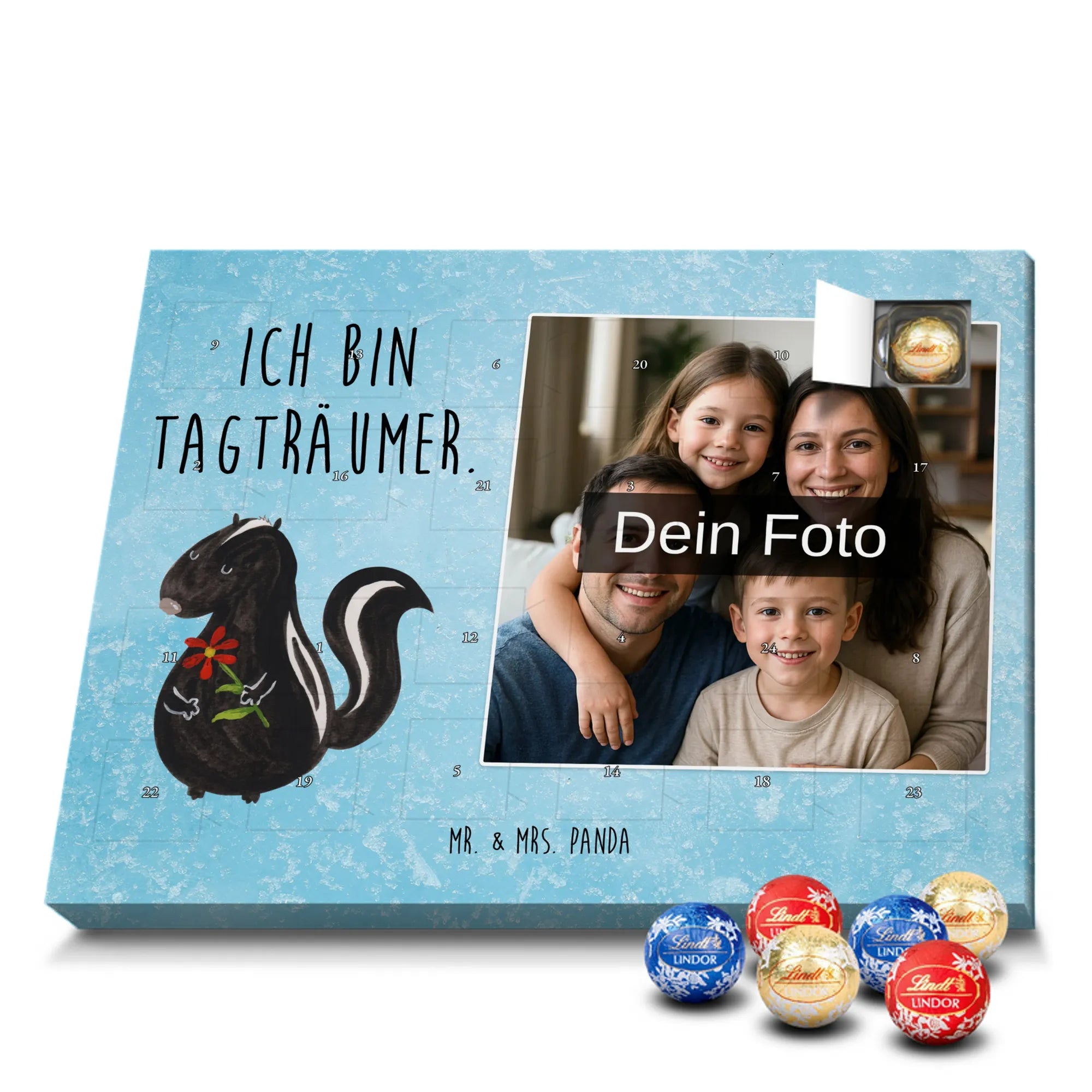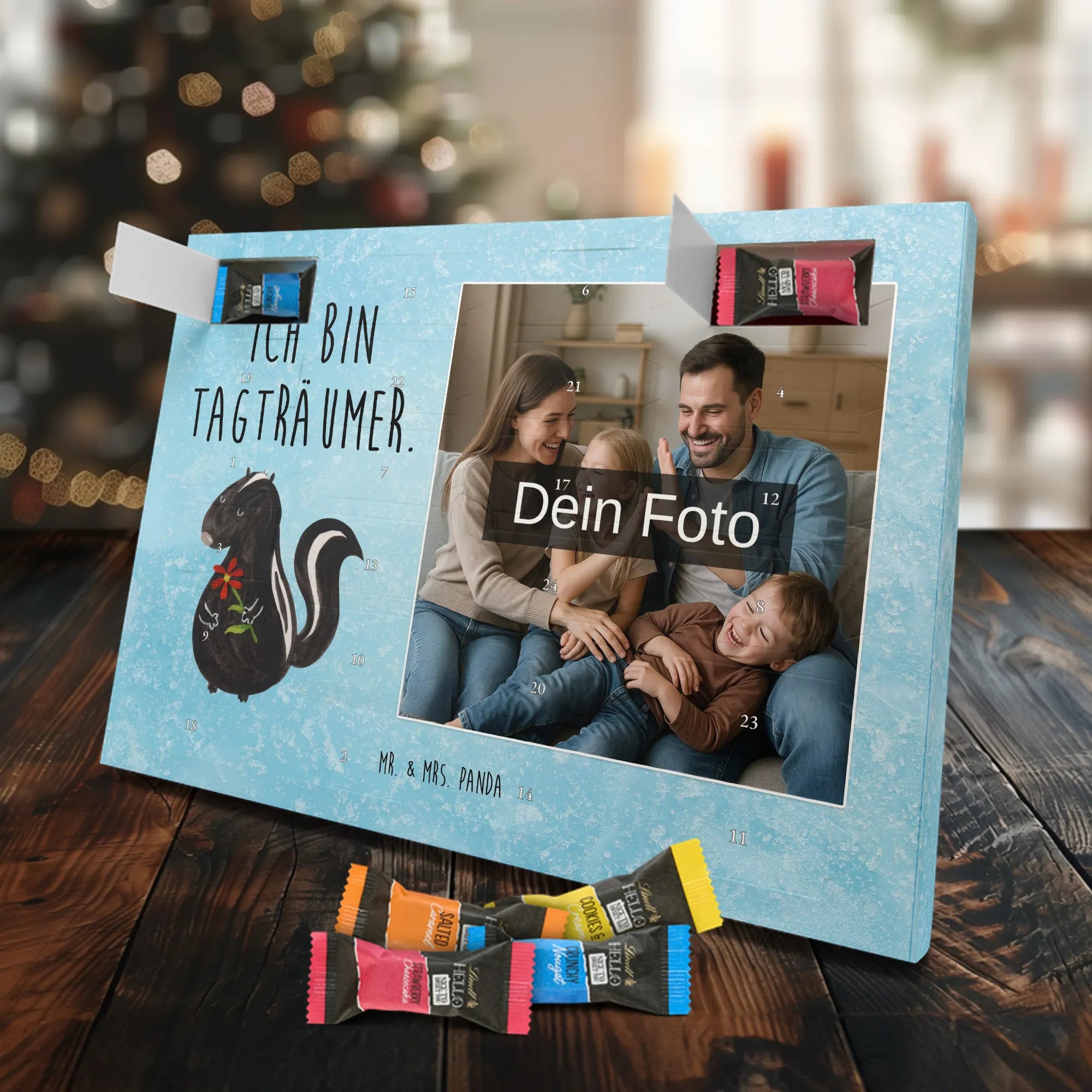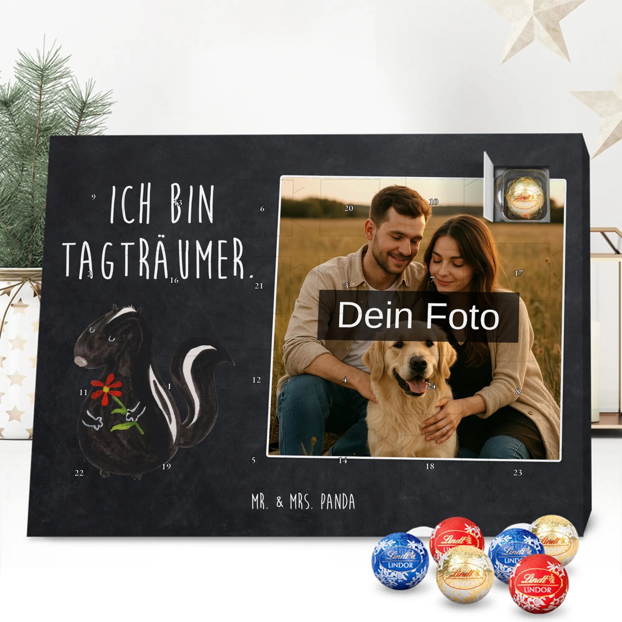 Personalisierter Schoko Foto Adventskalender Stinktier Blume - Classic - Kreidetafel