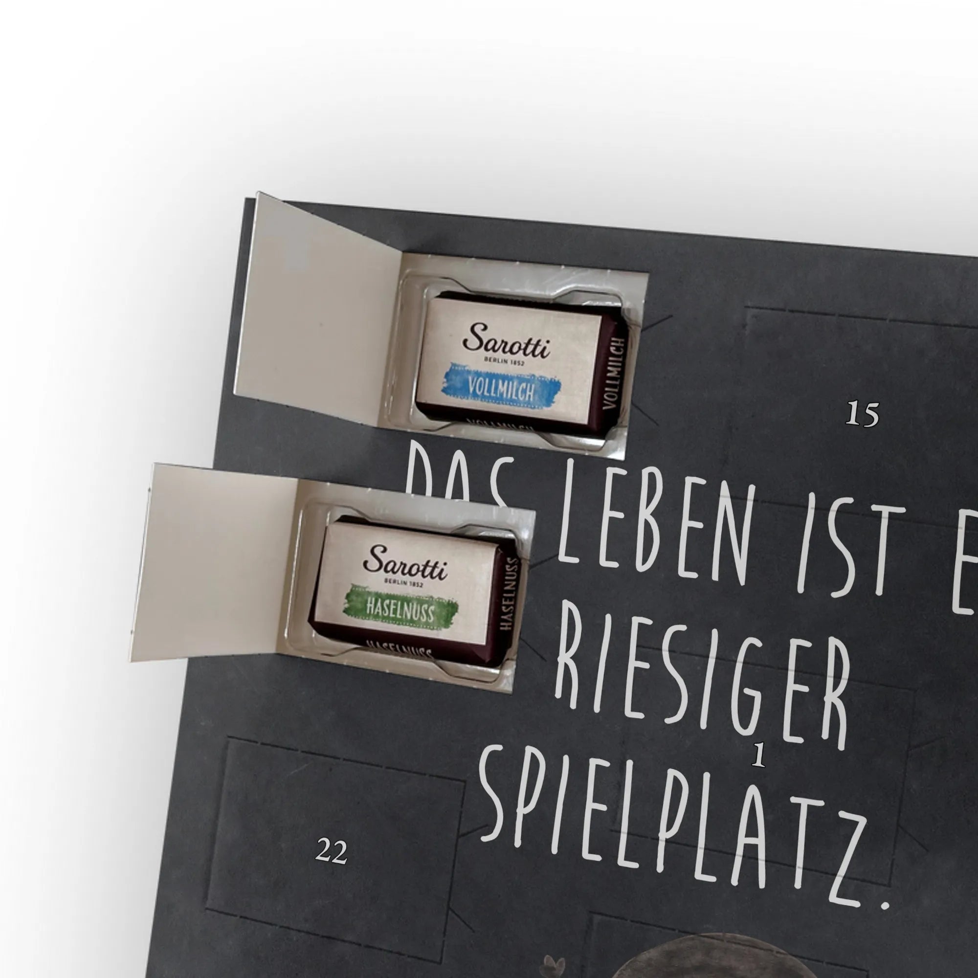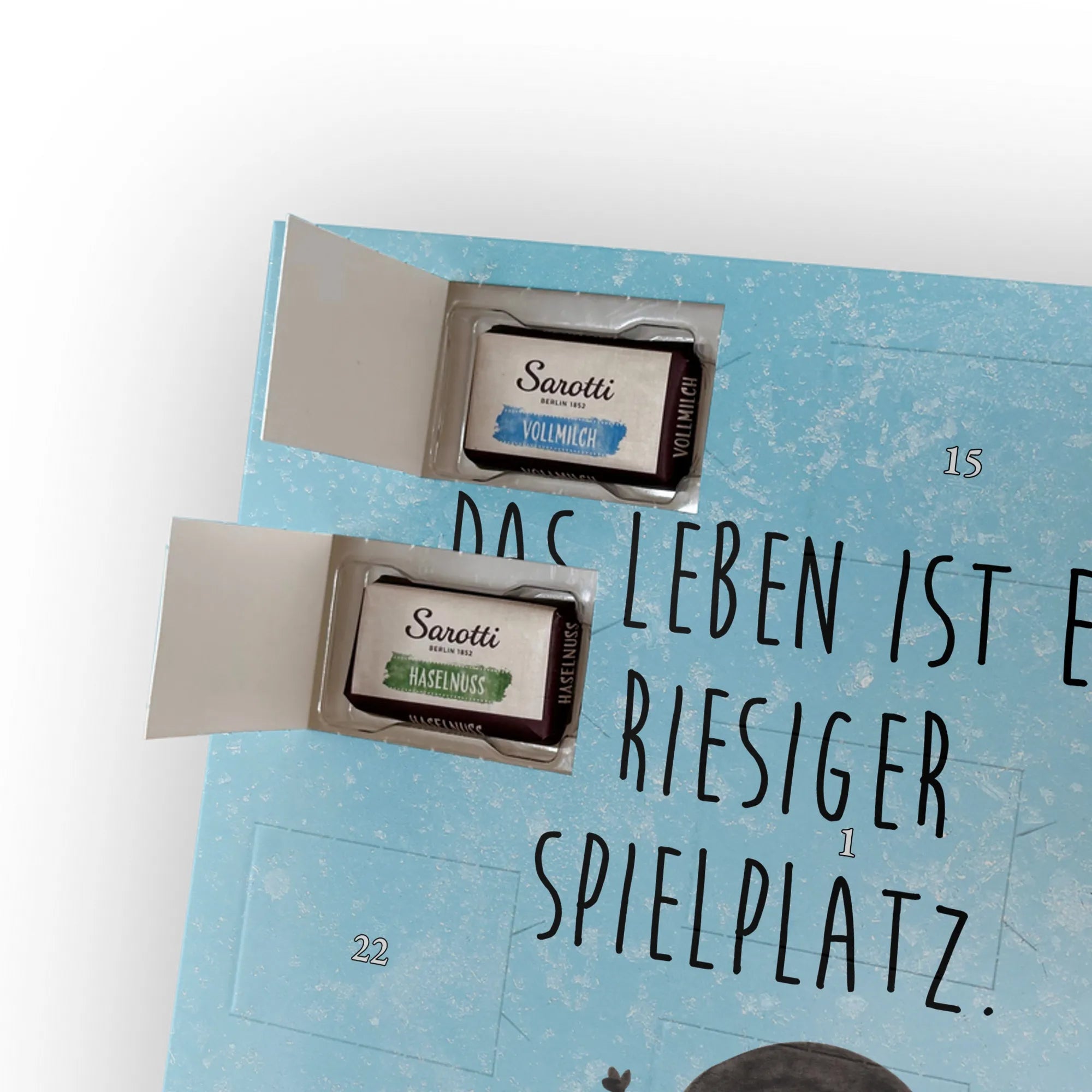 Personalisierter Schoko-Adventskalender mit Foto – das kleine Weihnachtswunder von Mr. & Mrs. Panda! Verschenke jeden Tag Vorfreude: Der Kalender ist liebevoll gestaltet mit unseren herzlichen Illustrationen und Sprüchen, während dein Foto die persönliche Mitte bildet. Bitte lade ein hochauflösendes Foto hoch und prüfe den Bildausschnitt, damit nichts Wichtiges verloren geht. Nutze nur Bilder, für die du die Rechte hast. Die hochwertige, seidenmatte Veredelung und die bedruckten Seitenflächen garantieren ein edles Erscheinungsbild. Maße: 355 mm x 245 mm x 11 mm; lässt sich sowohl aufhängen als auch aufstellen. Achtung: Fotos werden nicht nachbearbeitet oder zugeschnitten; personalisierte Artikel sind vom Rückgaberecht ausgeschlossen. Gefüllt mit 24 einzeln verpackten Schokoladentäfelchen aus den vier Geschmacksrichtungen Vollmilch, Nougat, Zartbitter und Haselnuss – von Sarotti® und Confiserie Heidel®. Insgesamt enthält der Kalender 107 g Markenschokolade. Ein persönliches Geschenk mit süßem Inhalt, ideal für Partner, Familie und Freunde, verpackt mit der typischen Mr. & Mrs. Panda Liebe zum Detail.