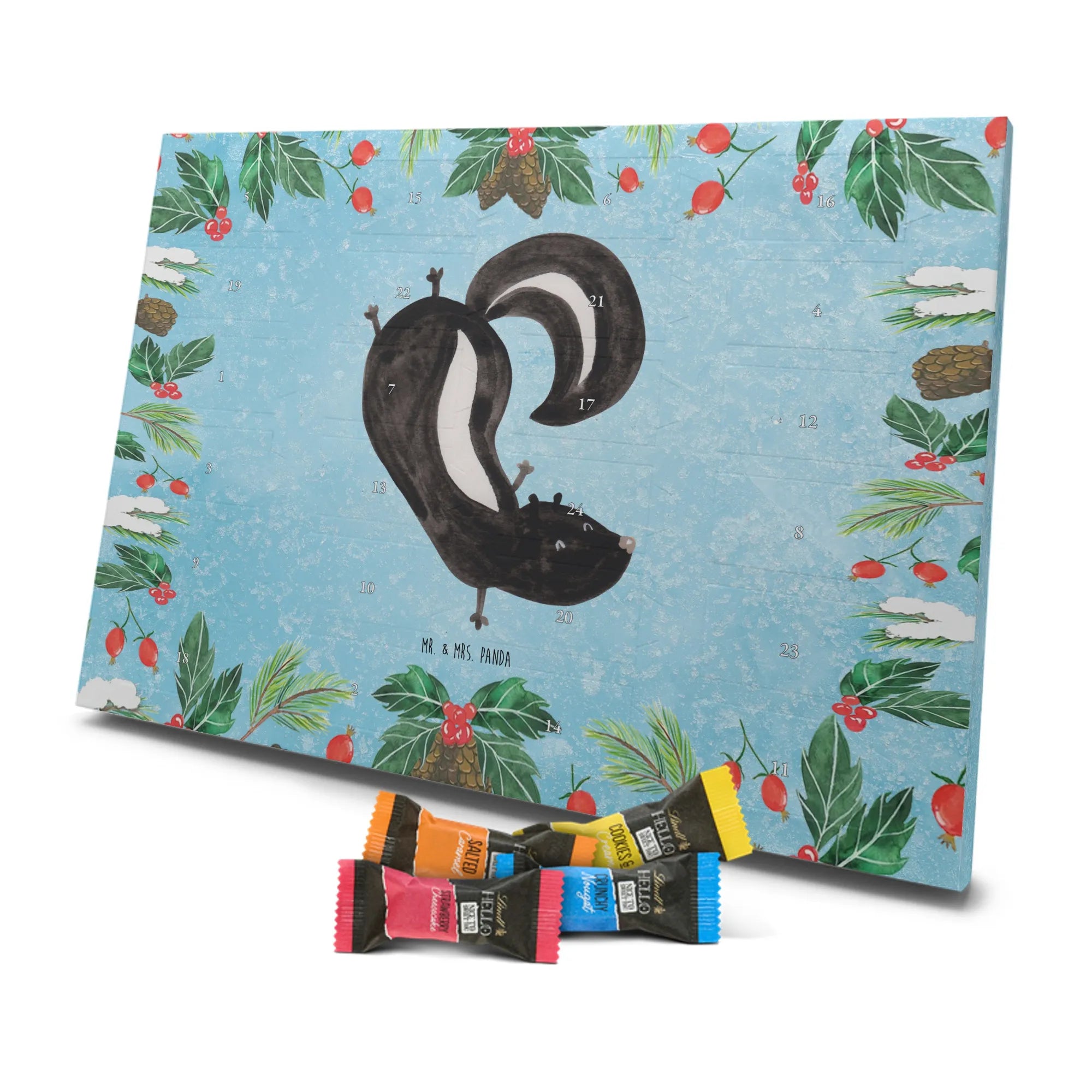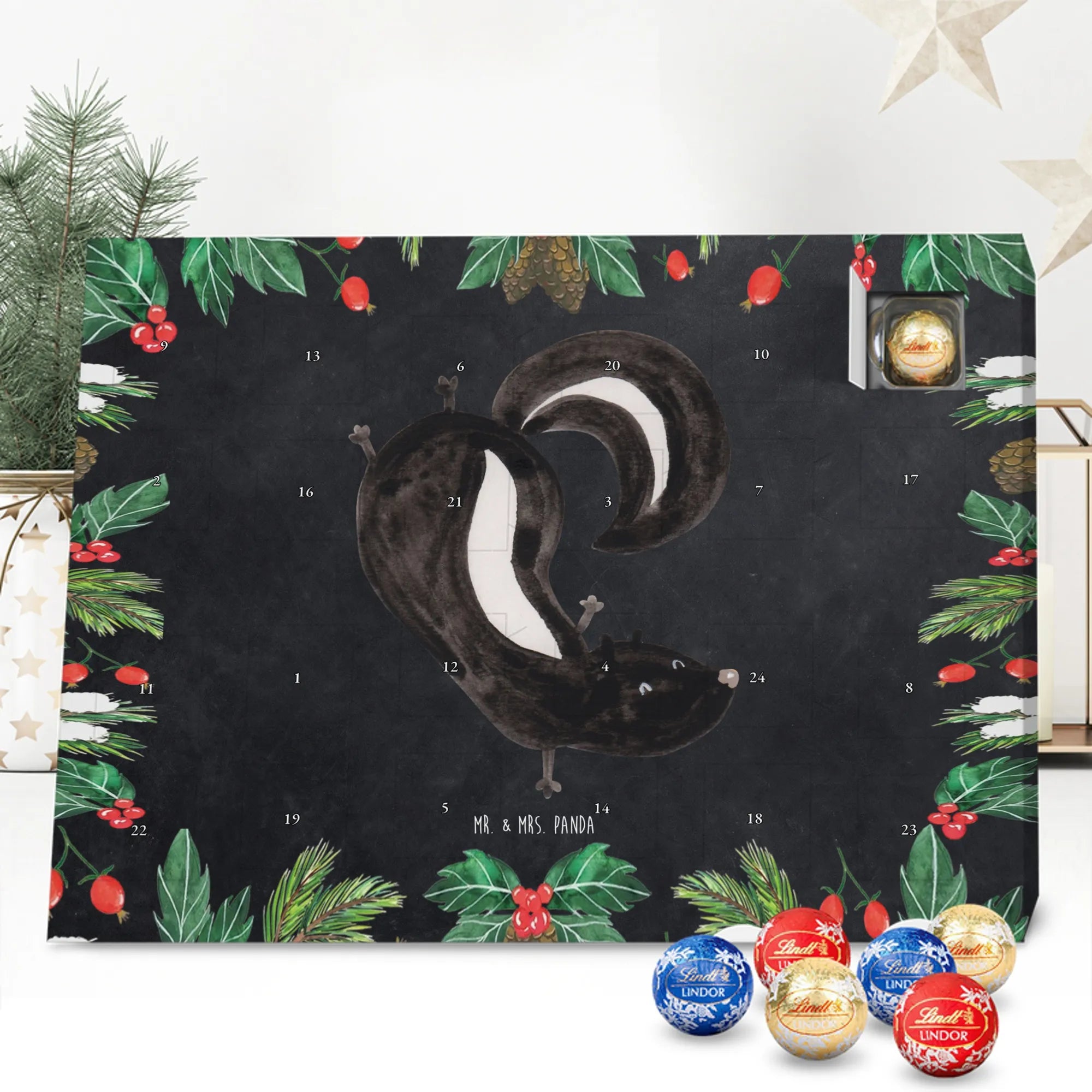 Weihnachten Adventskalender Stinktier Handstand - Lindt HELLO - mit Spruch - Kreidetafel