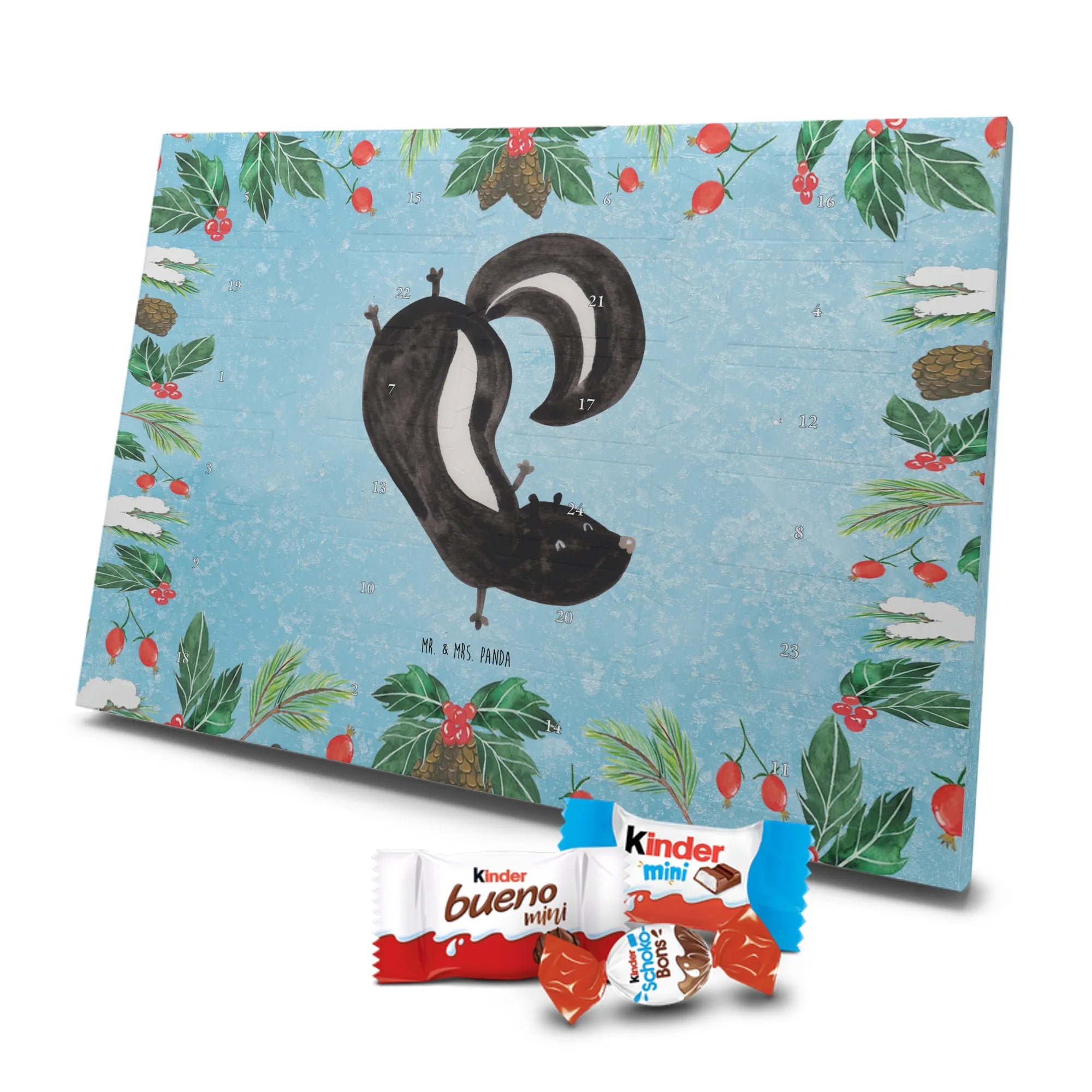 Entdecke unseren liebevoll gestalteten Schoko-Adventskalender von Mr. & Mrs. Panda – eine zauberhafte Idee, um die Tage bis Weihnachten zu versüßen. Der Kalender ist bedruckt mit wunderschönen Motiven & Sprüchen von Mr. & Mrs. Panda und ist nicht personalisierbar. Wir setzen auf brillante Druckqualität mit seidenmatter Oberflächenveredelung und bedruckte Seitenflächen für ein rundum schönes Erscheinungsbild. Maße: 355 mm x 245 mm x 11 mm. Die clevere Bauweise erlaubt es, den Kalender entweder aufzuhängen oder freistehend aufzustellen – so bist du flexibel bei der Dekoration. Gefüllt mit Markenname Schokolade: Adventskalender gefüllt mit kinder® Schokolade. Inhalt: kinder® Schoko-Bons, kinder® Bueno mini und kinder® Schokolade mini. Jeder Tag bringt eine kleine Freude und eignet sich perfekt als Geschenk oder als dekoratives Highlight in deinem Zuhause. Die stabile Verarbeitung sorgt dafür, dass der Kalender die ganze Adventszeit über Freude bereitet. Hol dir diesen Schoko-Adventskalender und lade die Vorweihnachtszeit mit süßen Überraschungen auf!