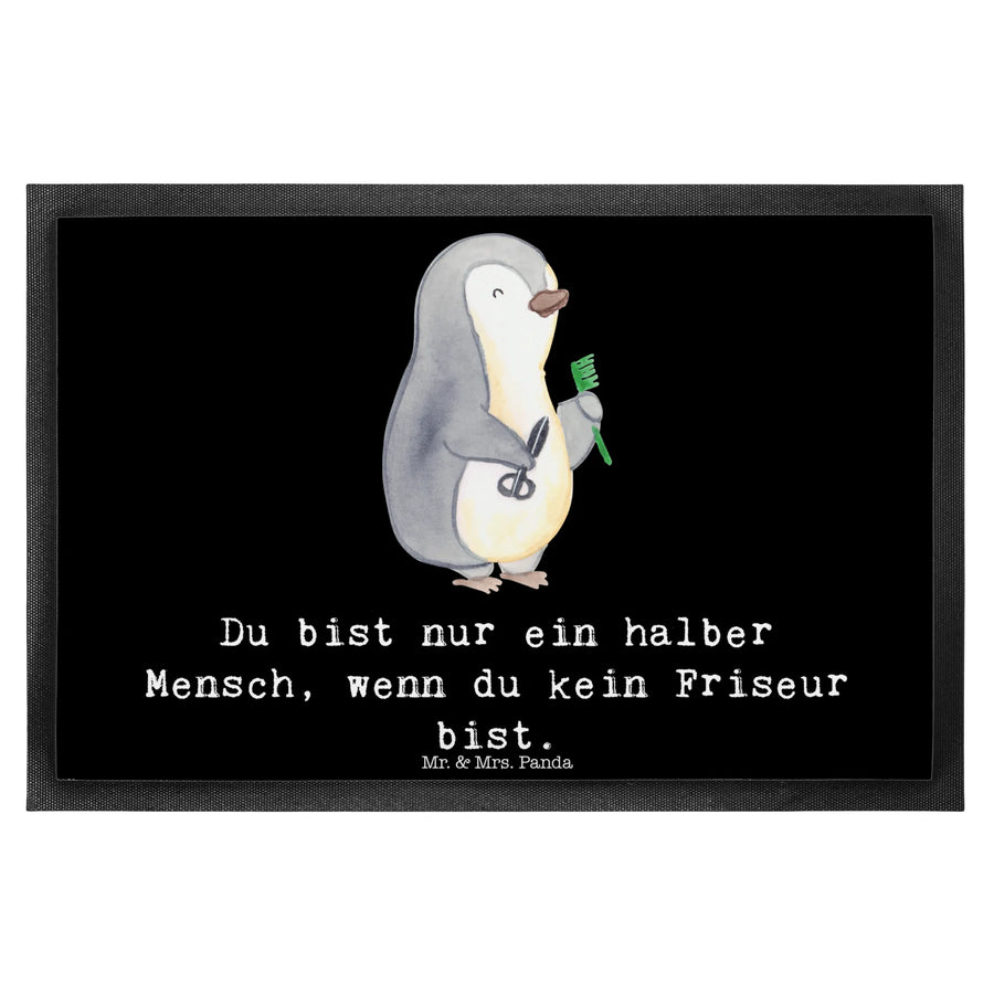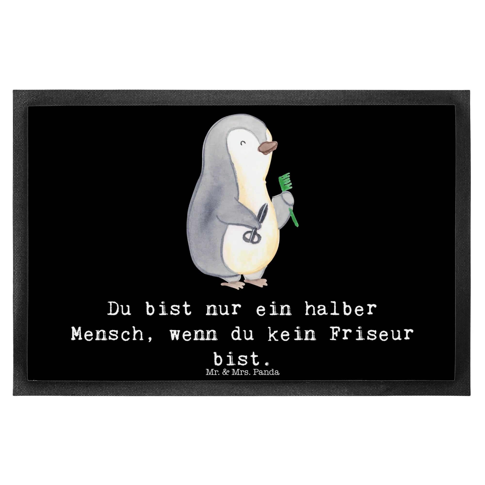 Du suchst nach dem perfekten Geschenk für einen Friseur oder Haarstylisten? Unsere Fußmatte "Friseur mit Herz" von Mr. & Mrs. Panda ist nicht nur ein praktischer Schmutzfänger, sondern auch ein liebevolles Accessoire für jeden Frisörsalon. Mit dem niedlichen Pinguin-Motiv, der einen Kamm und eine Schere in den Flossen hält, und dem humorvollen Spruch "Du bist nur ein halber Mensch, wenn du kein Friseur bist" bringt diese Matte Freude und Persönlichkeit vor die Tür.