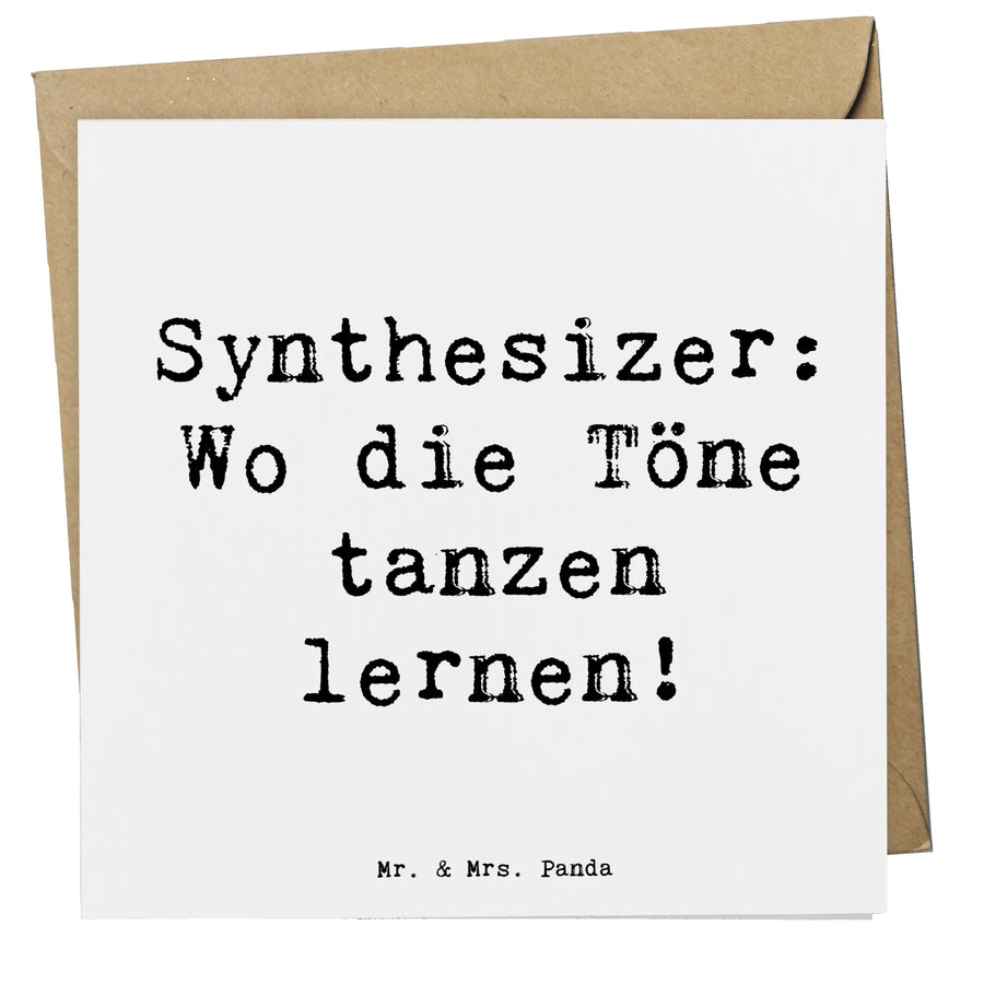 Entdecke die Deluxe Karte "Synthesizer: Wo die Töne tanzen lernen!" von Mr. & Mrs. Panda, die perfekte Grußkarte für alle Musikliebhaber!