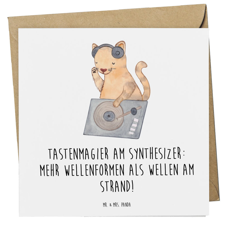Die Deluxe Karte mit dem Synthesizer-Motiv von Mr. & Mrs. Panda ist das perfekte Geschenk für alle Musikliebhaber und Kreativen! Mit ihrem liebevoll gestalteten Design und dem witzigen Spruch 'Tastenmagier am Synthesizer: Mehr Wellenformen als Wellen am Strand!' zieht sie alle Blicke auf sich. Diese wundervoll hochwertige quadratische Grußkarte aus feinstem 300 Gramm Karton ist nicht nur ein Eye-Catcher, sondern auch ein fühlbarer Genuss.