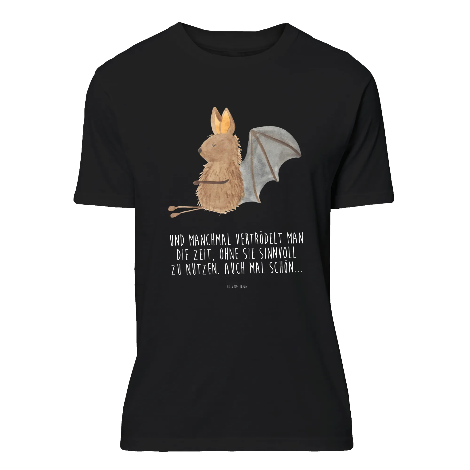 Dieses liebevoll gestaltete T-Shirt von Mr. & Mrs. Panda bringt Freude in jeden Kleiderschrank. Auf schwarzem Hintergrund sitzt eine süße Fledermaus und lächelt dich an – ein Motiv, das sofort gute Laune macht. Der eingearbeitete Spruch „Und manchmal vertrödelt man die Zeit, ohne sie sinnvoll zu nutzen. Auch mal schön...“ verleiht dem Shirt eine entspannte und charmante Botschaft.