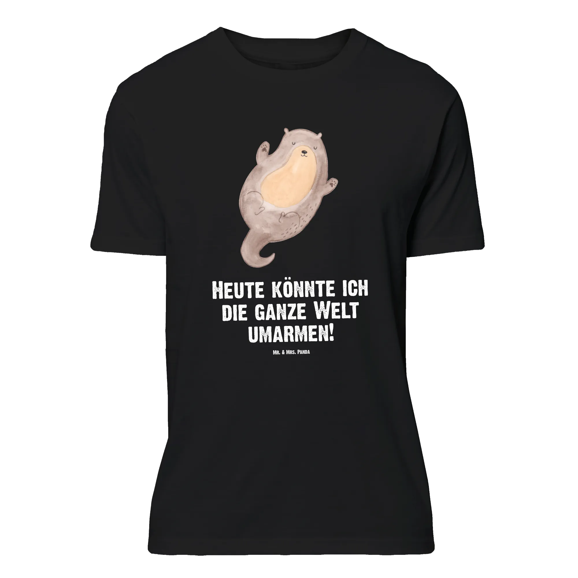 Entdecke ein herrliches Motiv von Mr. & Mrs. Panda: Ein lebhafter Otter, der auf dem Rücken im Wasser treibt, seine Arme offen ausgestreckt, als ob er jeden Moment umarmen möchte. 'Heute könnte ich die ganze Welt umarmen!' steht geschrieben und symbolisiert eine unbegrenzte Liebe zum Leben. Dieses Design lädt uns ein, jeden Tag mit einer Haltung der Hoffnung und Freude anzugehen, offen für die unzähligen Umarmungen, die das Leben bereithält.
