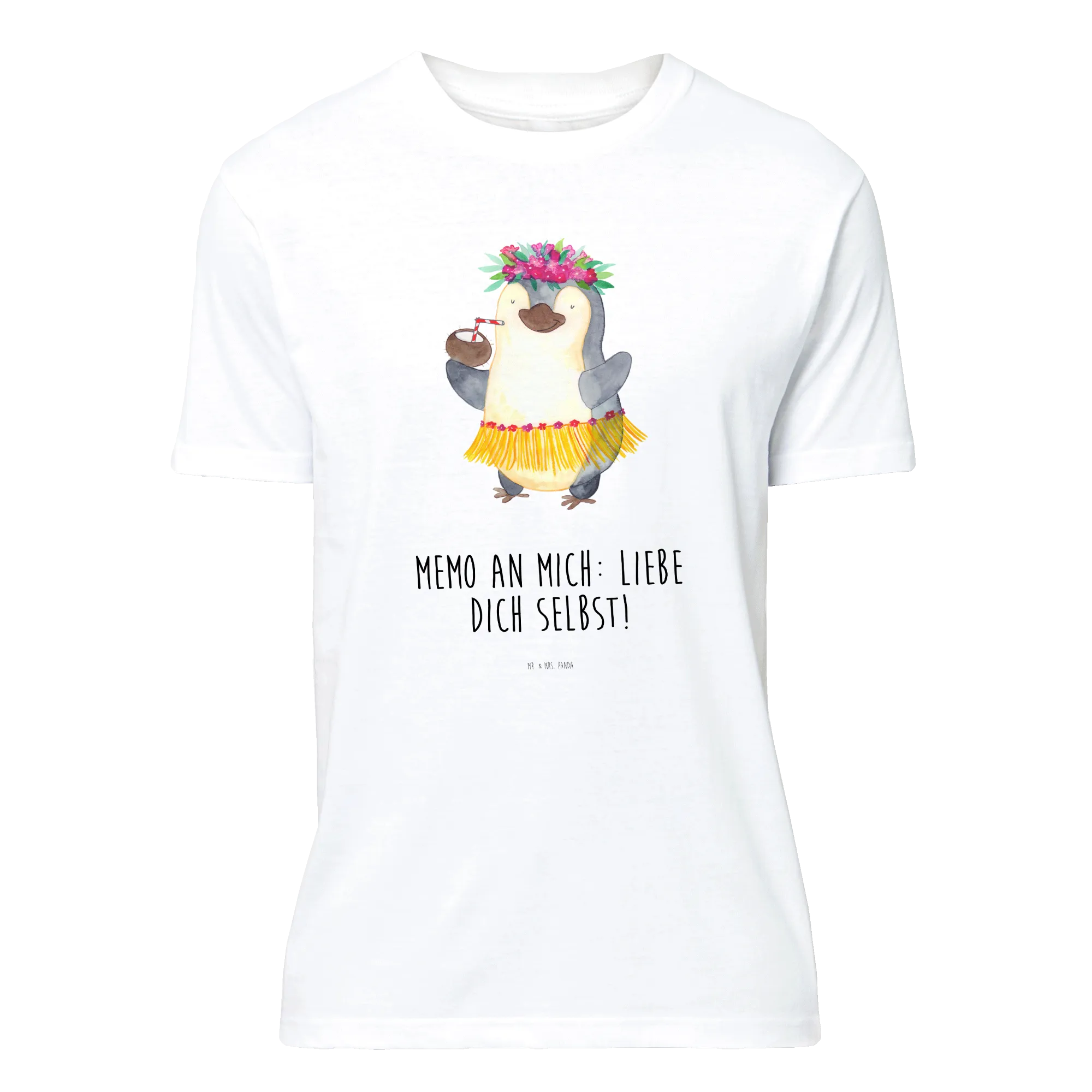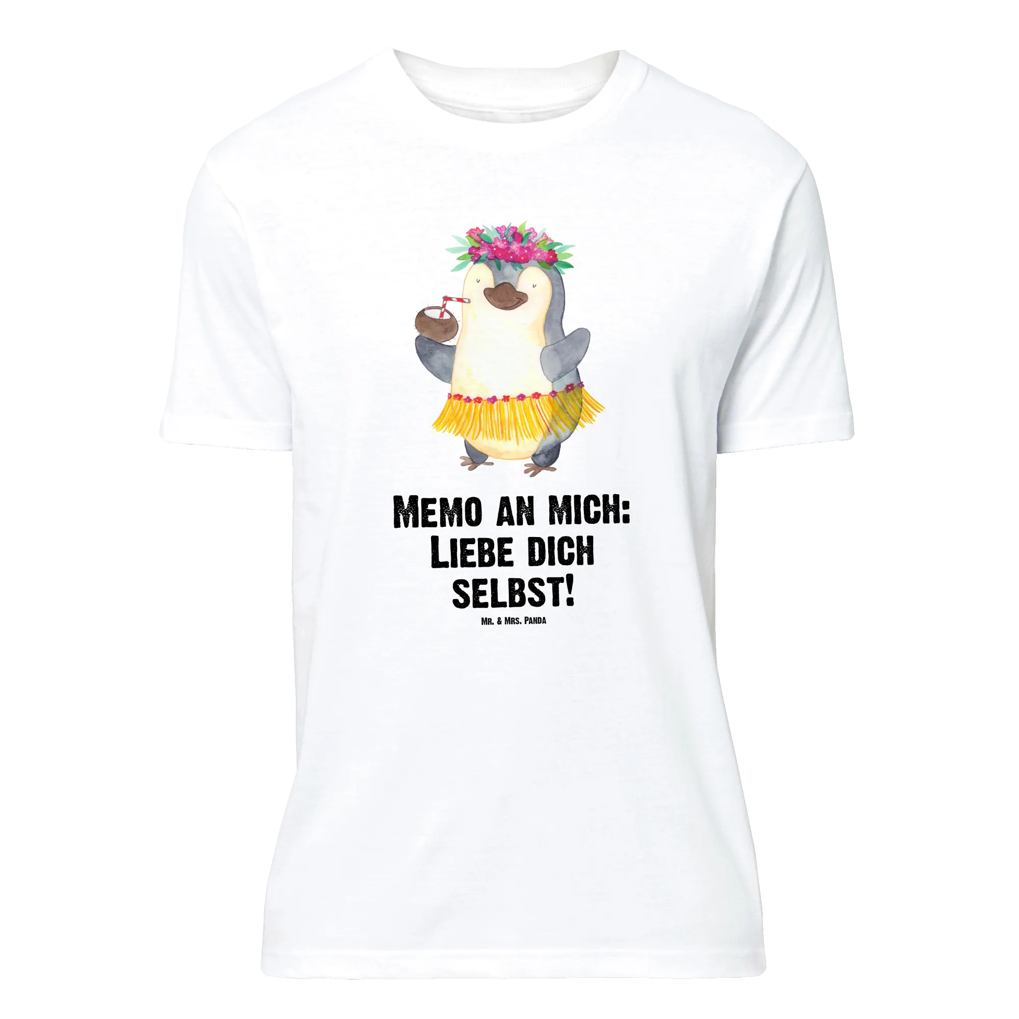 Der fröhliche Pinguin mit einem rosa Röckchen und einer Kokosnuss in der Hand tanzt voller Lebensfreude und strahlt pure Glückseligkeit aus! Einfach daran denken: "Memo an mich: Liebe dich selbst!". Die hochwertige Baumwolle sorgt dafür, dass du dich rundum wohlfühlst, während du dieses T-Shirt trägst.
