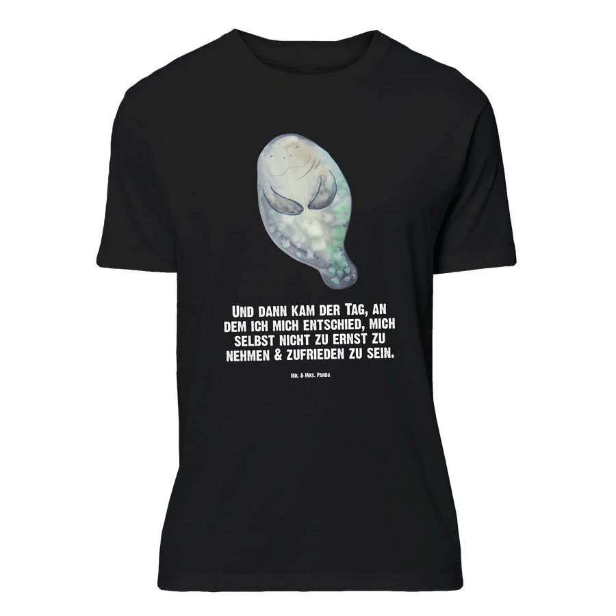 Entdecke das Größe L T-Shirt „Seekuh happy“ aus der Meerestiere-Kollektion von Mr. & Mrs. Panda. Auf dem weißen Shirt lächelt eine liebevoll illustrierte Seekuh in zarten Aquarellfarben. Der hochkant platzierte Spruch „Und dann kam der Tag, an dem ich mich entschied, mich selbst nicht zu ernst zu nehmen & zufrieden zu sein.“ macht das Motiv zu einer fröhlichen Erinnerung für den Alltag.