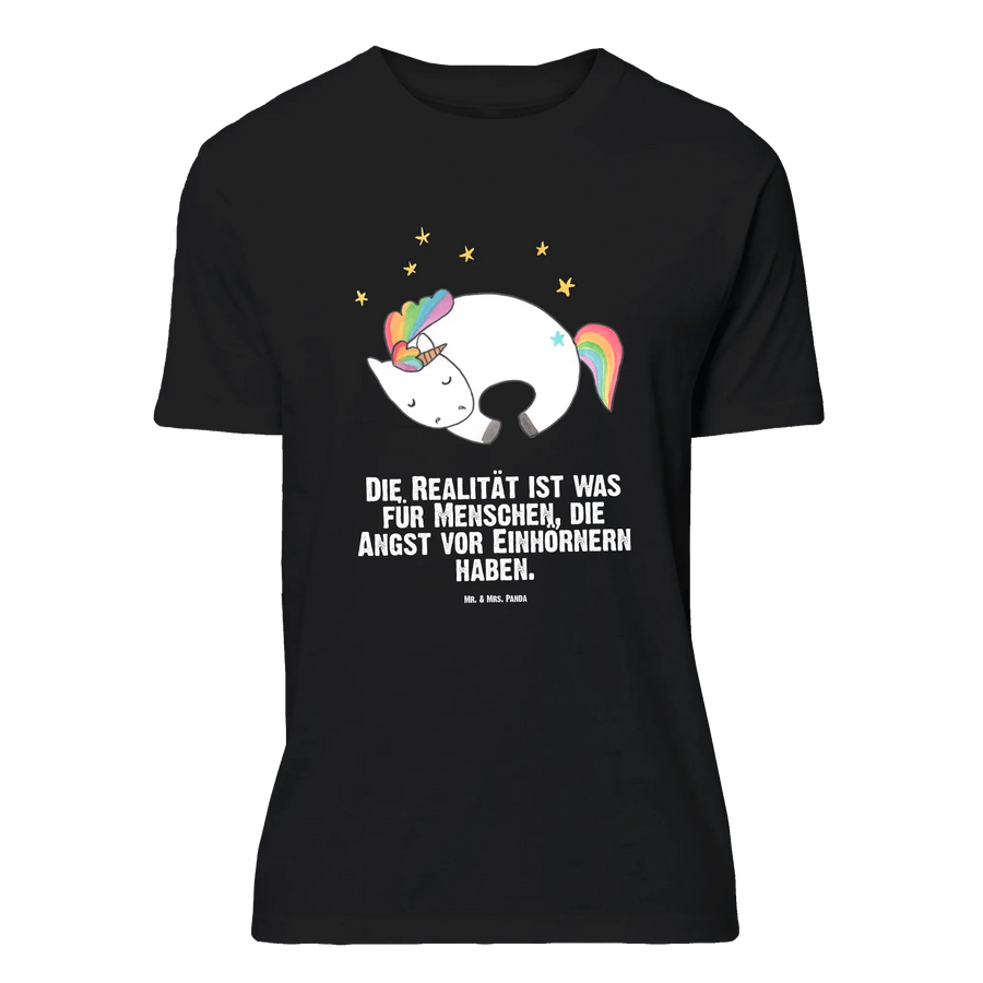 Zauberhaft, bequem und perfekt für Träumerinnen: Unser Größe M T-Shirt "Einhorn Nacht" aus der Einhorn - Kollektion von Mr. & Mrs. Panda ist ein echtes Herzstück für alle Einhorn-Fans. Auf dem schwarzen Shirt liegt ein schlafendes Einhorn, dazu der freche Spruch: „Die Realität ist was für Menschen, die Angst vor Einhörnern haben.“ Ein Motiv, das sofort ein Lächeln zaubert.
