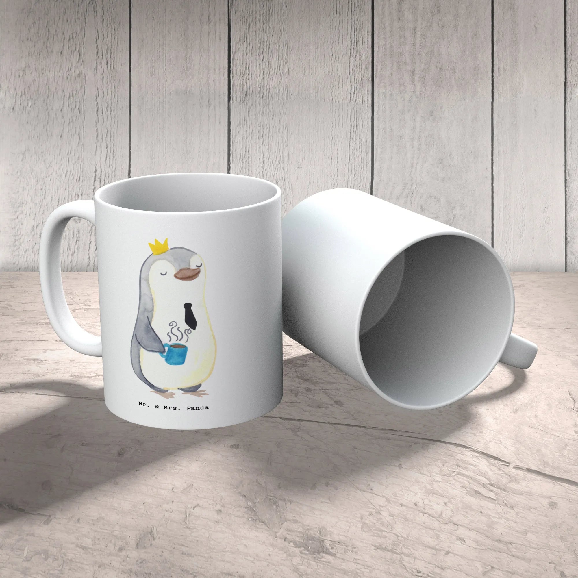 Start in den Tag mit einem Lächeln – die Kaffeetasse von Mr. & Mrs. Panda ist genau das Richtige dafür! Diese wunderschöne Keramiktasse hat die Maße von 90 mm x 90 mm und eine Füllmenge von 325 ml. Dank ihrer hochwertigen Verarbeitung ist sie nicht nur mikrowellengeeignet, sondern auch spülmaschinenfest und übersteht problemlos bis zu 2000 Waschgänge. Mit tollen Sprüchen und außergewöhnlichen Motiven bringt diese Tasse Freude und Farbe in deine Morgenroutine. Egal, ob für eine Tasse Kaffee, Tee oder Kakao – diese Tasse macht jeden Schluck zu einem Genuss. Sei es für dich selbst oder als perfektes Geschenk für Freunde und Familie – mit dieser Tasse kannst du nichts falsch machen!