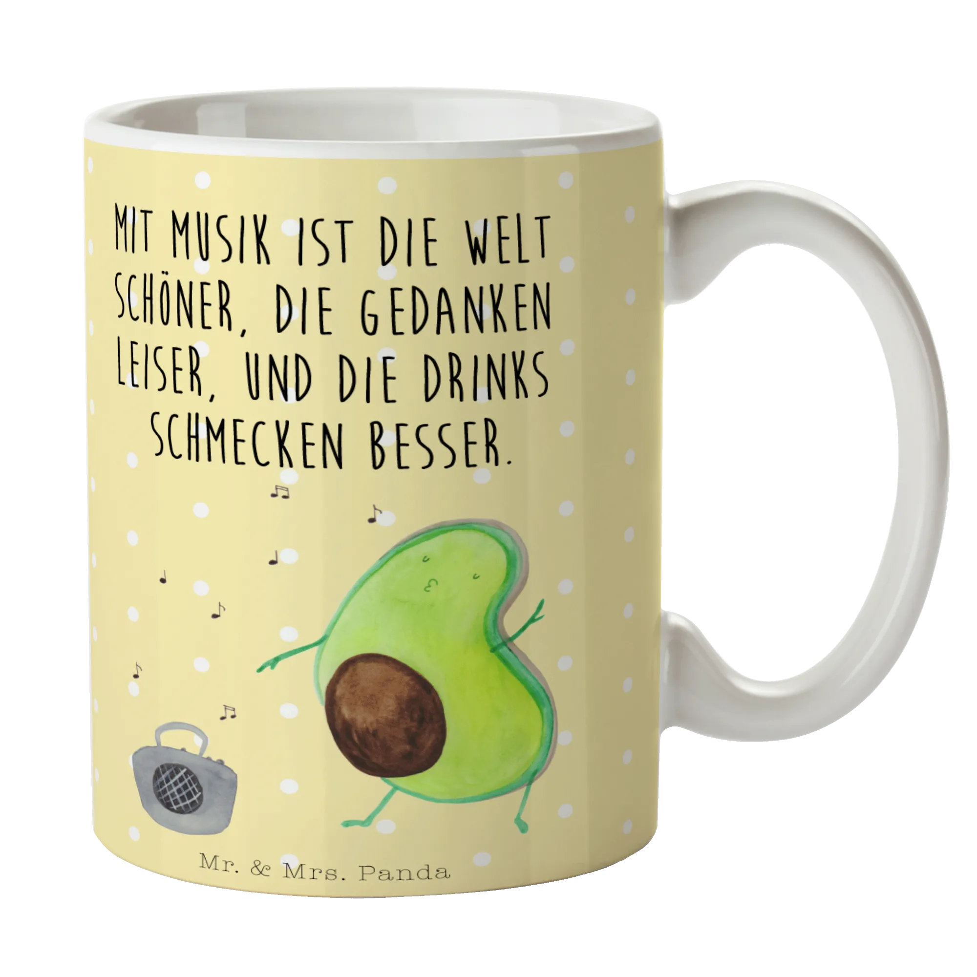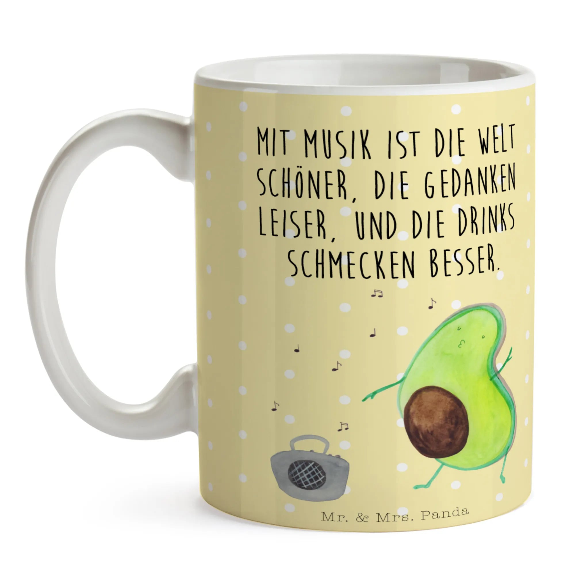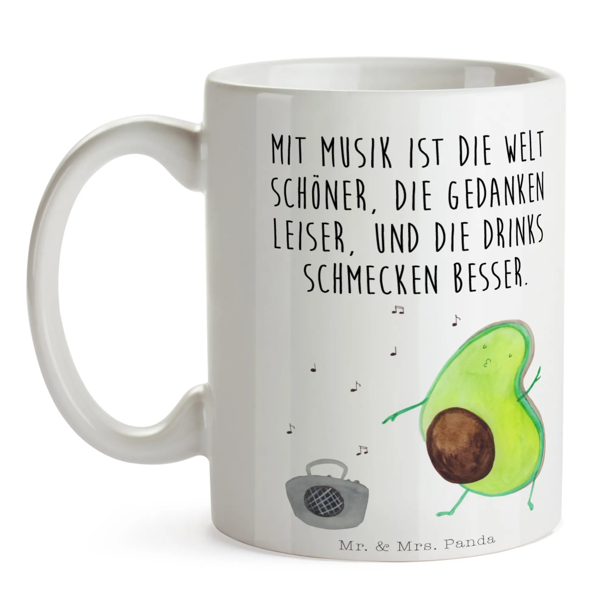 Entdecke die bezaubernde Tasse "Avocado tanzt" aus der einzigartigen Avocado Kollektion von Mr. & Mrs. Panda! Diese wunderschöne Kaffeetasse, gefertigt aus hochwertiger Keramik, macht jeden Schluck zu einem echten Erlebnis. Mit einem tollen Design, das eine niedliche Avocado zeigt, die vor einem Ghettoblaster zur Musik tanzt, bringt sie gute Laune in dein Zuhause und ins Büro.