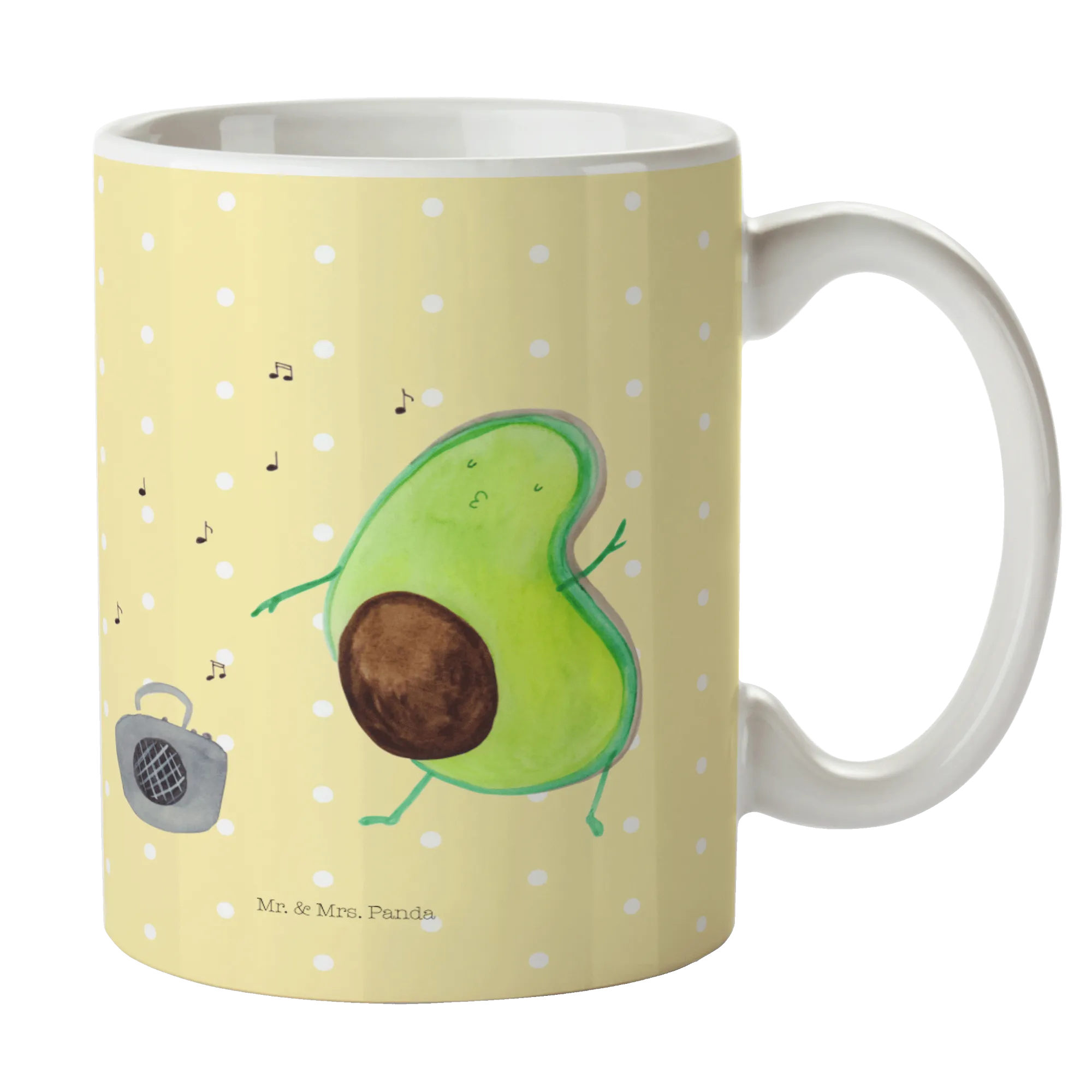 Mach dein Zuhause oder das deiner liebsten Freunde ein wenig fröhlicher und farbenfroher mit der "Avocado tanzt" Tasse von Mr. & Mrs. Panda!
