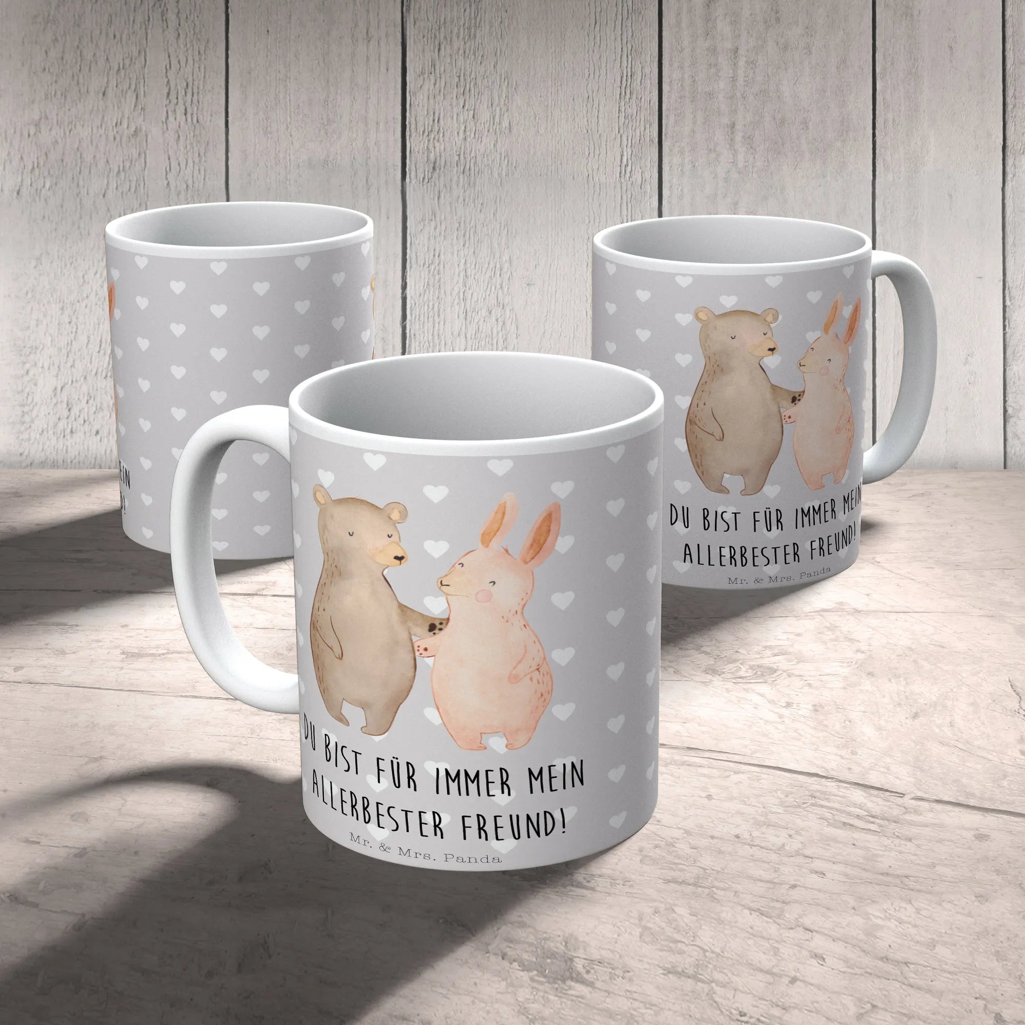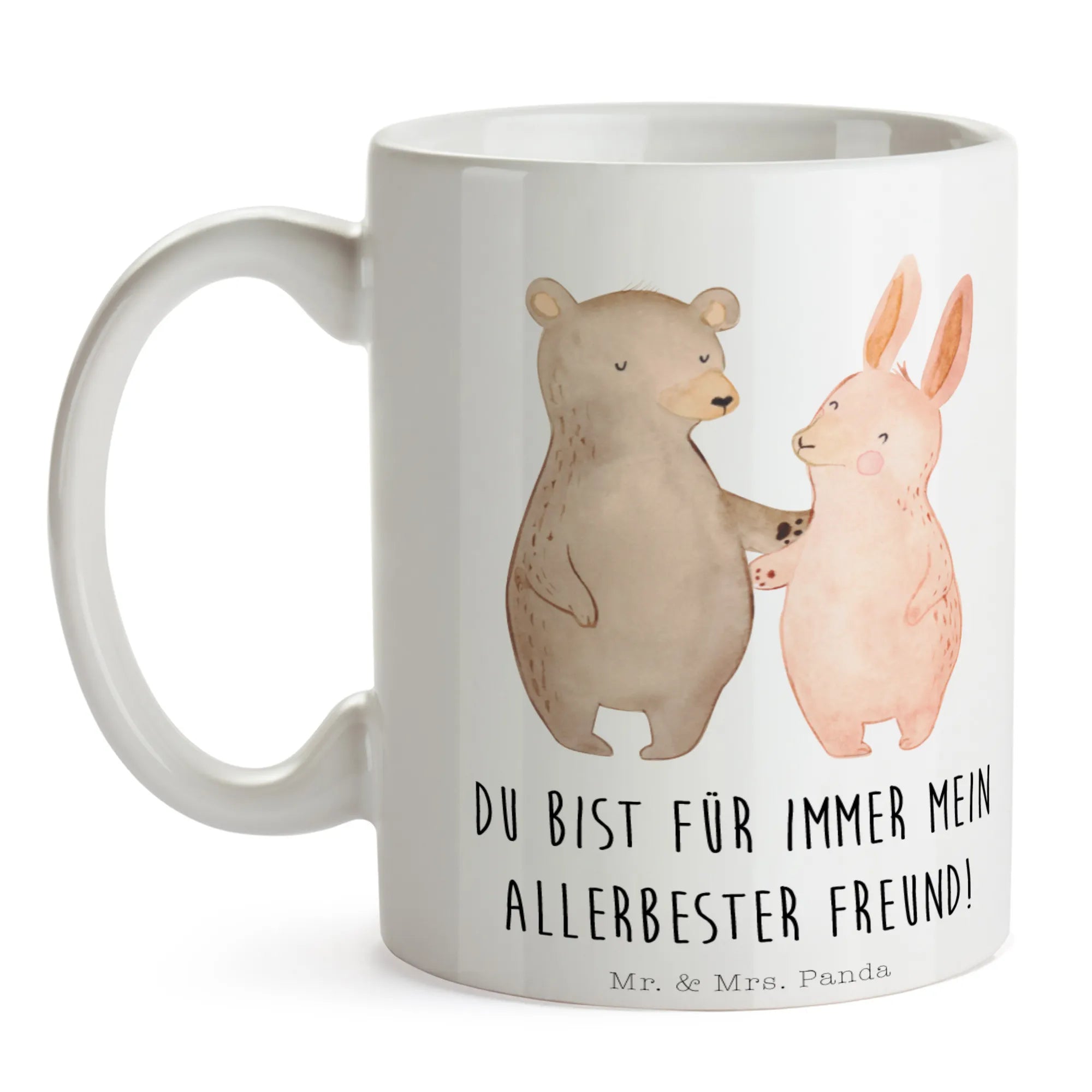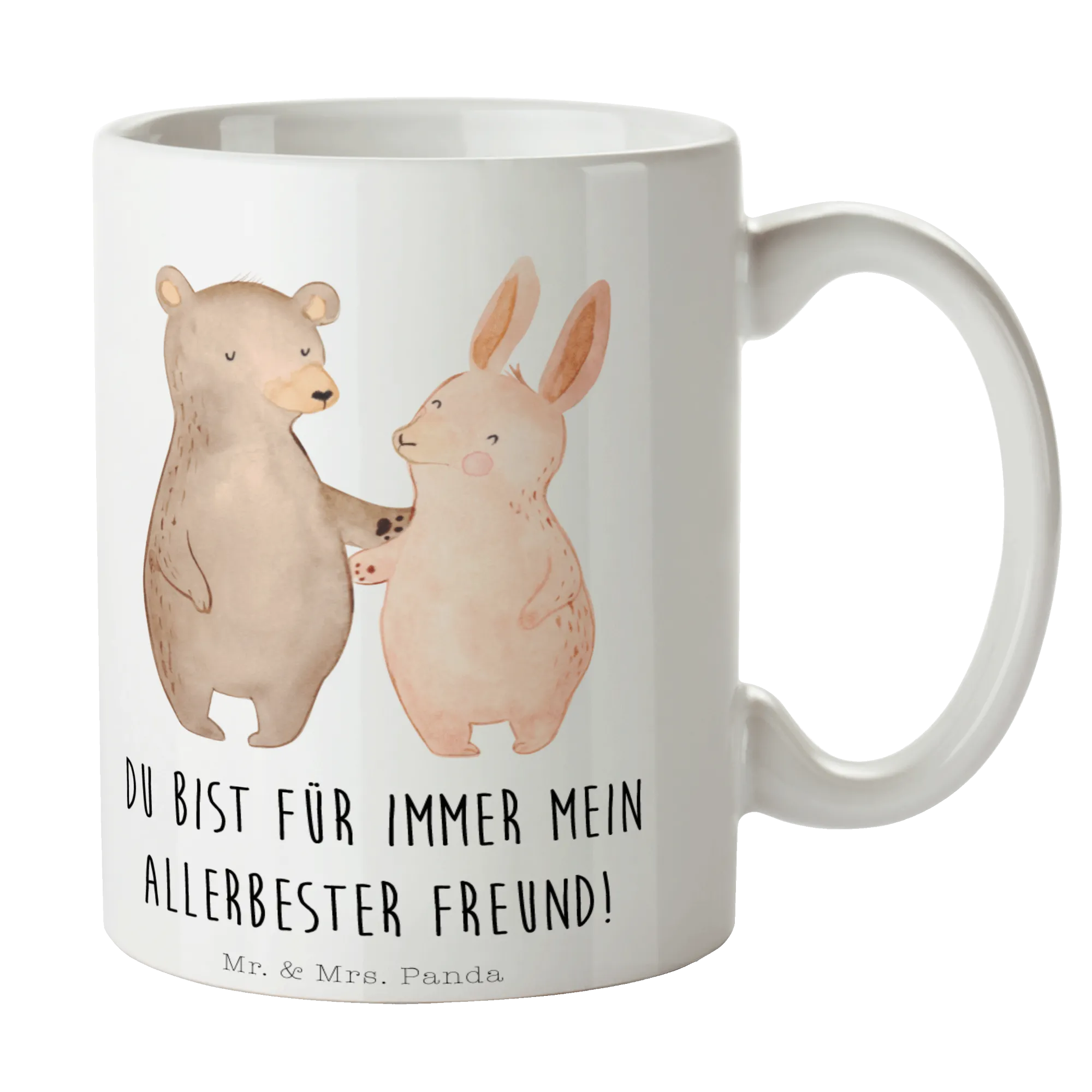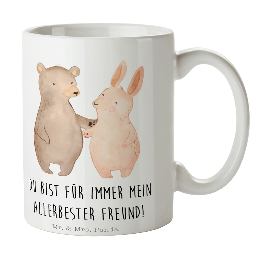 Du suchst nach dem perfekten Geschenk für deinen besten Freund oder deine beste Freundin? Dann ist die bezaubernde Tasse "Bär Hase Umarmen" aus der Kollektion Liebe von Mr. & Mrs. Panda genau das Richtige für dich! Diese einzigartige Tasse überzeugt nicht nur durch ihr charmantes Design, sondern auch durch die liebevolle Botschaft: "Du bist für immer mein allerbester Freund!"
