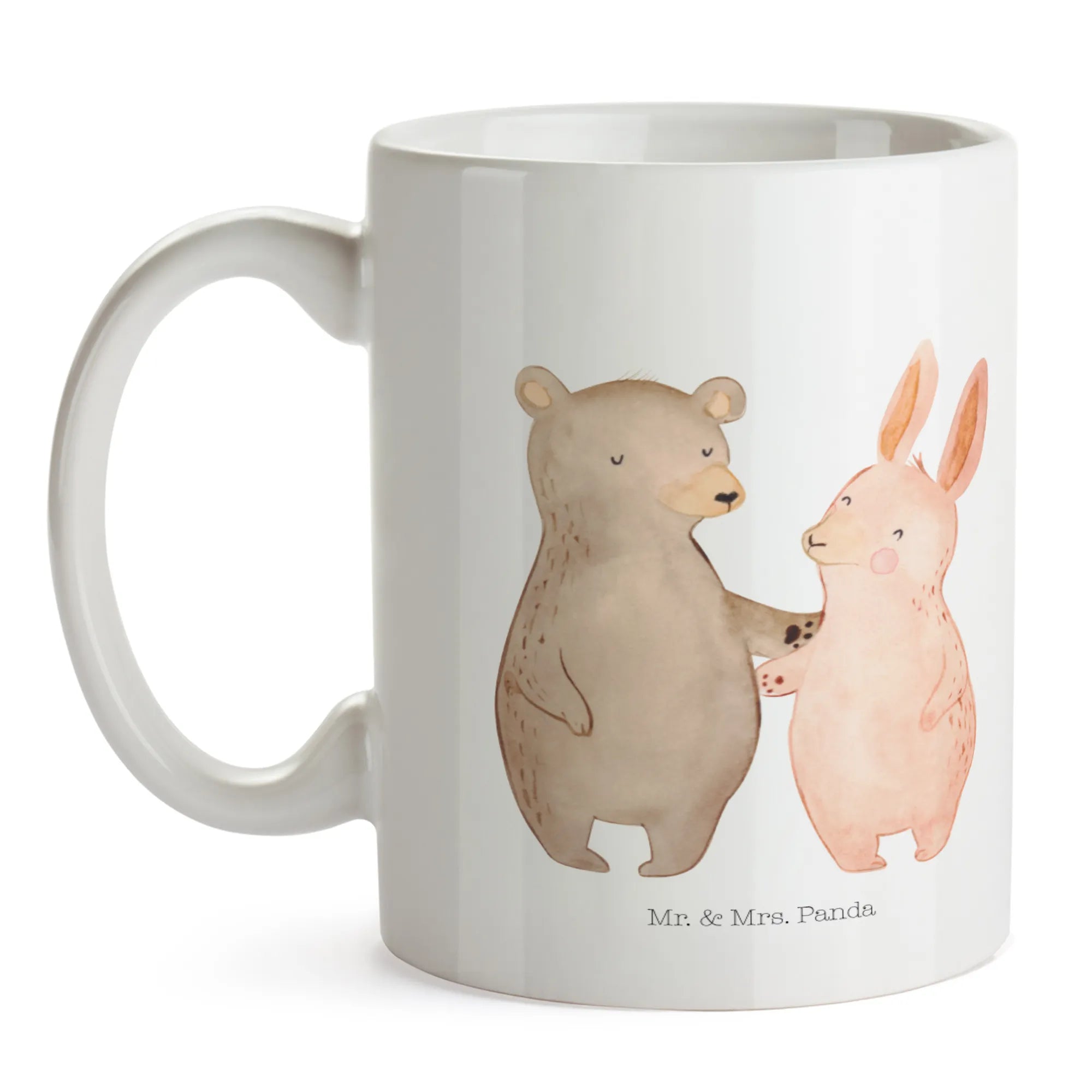 Tasse Bär Hase Umarmen Bürotasse, Tasse mit Motiven, Tasse, Teetasse, Keramiktasse, Kaffeetasse, Geschenktasse, Tasse mit Zitaten, Porzellantasse, Liebe, Partner, Freund, Freundin, Ehemann, Ehefrau, Heiraten, Verlobung, Heiratsantrag, Liebesgeschenk, Jahrestag, Hocheitstag, best friends, bester Freund, Freunde, Bär, Bärchen, Hase