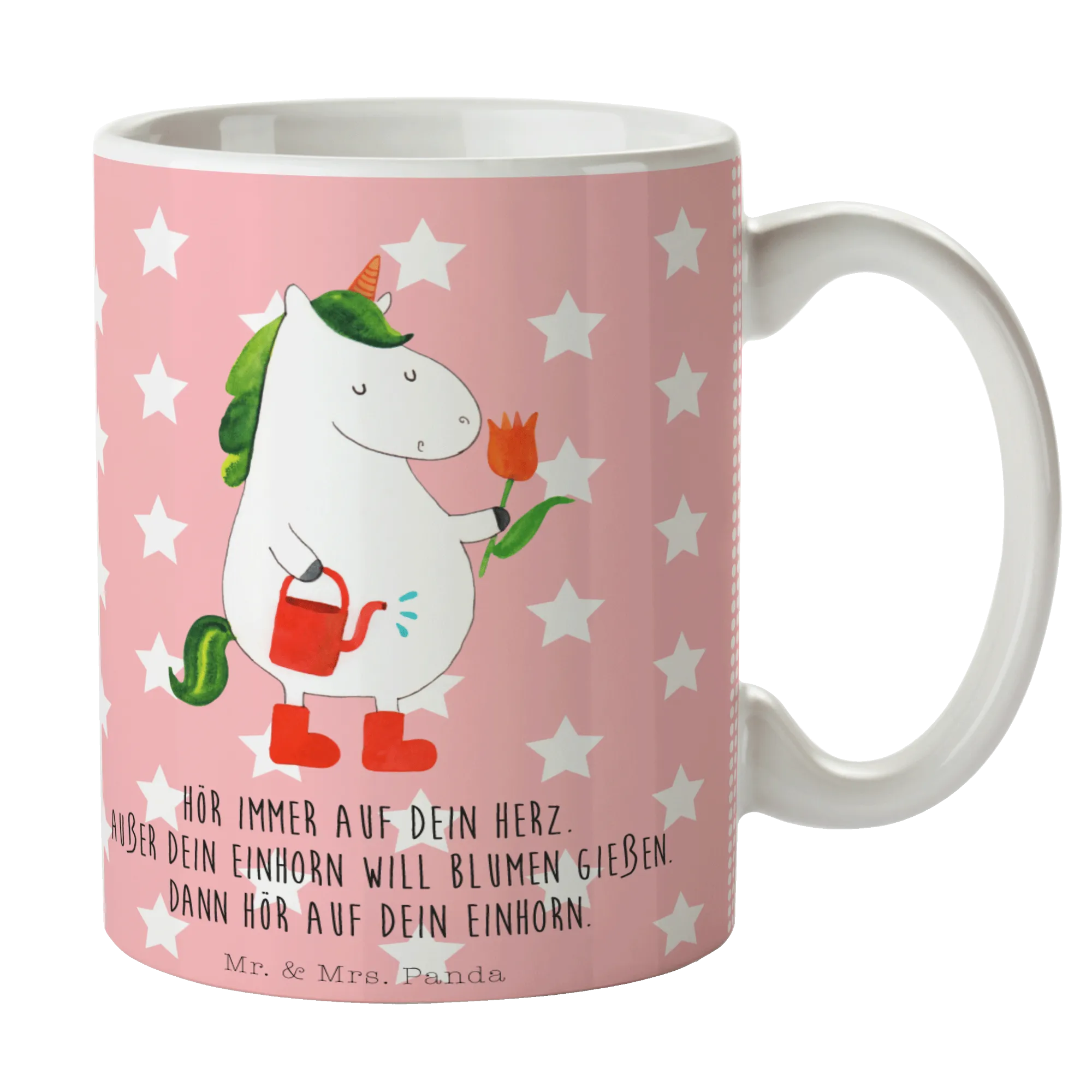 Tasse Einhorn Gärtner - mit Spruch - Keramik - Rot Pastell