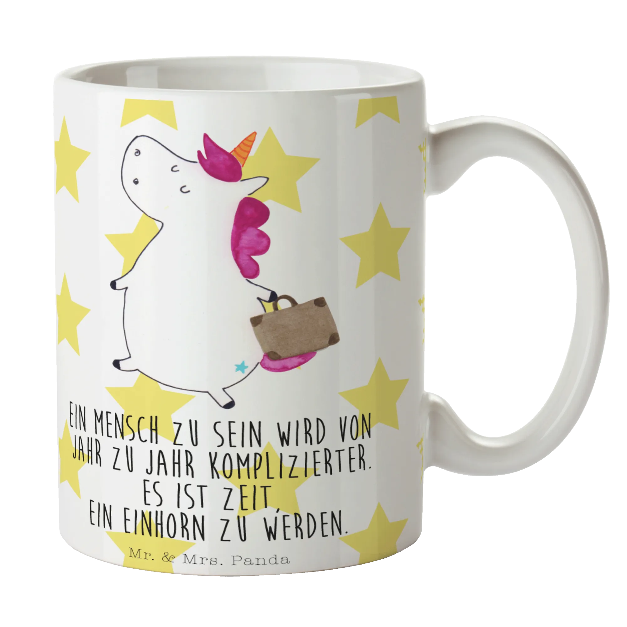Mit einem süßen Einhorn, das mit einem Koffer in der Hand durch die Welt reist, versprüht diese Tasse pure Lebensfreude. Eines der schönsten Geschenke, die du dir selbst oder einem lieben Menschen machen kannst, ist diese Keramiktasse. Ob zum Geburtstag, Weihnachten oder einfach als liebevolle Geste – die Kaffeetasse zaubert immer ein Lächeln ins Gesicht.