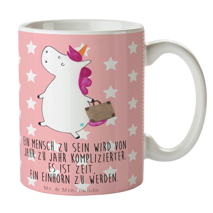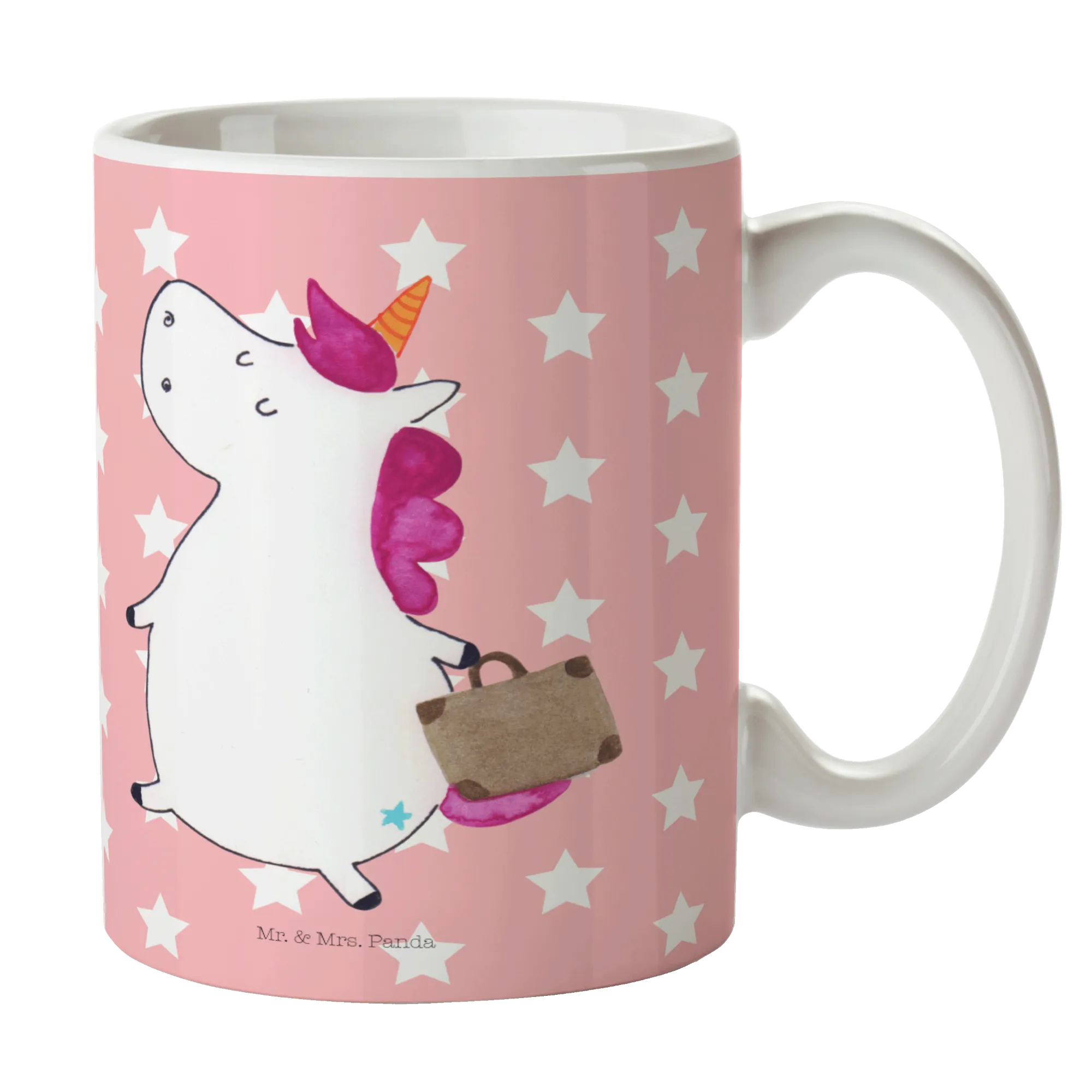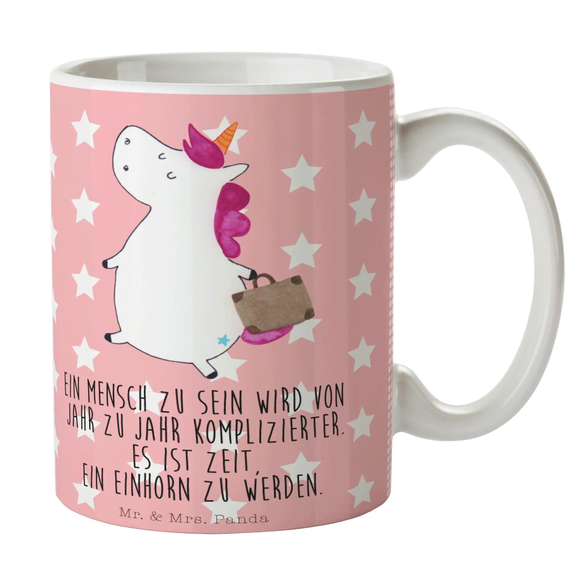 Tasse Einhorn Koffer - mit Spruch - Keramik - Rot Pastell
