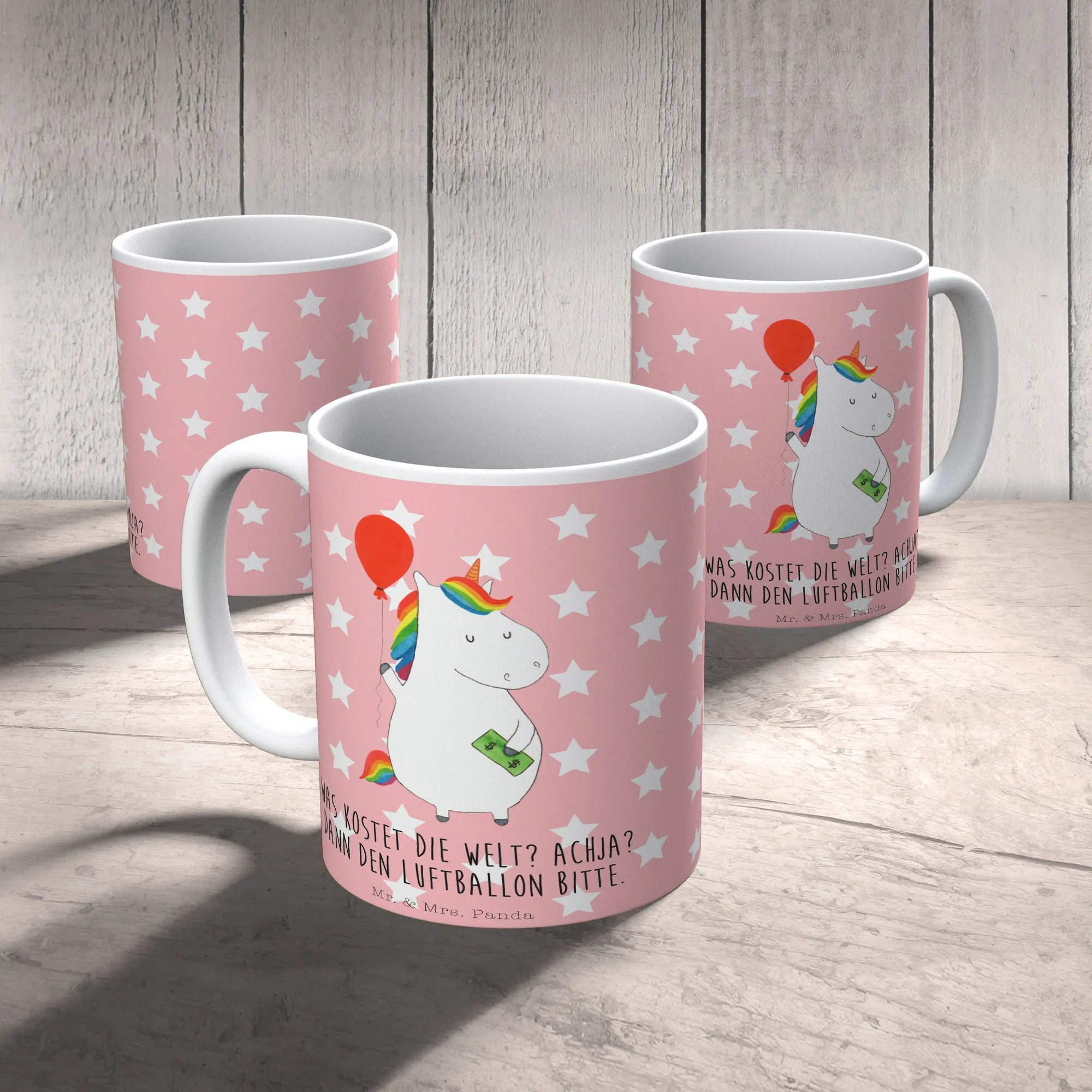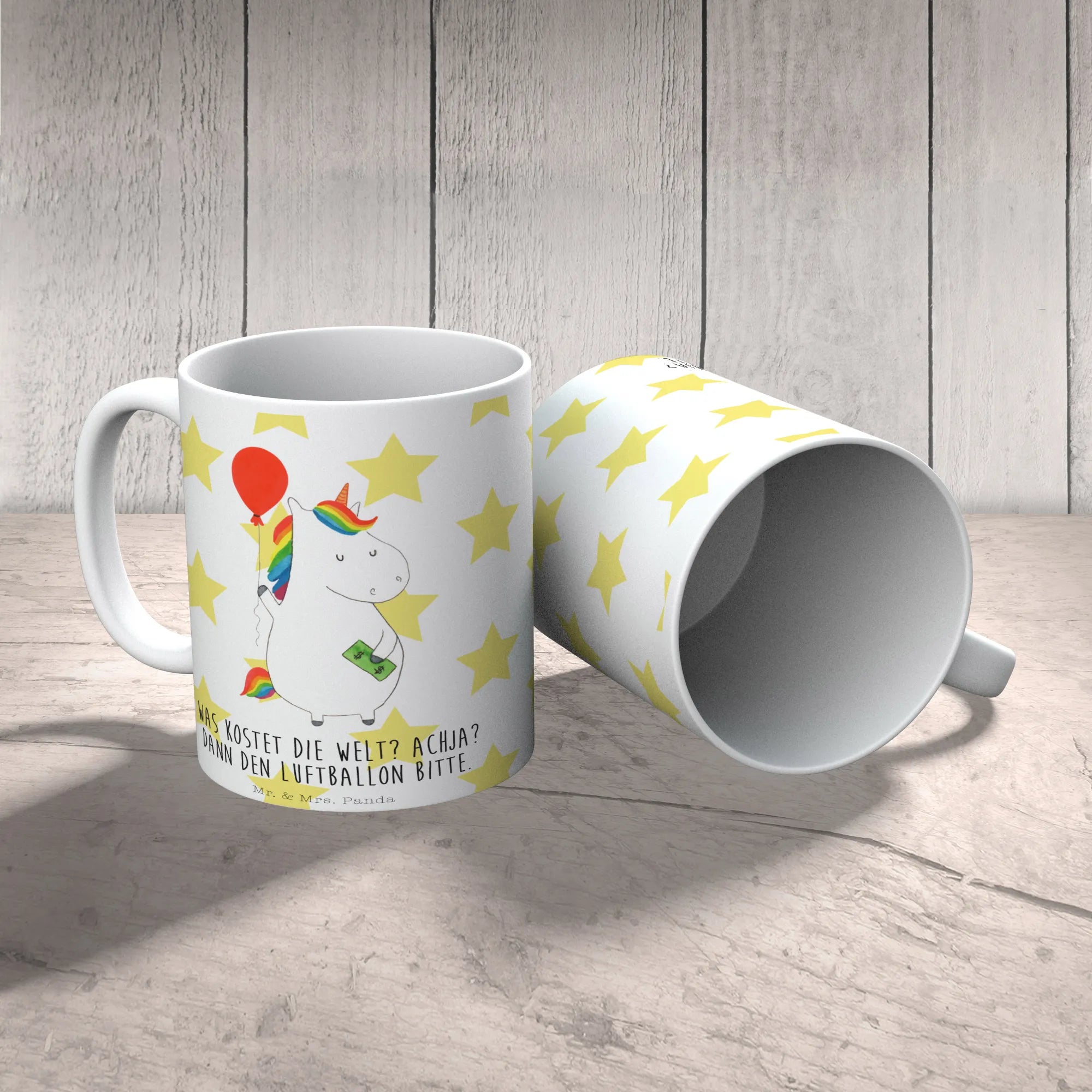 Die zauberhafte Tasse Einhorn Luftballon von Mr. & Mrs. Panda ist das perfekte Geschenk für alle Einhorn-Fans und Liebhaber der magischen Welt! Diese hochwertige, spülmaschinenfeste Keramiktasse begeistert nicht nur durch ihr liebevolles Design, sondern auch durch ihren inspirierenden Spruch: 'Was kostet die Welt? Achja? Dann den Luftballon, bitte.'