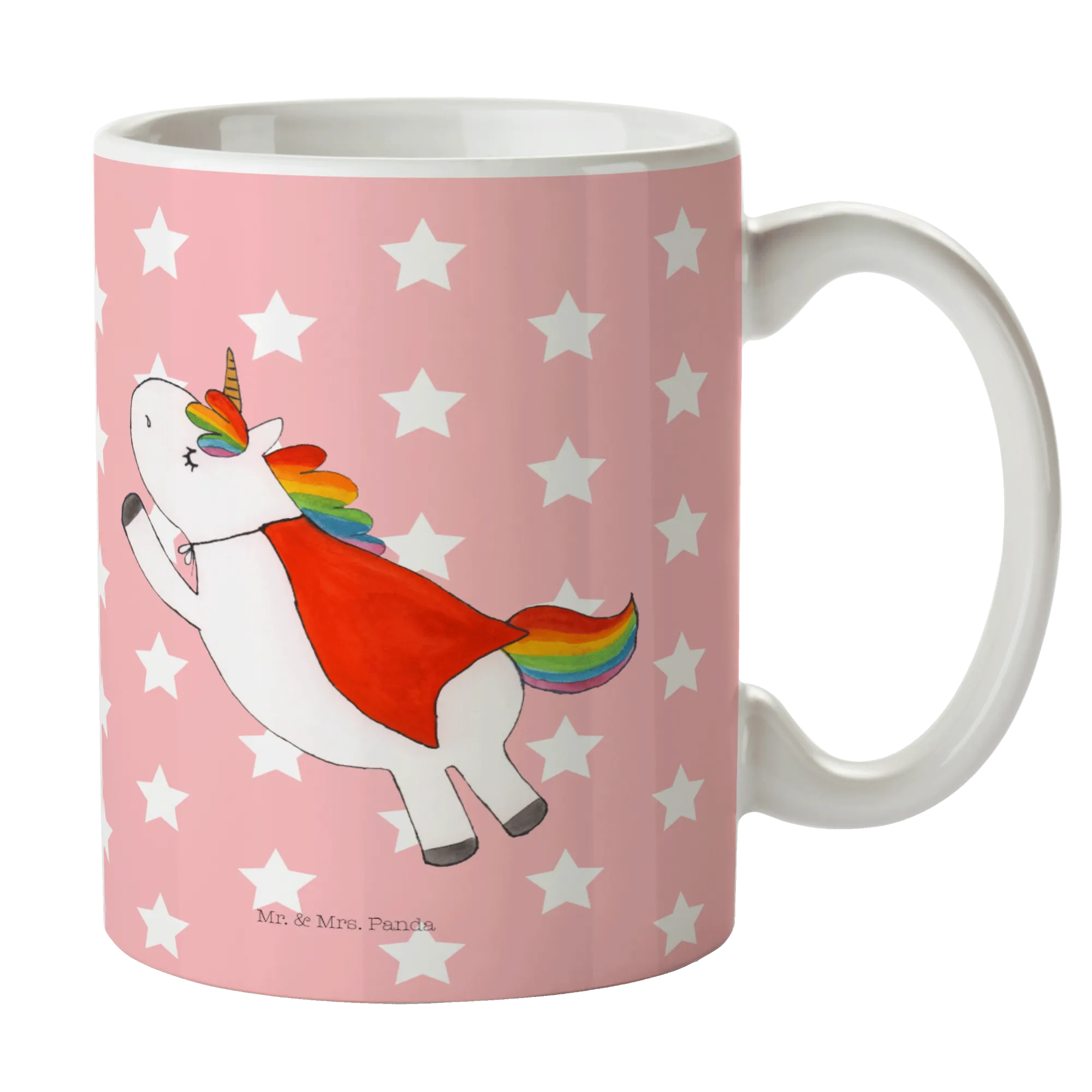 Tasse Einhorn Super - mit Spruch - Keramik - Rot Pastell