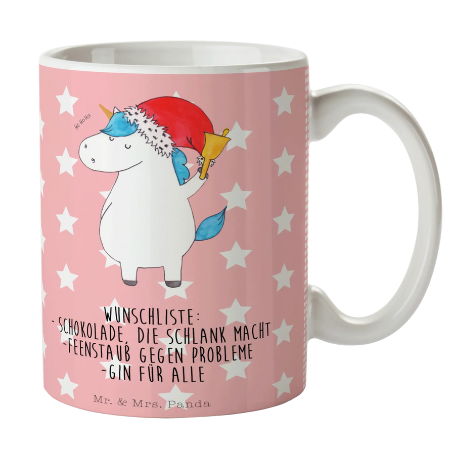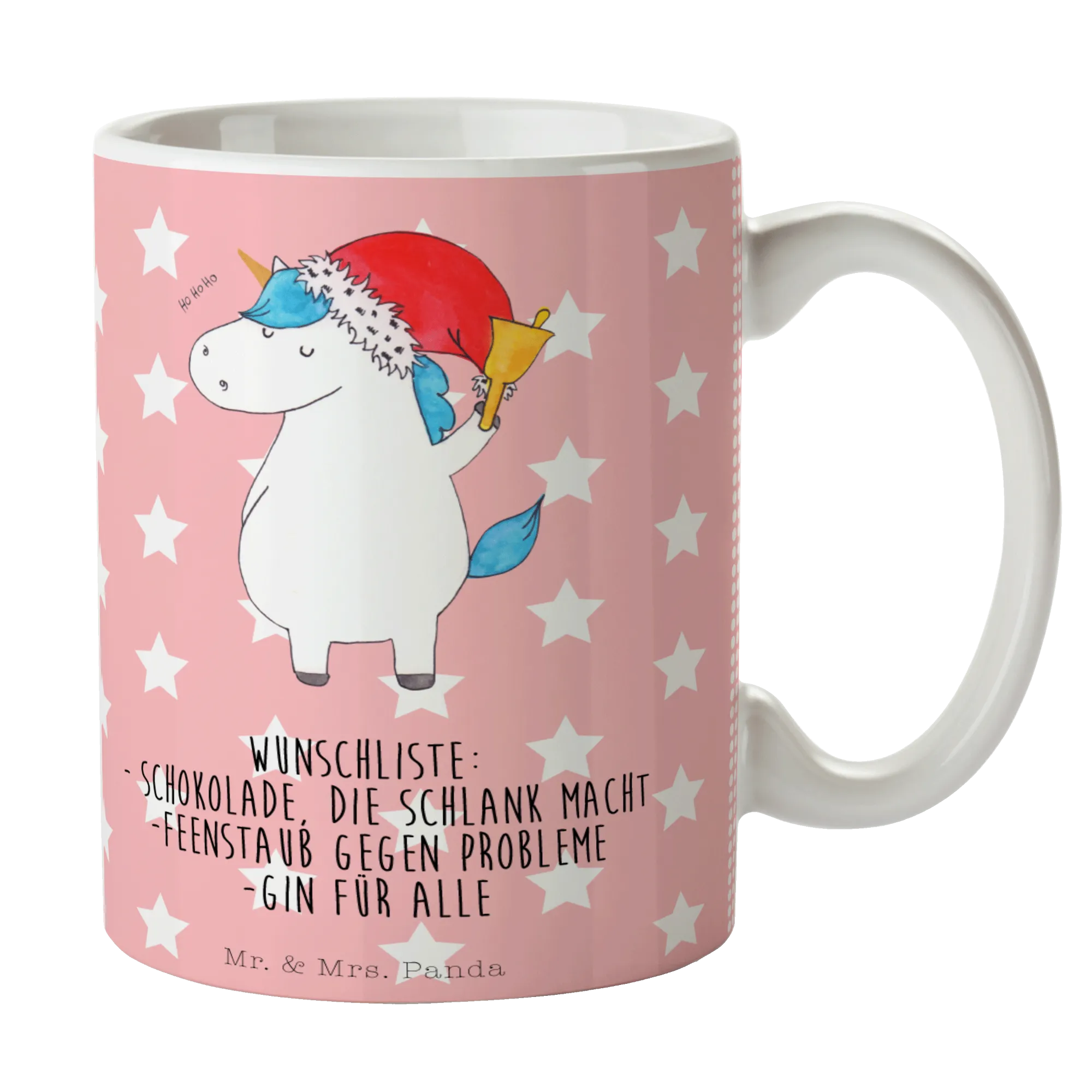 Tasse Einhorn Weihnachtsmann - mit Spruch - Keramik - Rot Pastell
