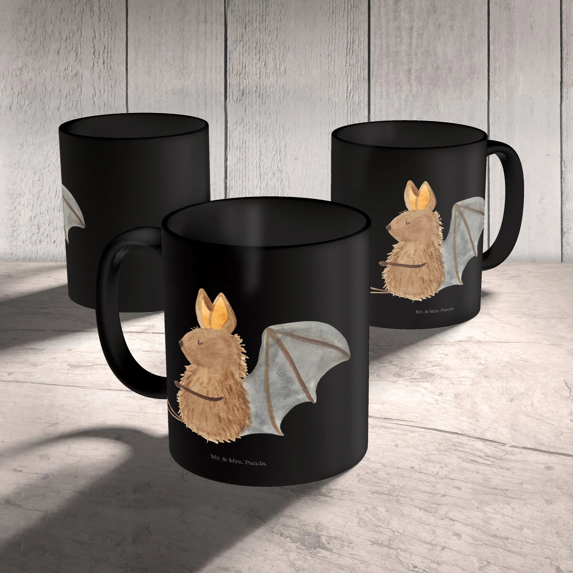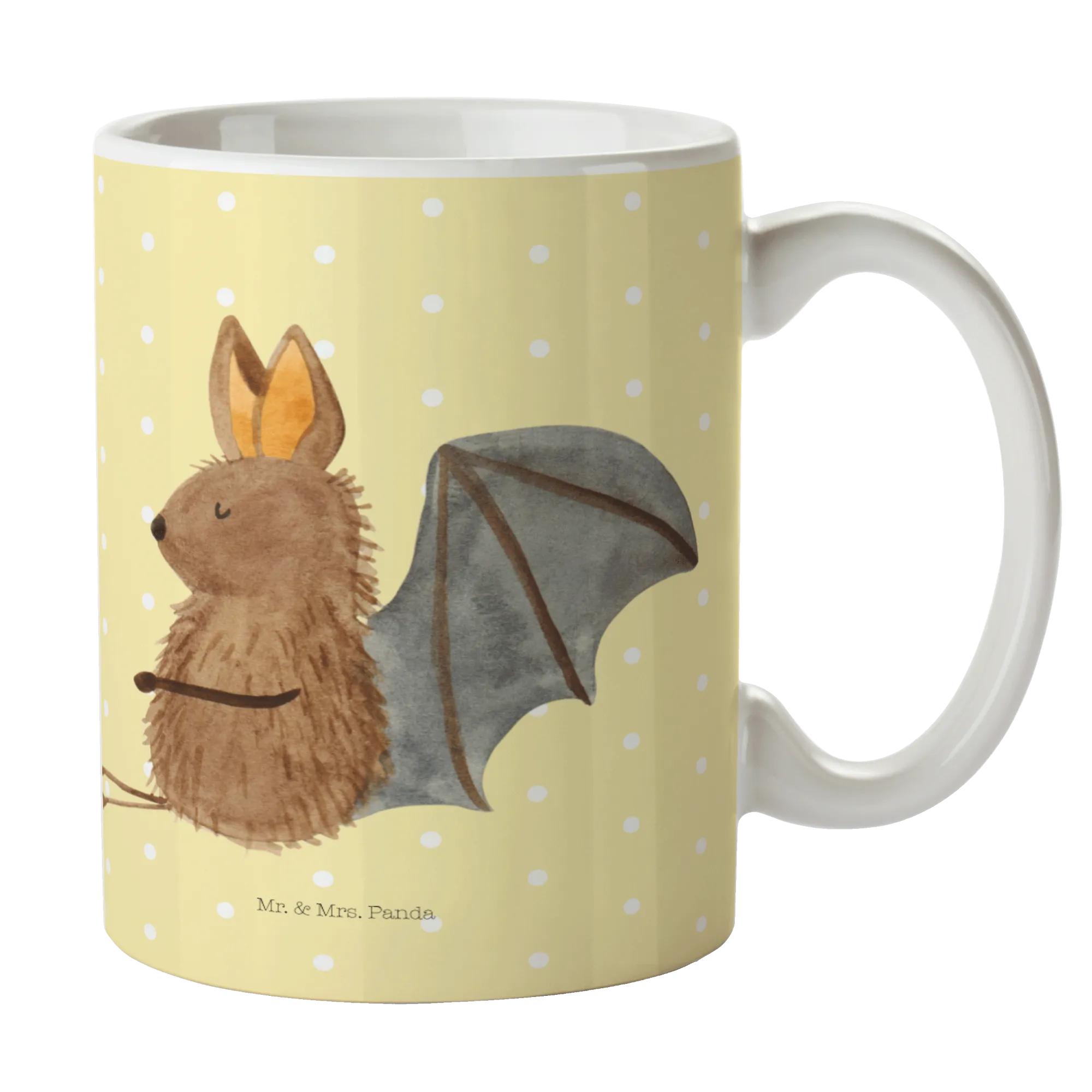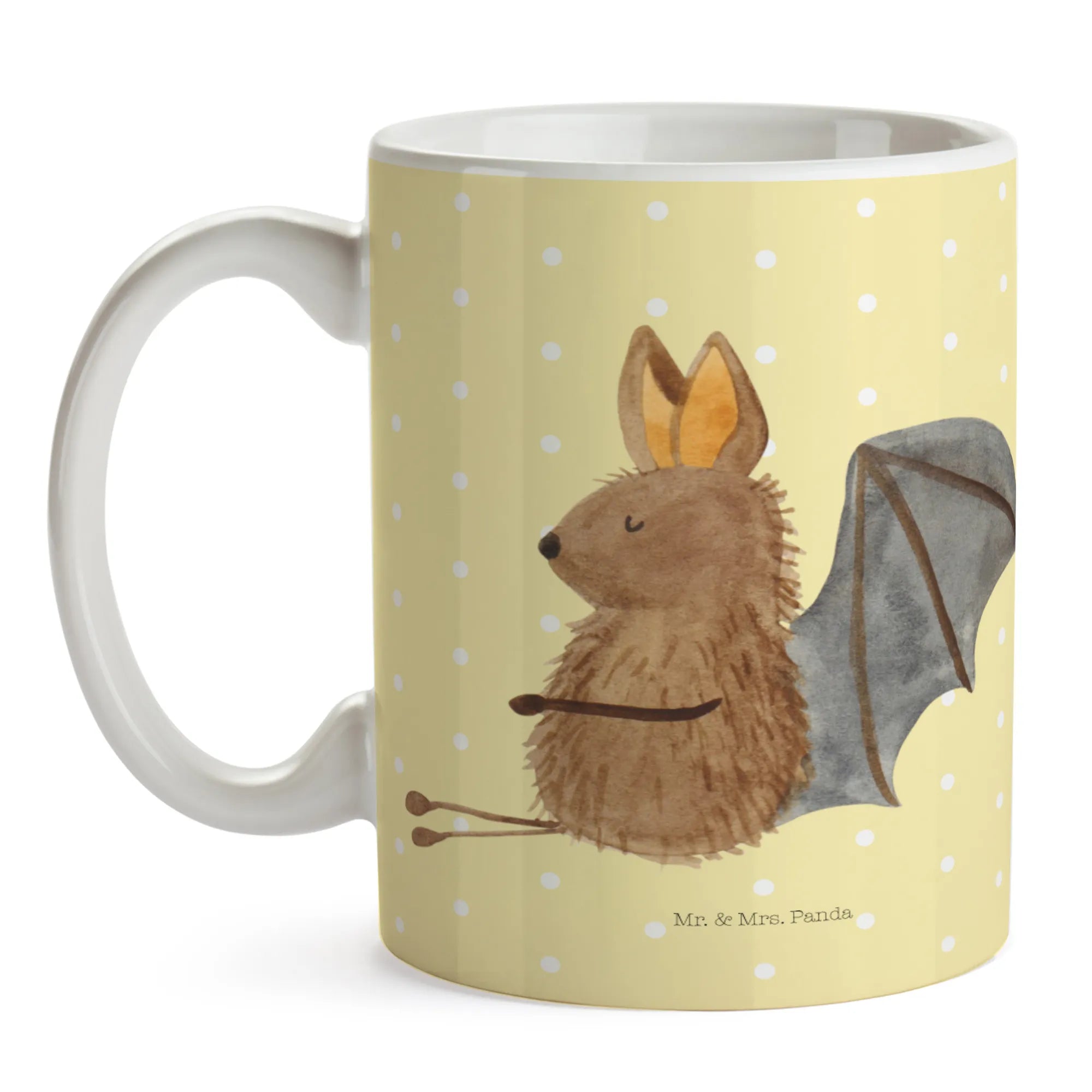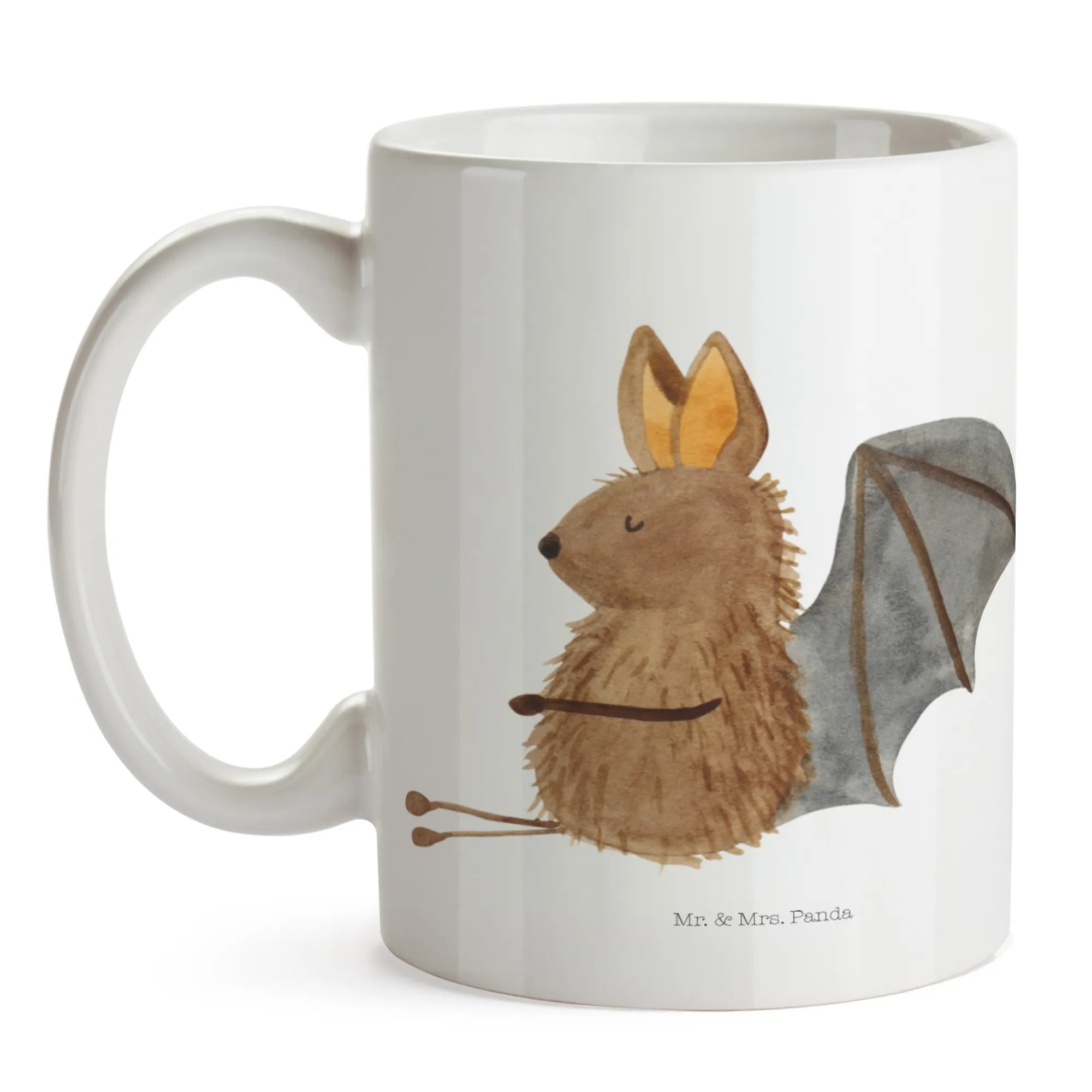 Die wunderschöne Tasse mit dem niedlichen Motiv einer sitzenden Fledermaus von Mr. & Mrs. Panda ist das perfekte Geschenk für alle Tierliebhaber, die das Besondere schätzen. Mit ihrer Größe von 325 ml passt sie perfekt für Deinen Morgenkaffee oder den entspannenden Tee am Nachmittag.