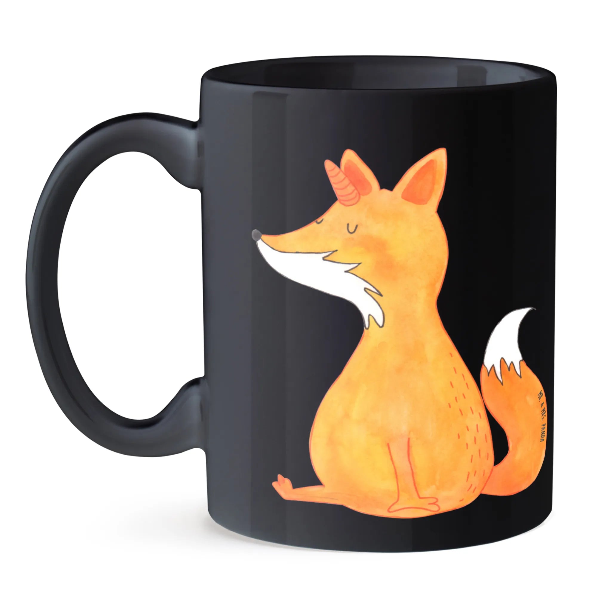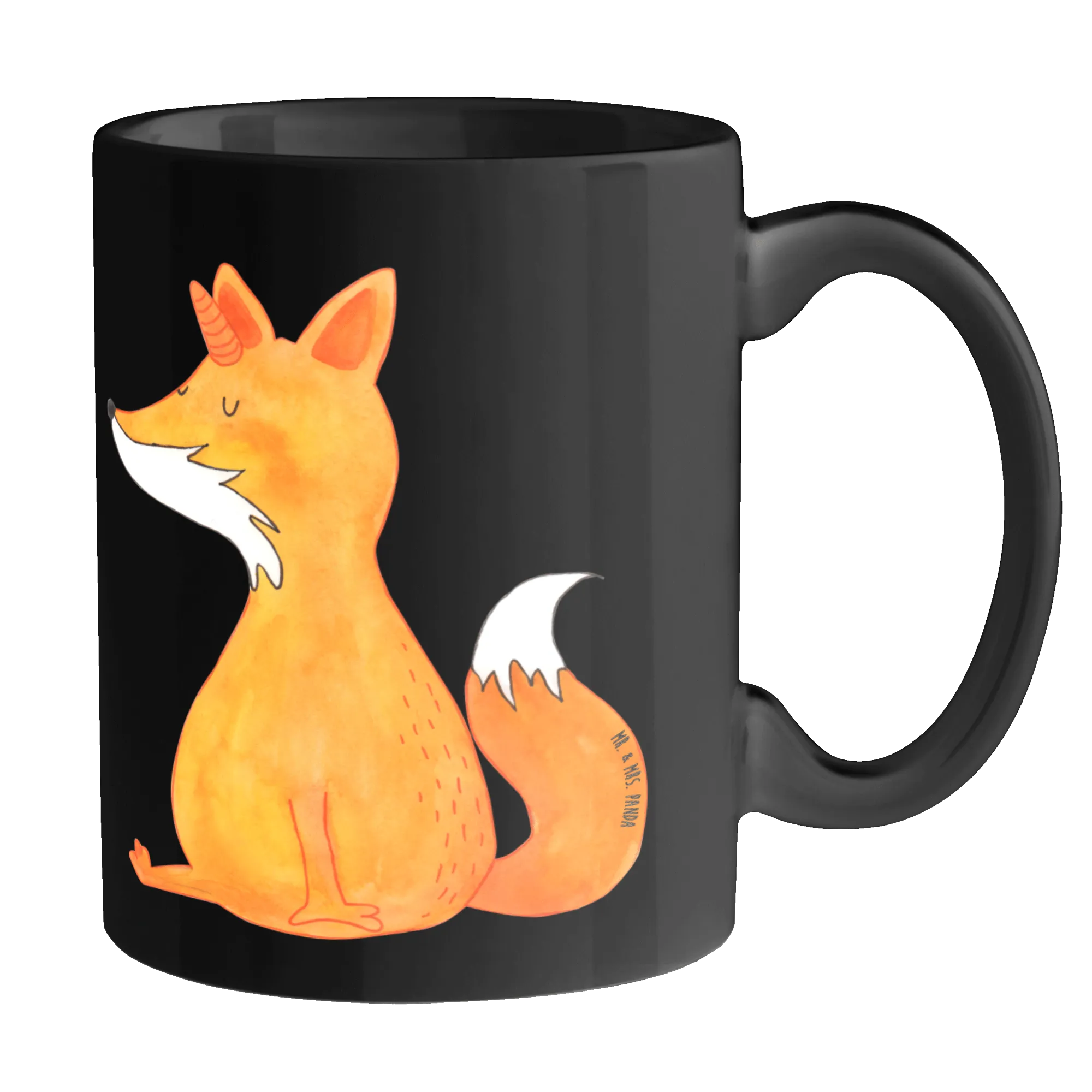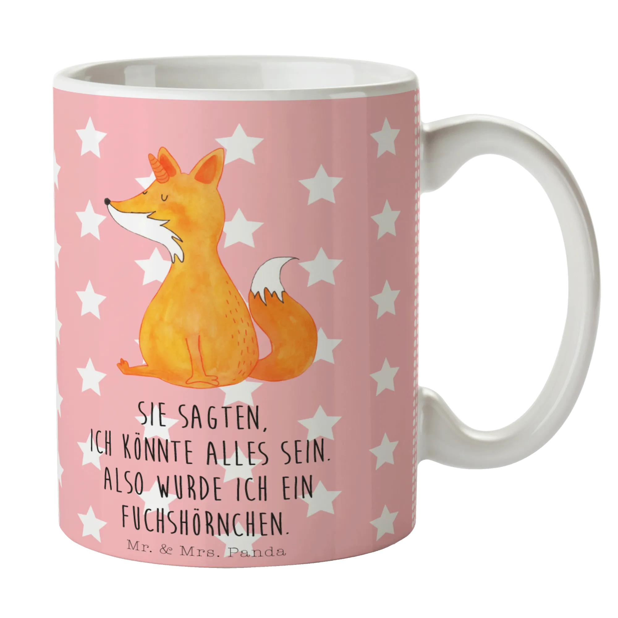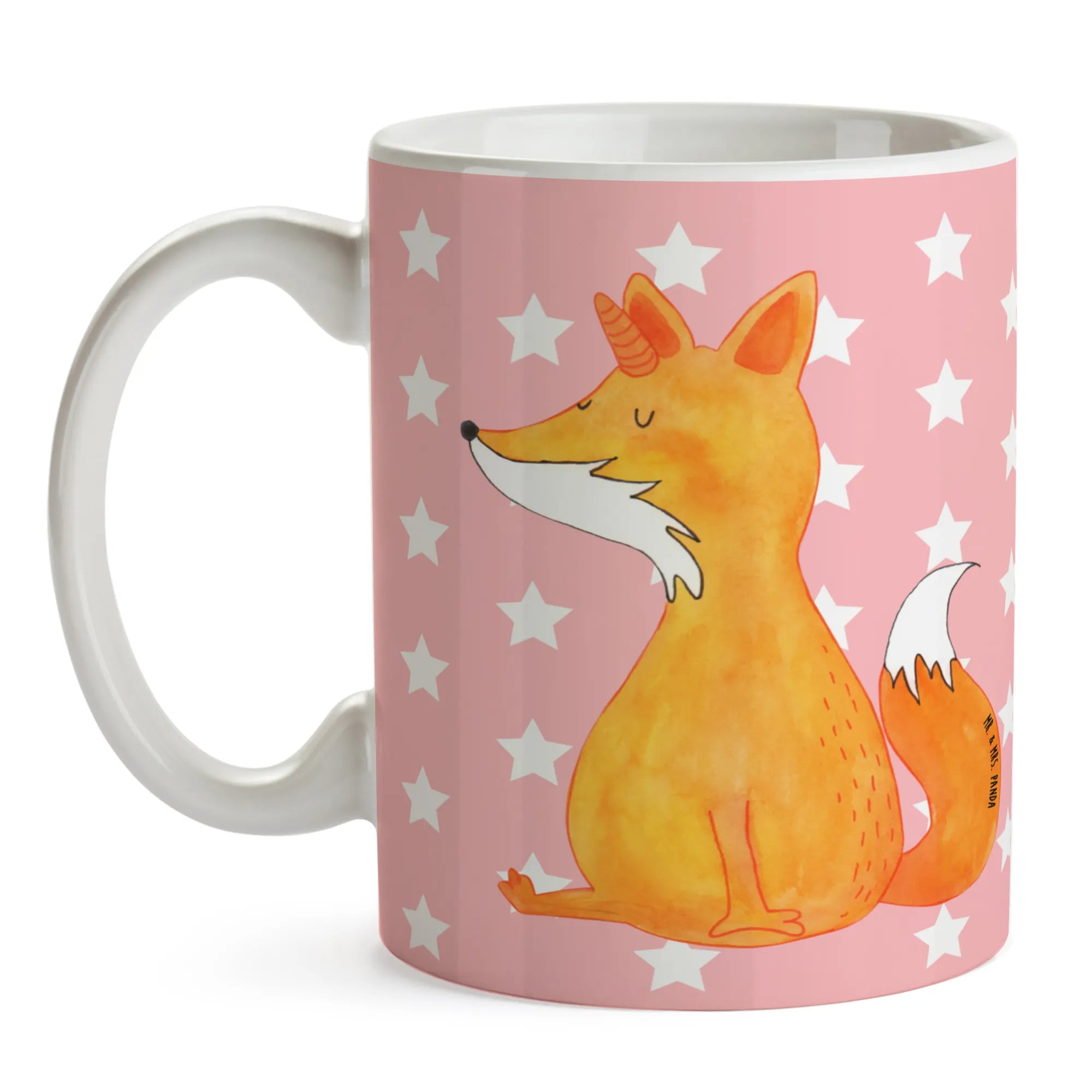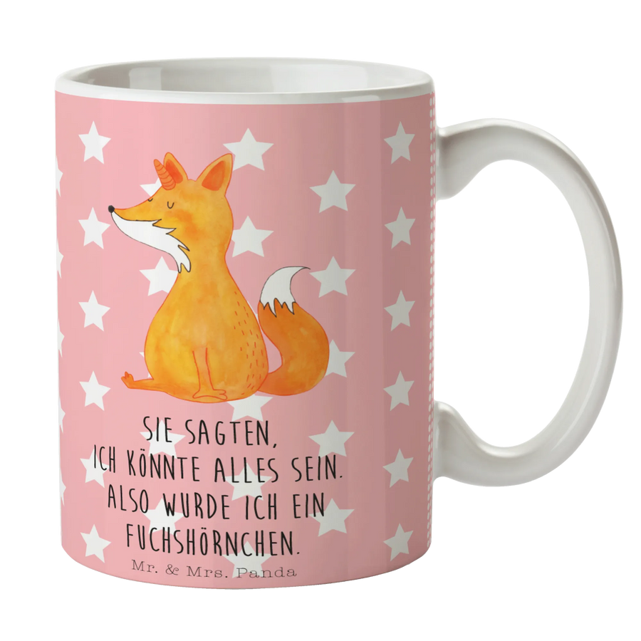 Egal ob für Dich selbst oder als liebevolles Geschenk – die Fuchshörnchen Tasse aus der bezaubernden Einhorn - Kollektion von Mr. & Mrs. Panda ist ein wahres Schmuckstück für jeden Einhornliebhaber! Stell Dir vor, Du nimmst einen großen Schluck von Deinem Lieblingsgetränk aus einer besonders glänzenden Keramiktasse, die mit dem einzigartigen Motiv eines orange-gelben Fuchs mit Einhornhorn bedruckt ist. Diese originelle Tasse ist nicht nur ein praktisches Küchenutensil, sondern bringt auch ein Lächeln auf Dein Gesicht und zieht die Blicke aller an. Der Spruch 'Sie sagten, ich könnte alles sein. Also wurde ich ein Fuchshörnchen.' fasst die zauberhafte, phantasievolle Welt perfekt zusammen, die alle Liebhaber von Einhörnern und Füchsen begeistert.