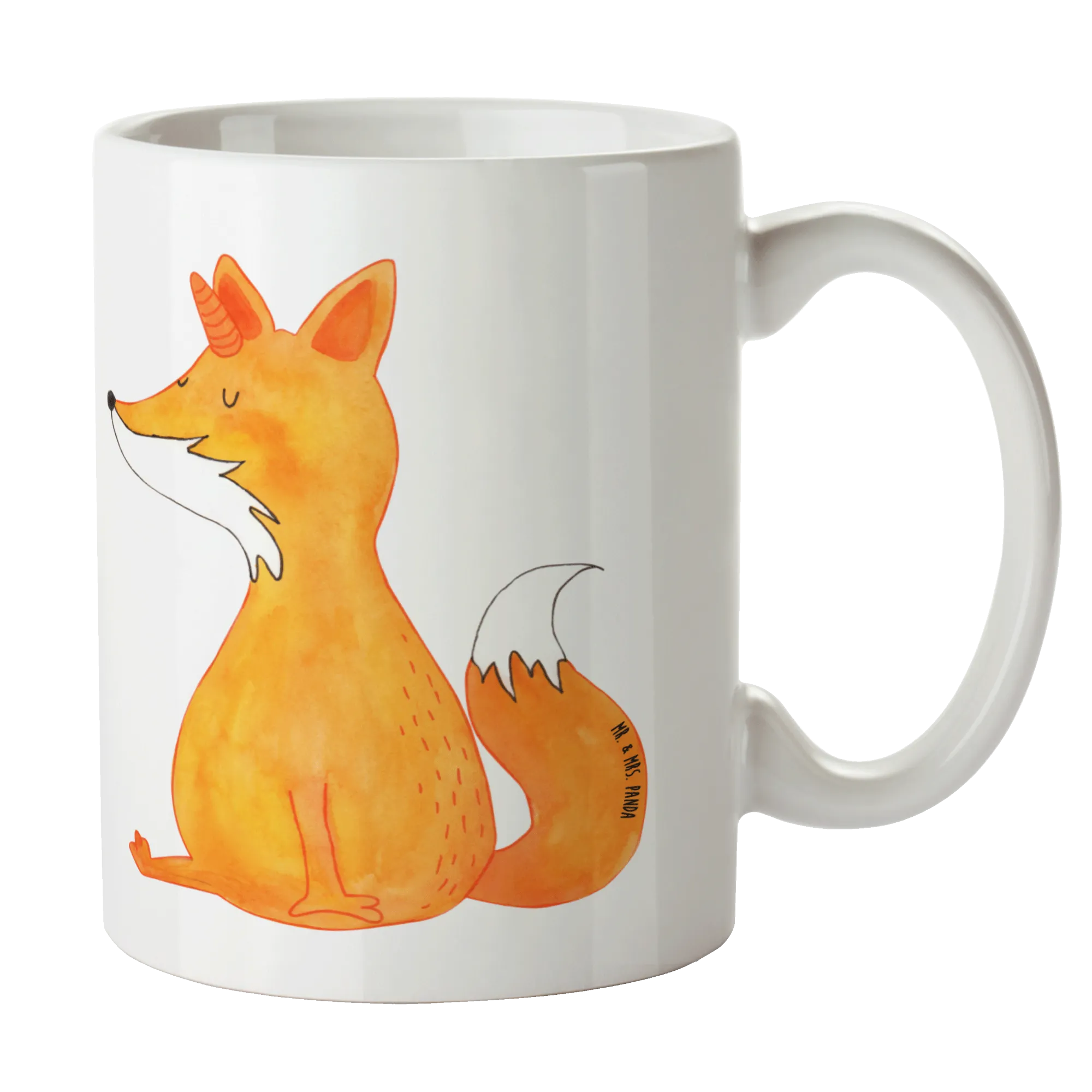 Die wunderschöne Fuchshörnchen Tasse aus der Einhorn-Kollektion von Mr. & Mrs. Panda ist nicht einfach nur ein Becher – sie ist eine Einladung in eine märchenhafte Welt! Diese zauberhafte Keramiktasse, mit einem charmanten Design eines orange-gelben Fuchs, der ein spiralförmiges Einhornhorn trägt, bringt Frohsinn in jeden Schluck deines Lieblingsgetränks. Das handgezeichnete Motiv strahlt eine süße und fröhliche Aura aus, perfekt, um den Alltag zu verzaubern.