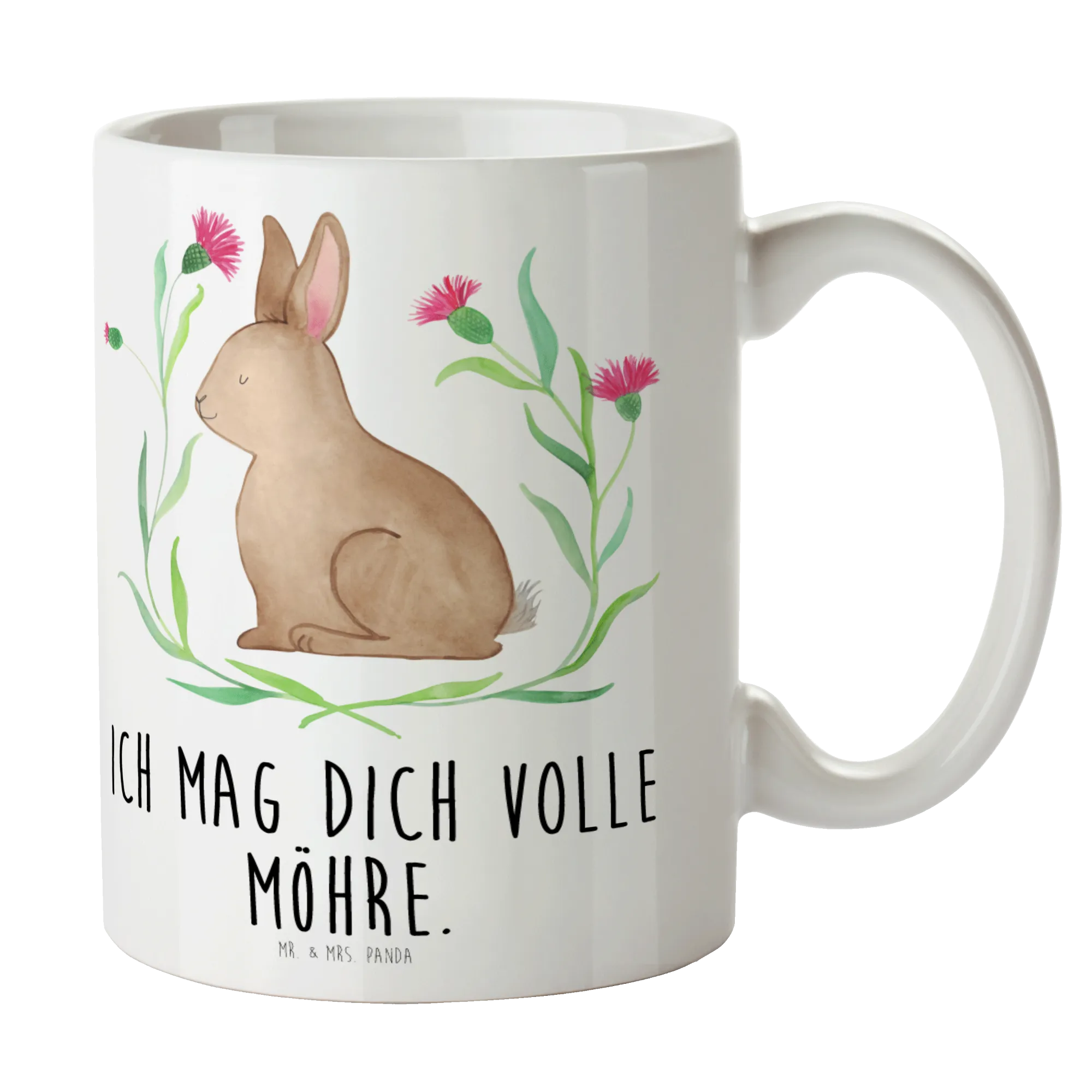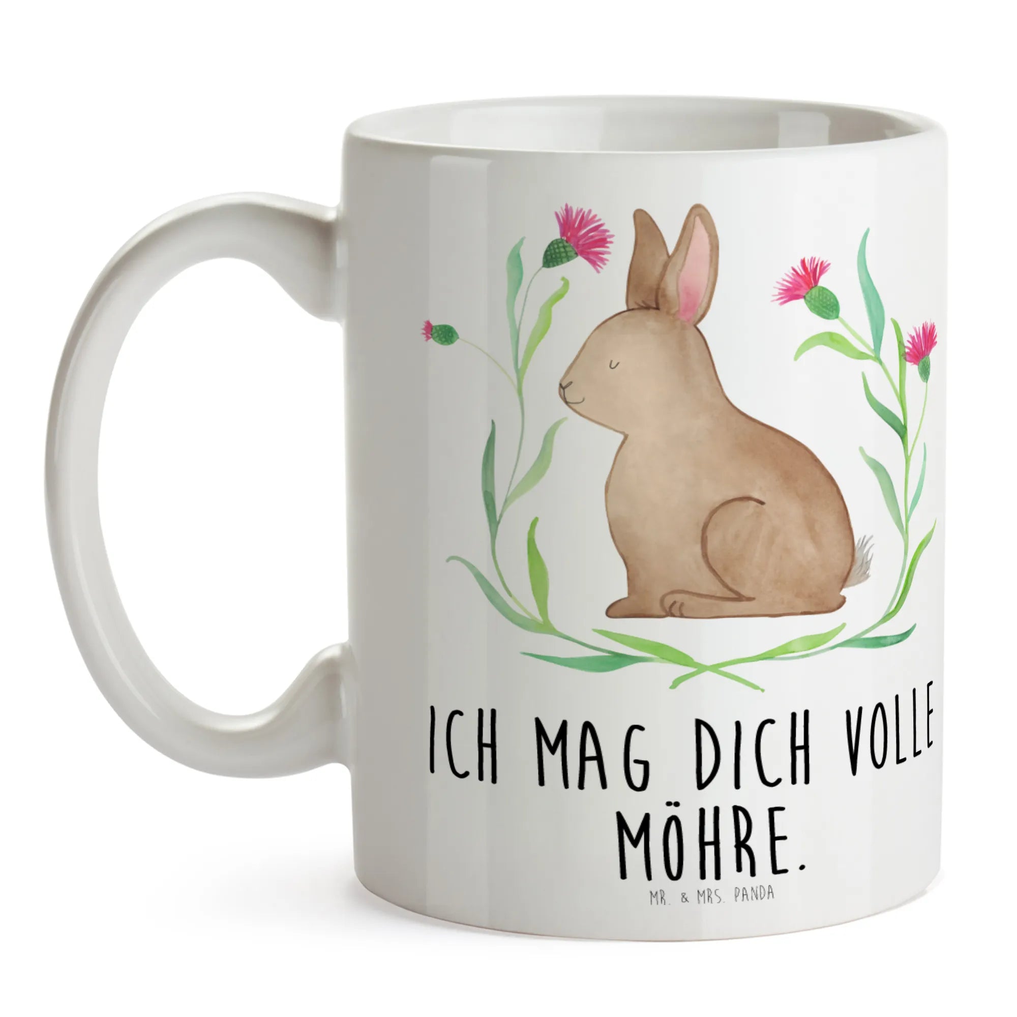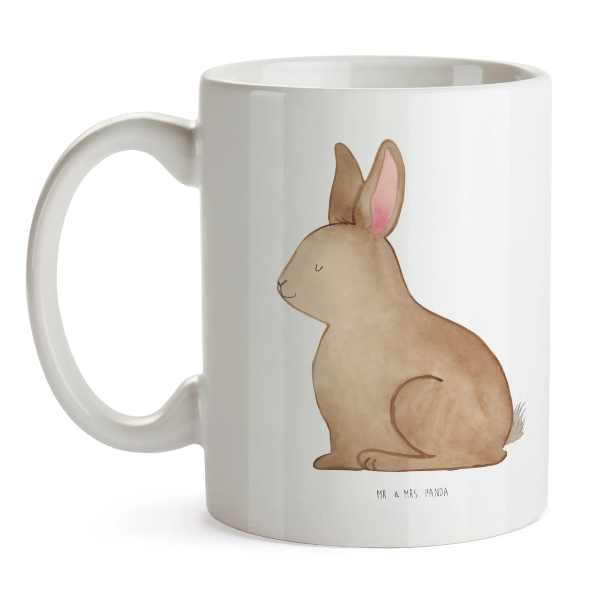 Tasse Hase Sitzen - mit Spruch - Keramik - Weiß