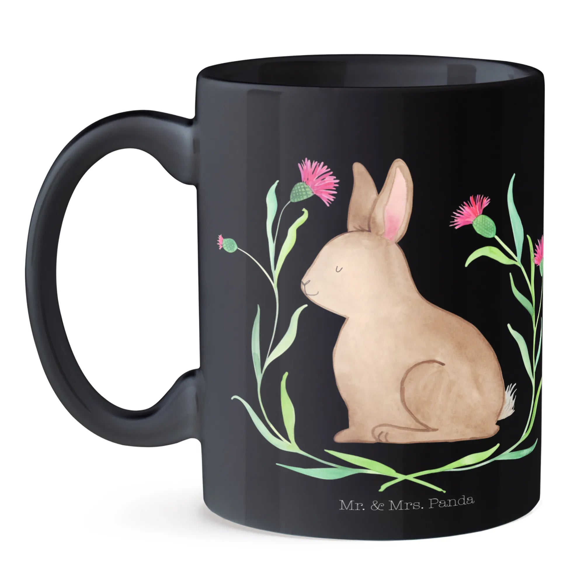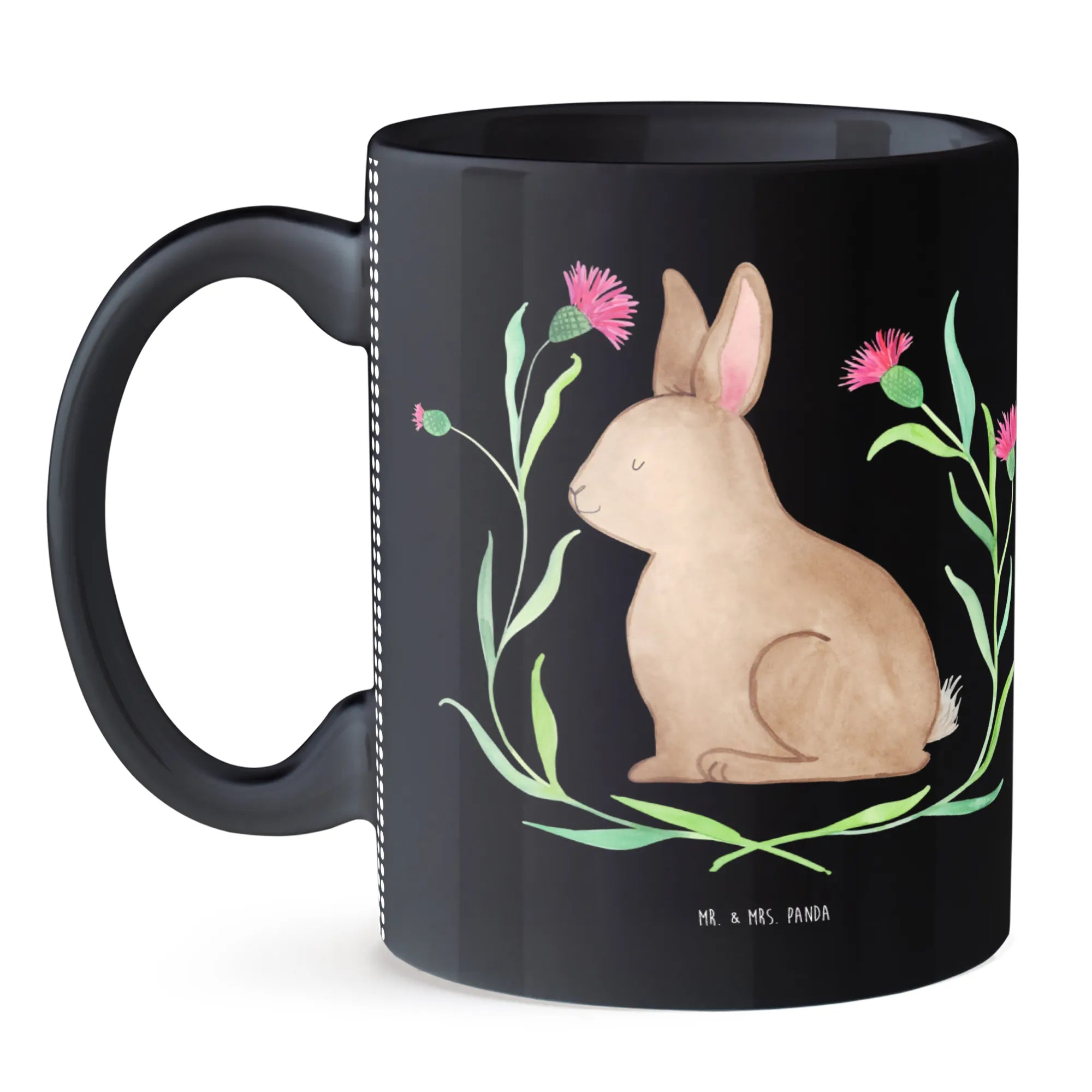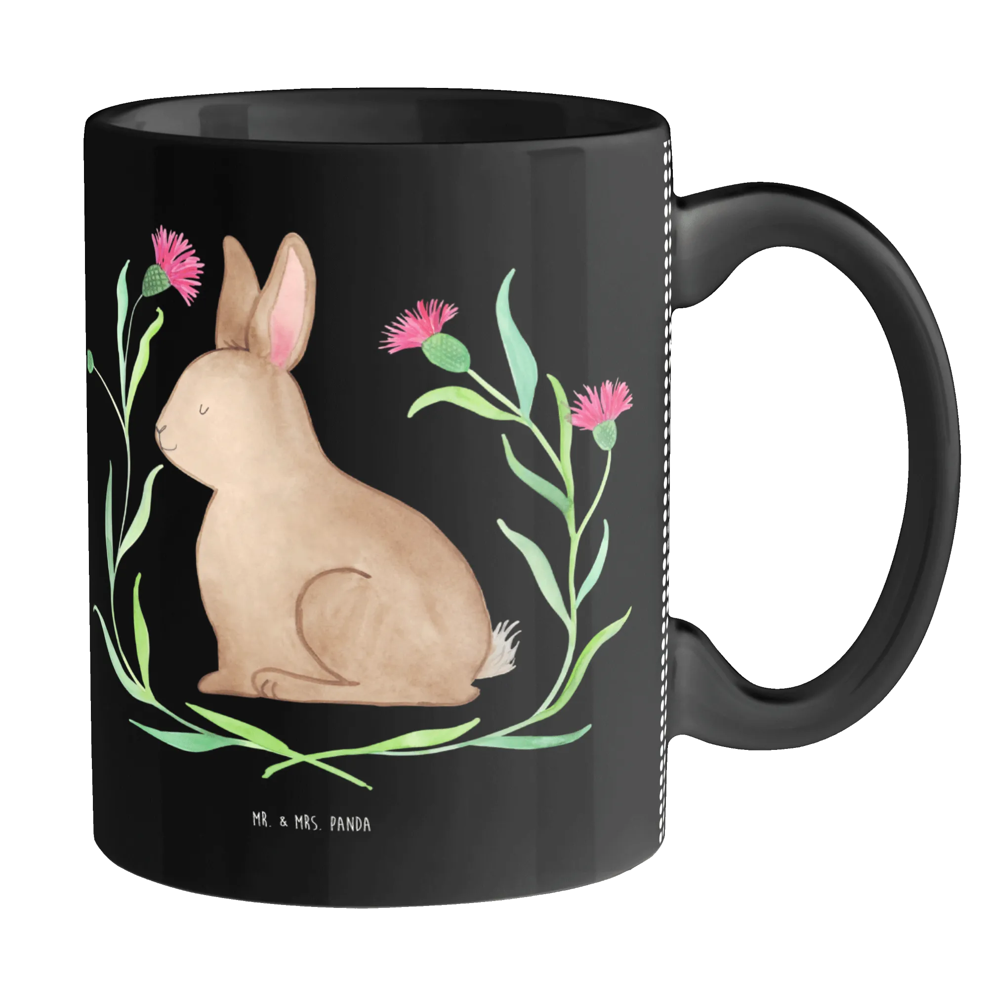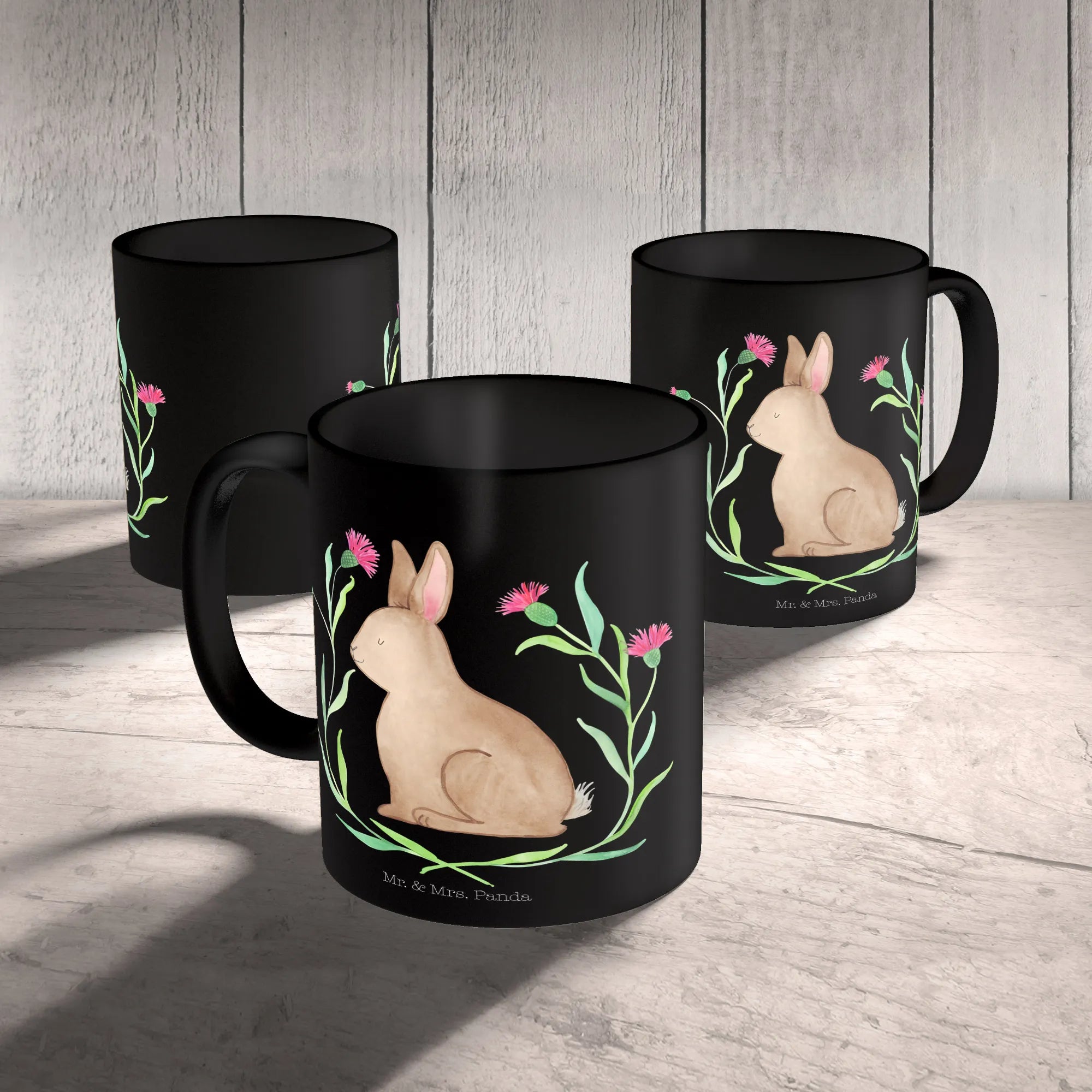 Die wunderschöne Tasse "Hase sitzend" aus der Ostern Kollektion von Mr. & Mrs. Panda ist das perfekte Geschenk für jeden, der die fröhlichen Osterfeierlichkeiten liebt oder einfach nur die Frühlingszeit herzlich begrüßen möchte. Die Tasse besticht durch ihr einzigartiges Design mit einem niedlichen, sitzenden Hasen, der glücklich zwischen bunten Blumen thront. Mit einem Füllvermögen von 325 ml eignet sie sich hervorragend für eine große Tasse Tee oder Kaffee, perfekt für die morgendliche Kaffeepause im Büro oder für entspanntes Teetrinken am Nachmittag.