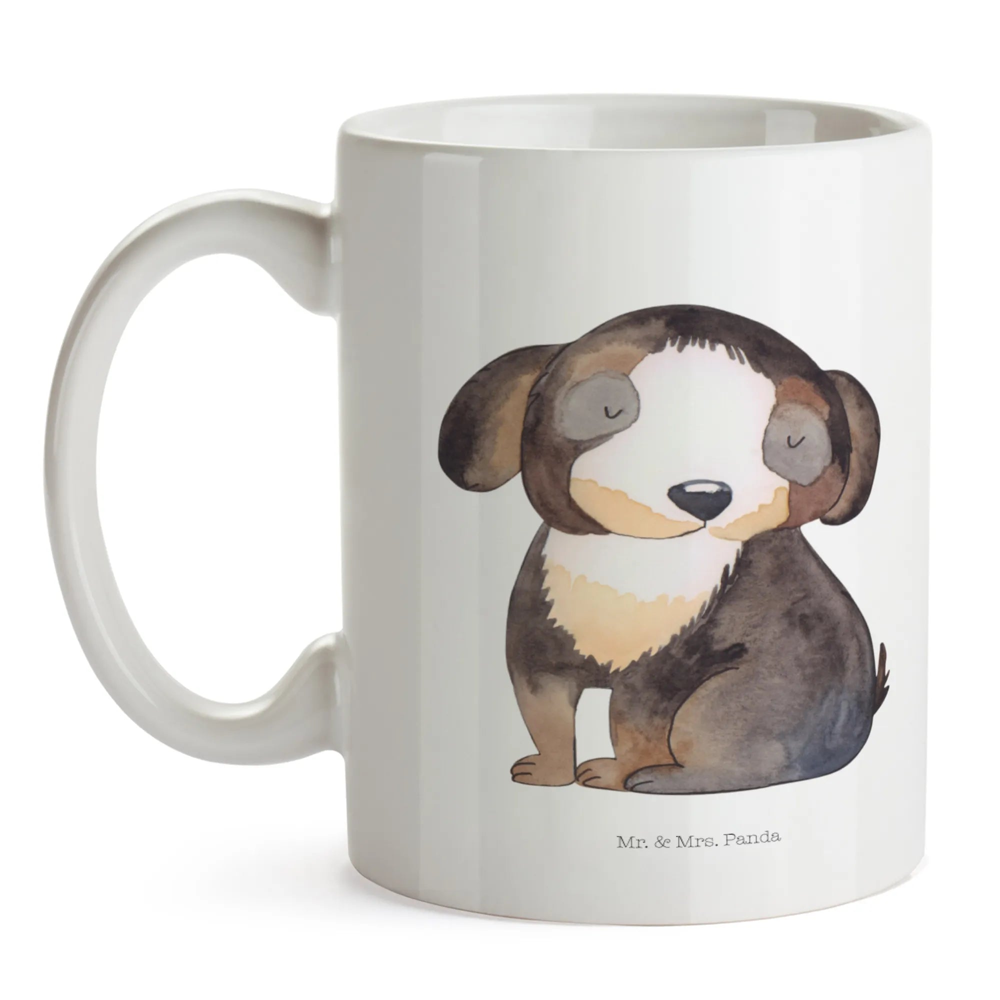 Tasse Hund entspannt - mit Spruch - Keramik - Weiß