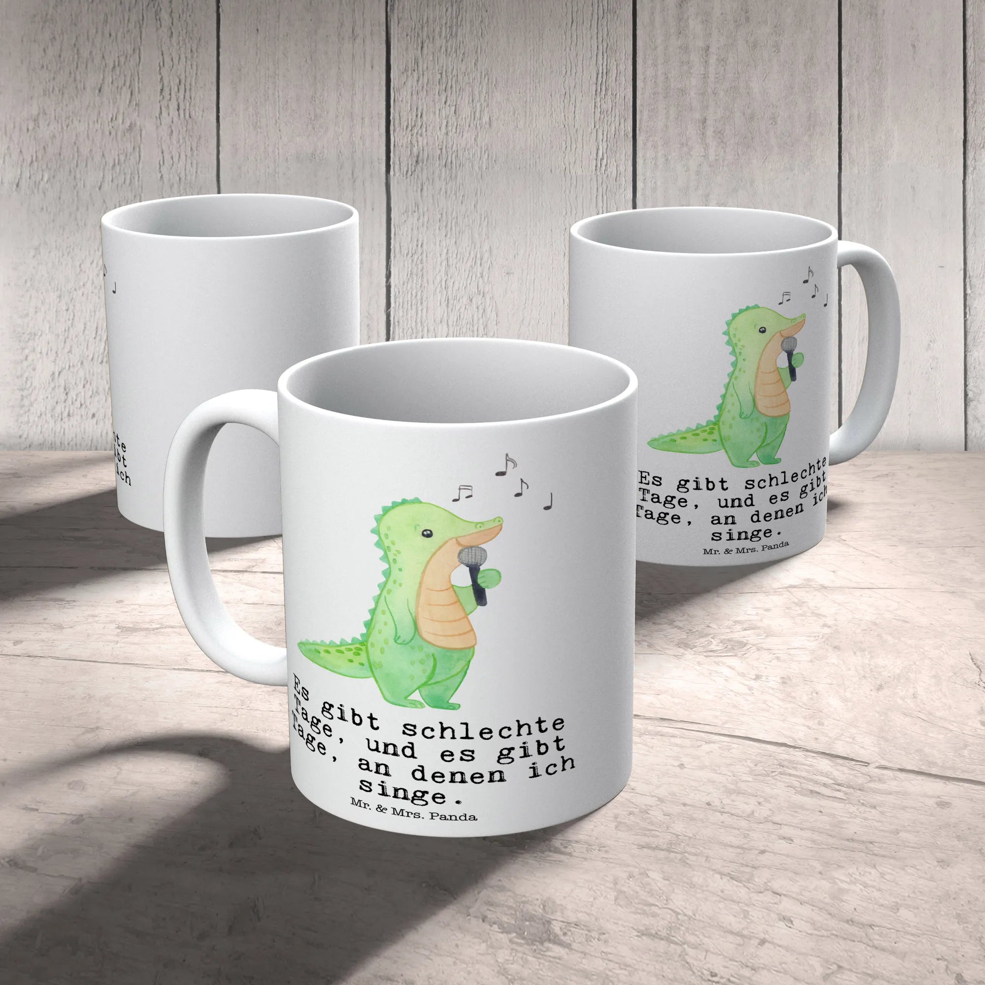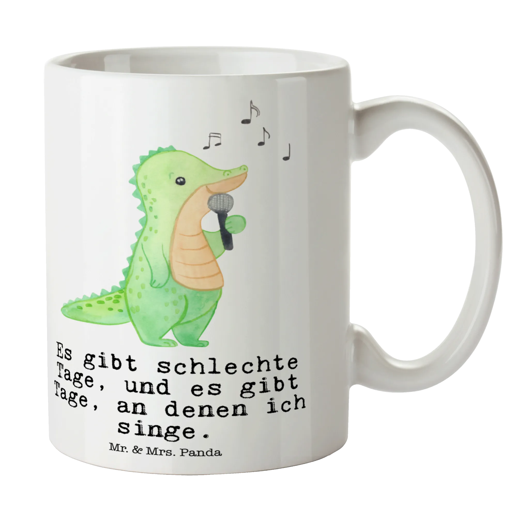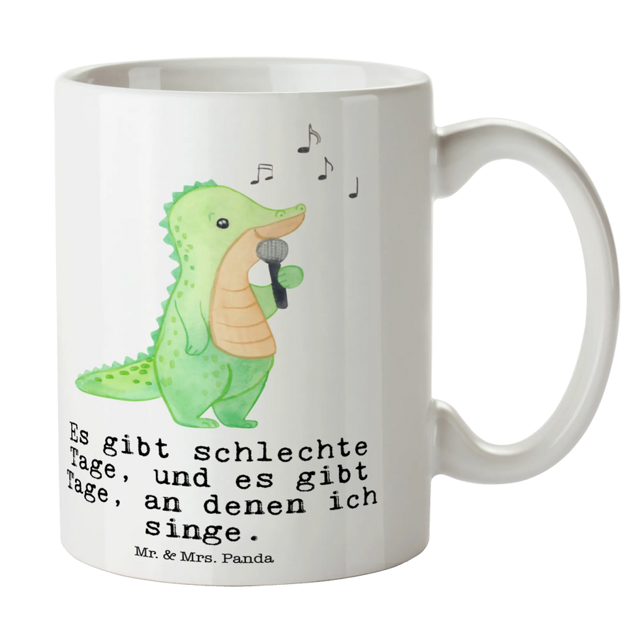 Die Kaffeetasse "Krokodil Singen Tage" aus der zauberhaften Hobby & Sport Kollektion von Mr. & Mrs. Panda ist das perfekte Geschenk für alle Liederfreunde und Hobbysänger. Mit ihrem einzigartigen Design – einem fröhlichen Krokodil, das begeistert singt – bringt diese Keramiktasse einen Hauch von Freude in jeden Alltag.