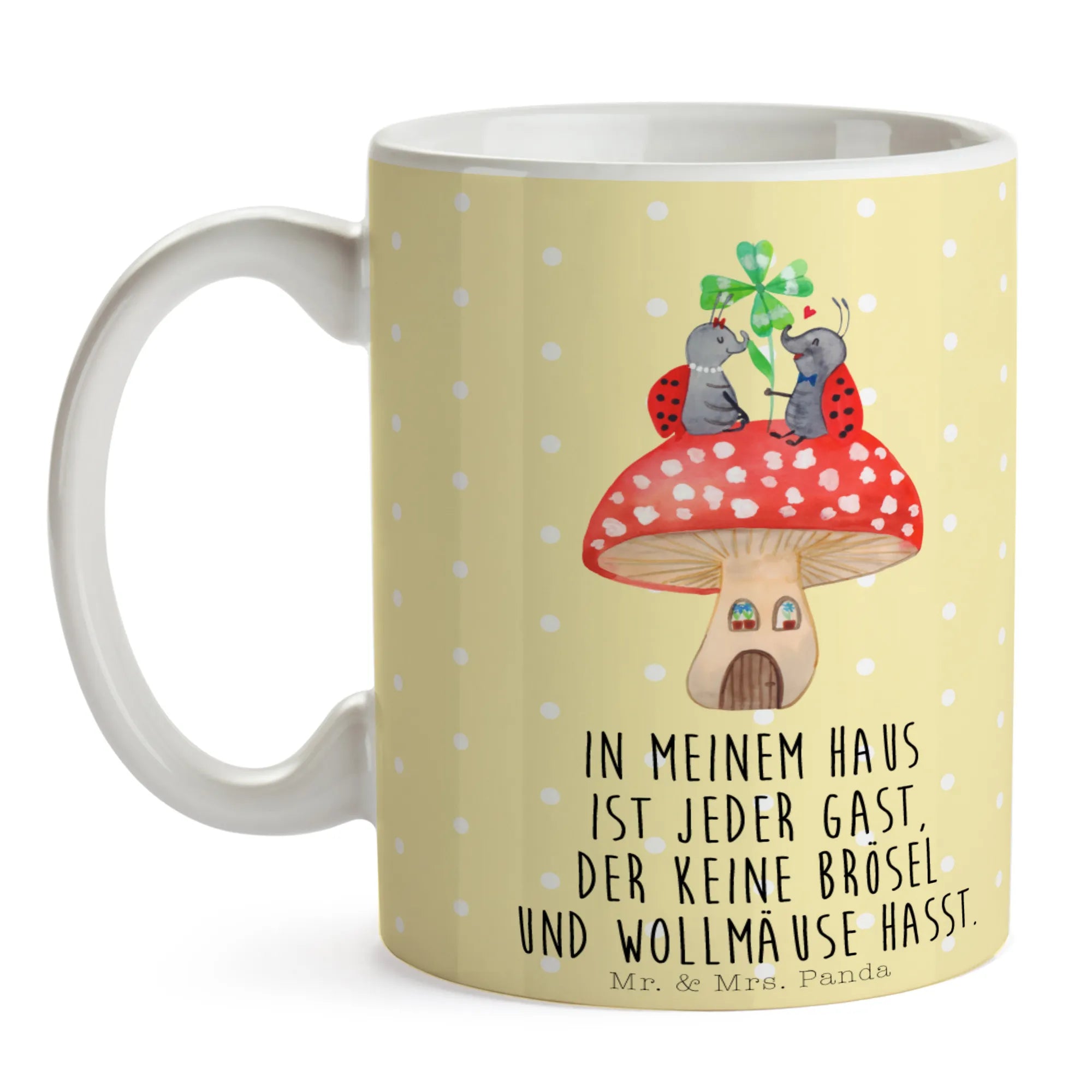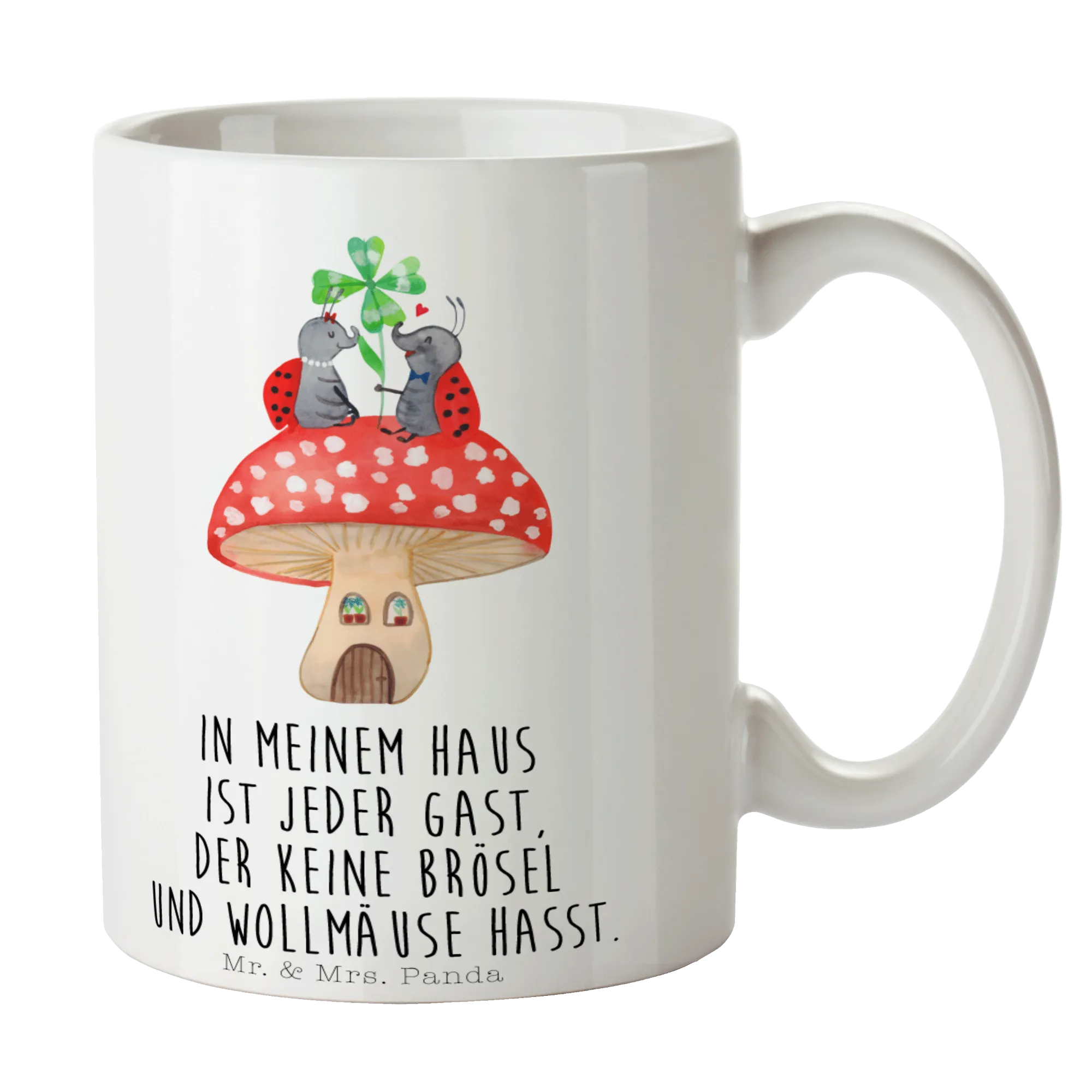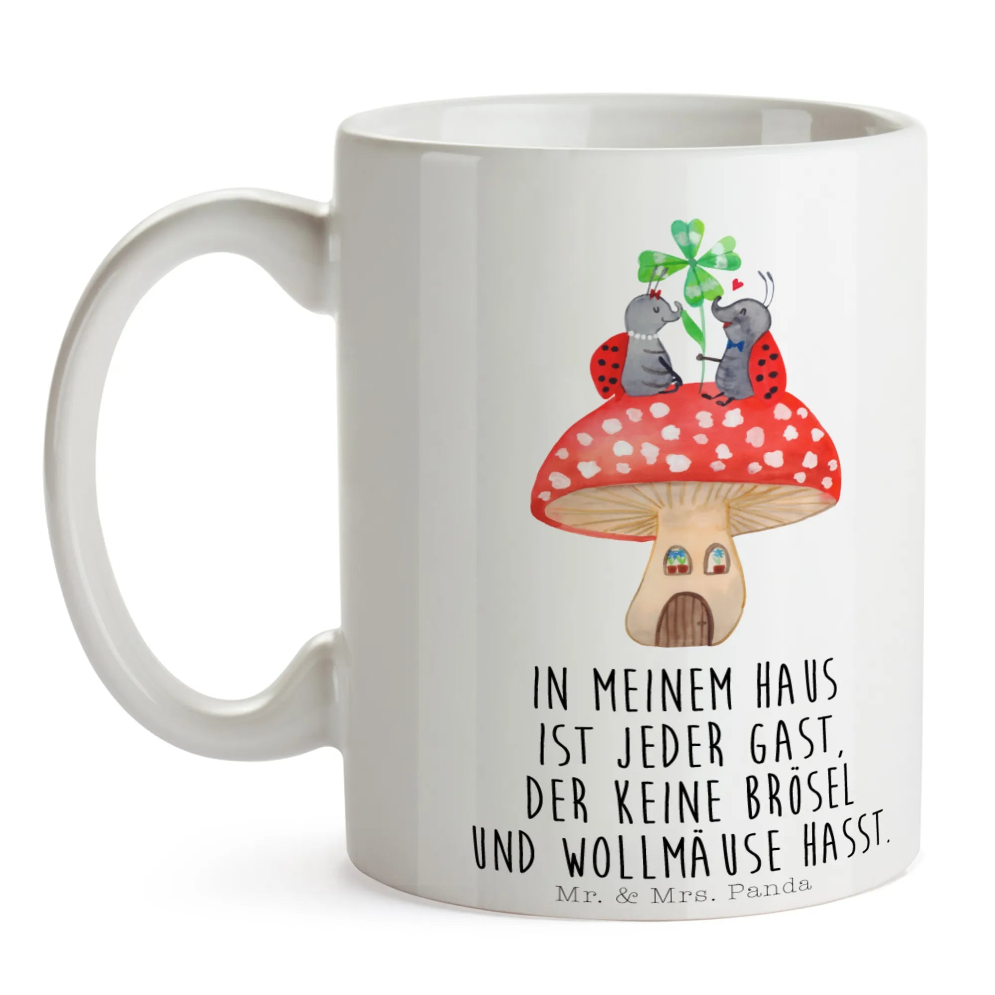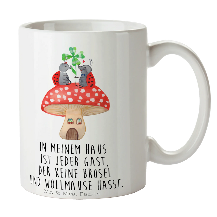 Tasse Marienkäfer Fliegenpilz - mit Spruch - Keramik - Weiß