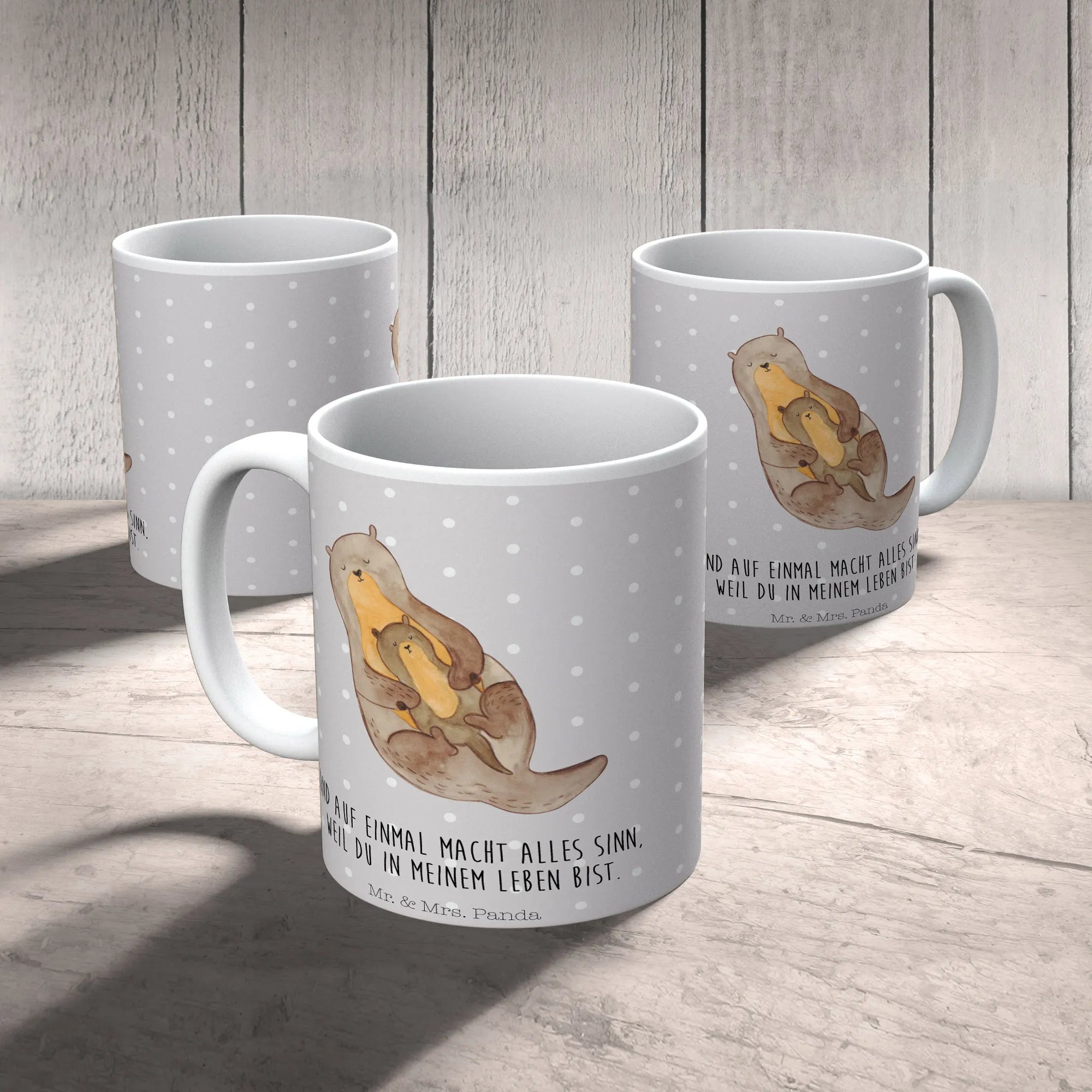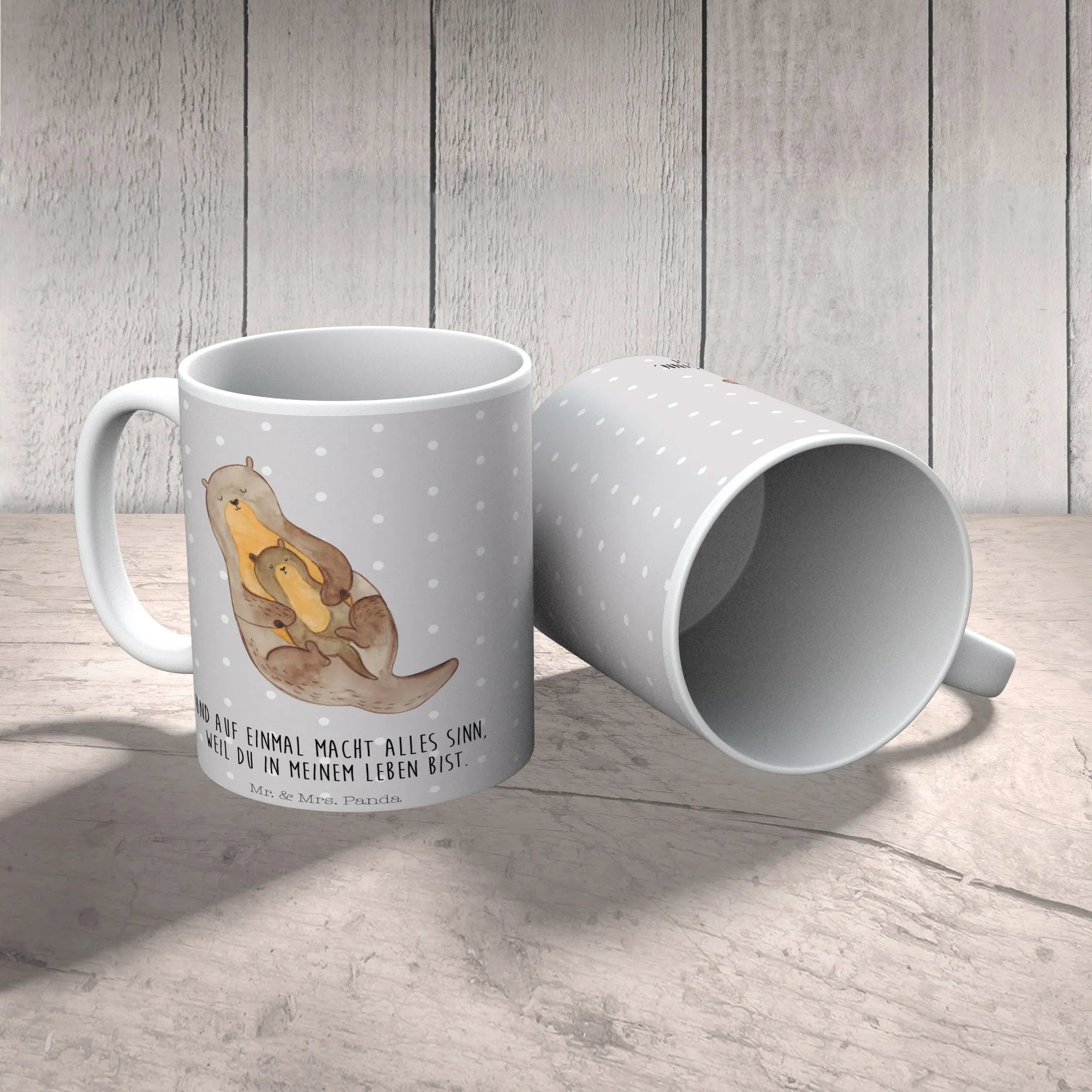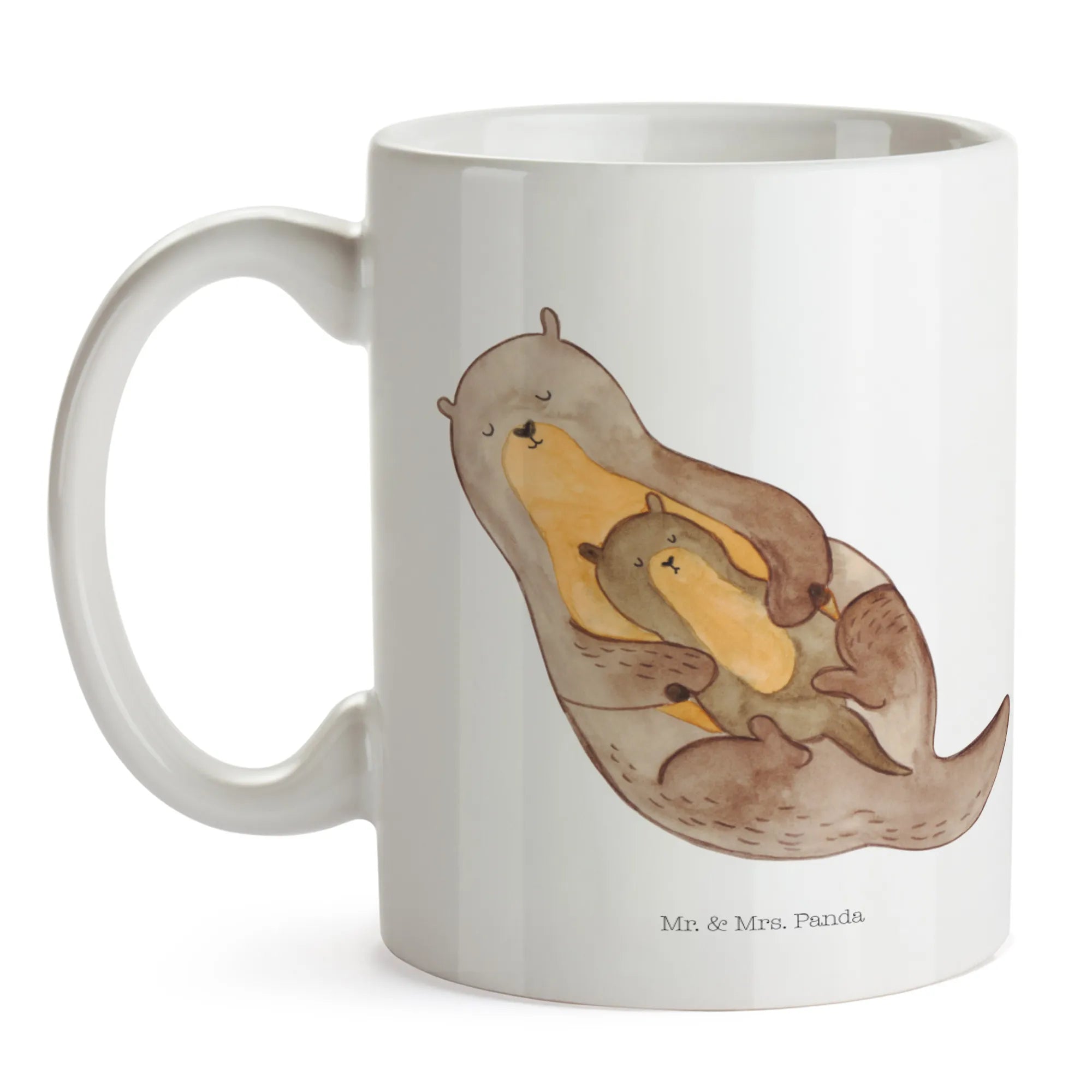 Das bezaubernde Design zeigt einen kleinen Otter, der sich liebevoll an sein Elternteil schmiegt, und vermittelt das Gefühl von Geborgenheit und Zuneigung. Die liebevolle Zeichnung, die von Mrs. Panda mit viel Hingabe gestaltet wurde, wirkt durch das hochwertige Material besonders edel. Diese Tasse ist nicht nur ein funktionales Alltagsobjekt, sondern auch ein Stück Kunst, das jeden erfreut, der Tiere und deren niedliche Art liebt.