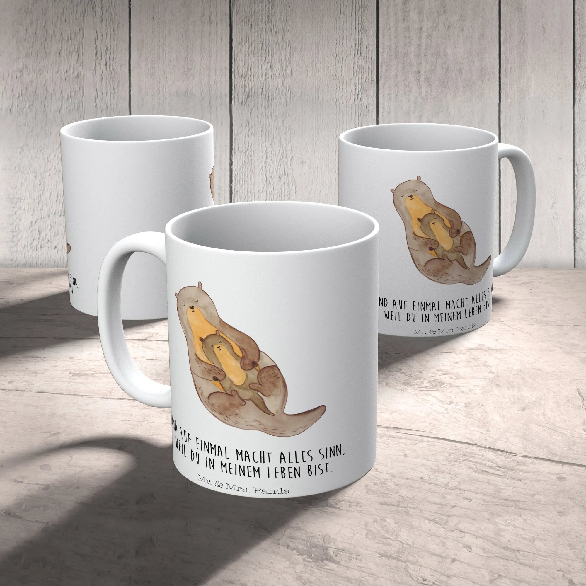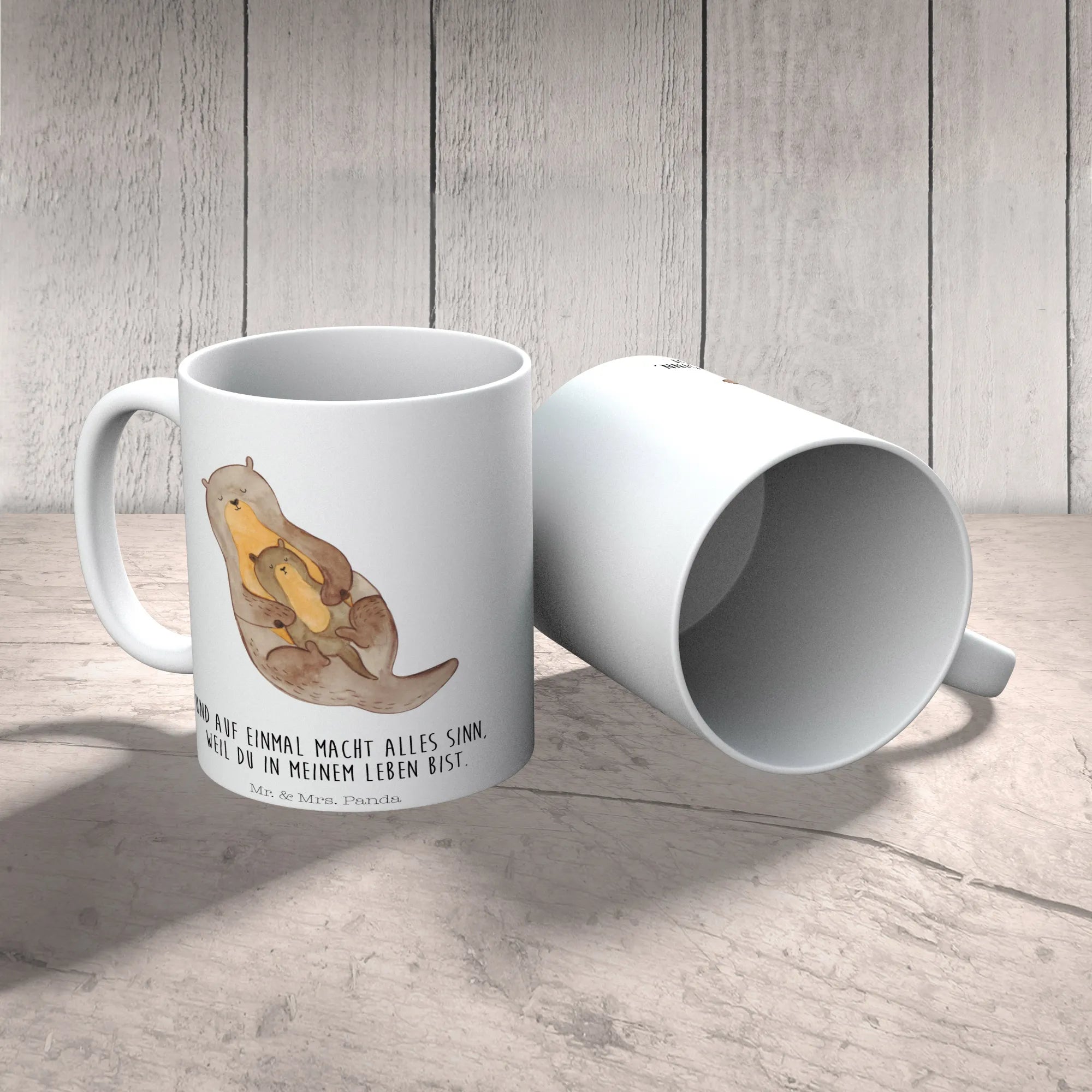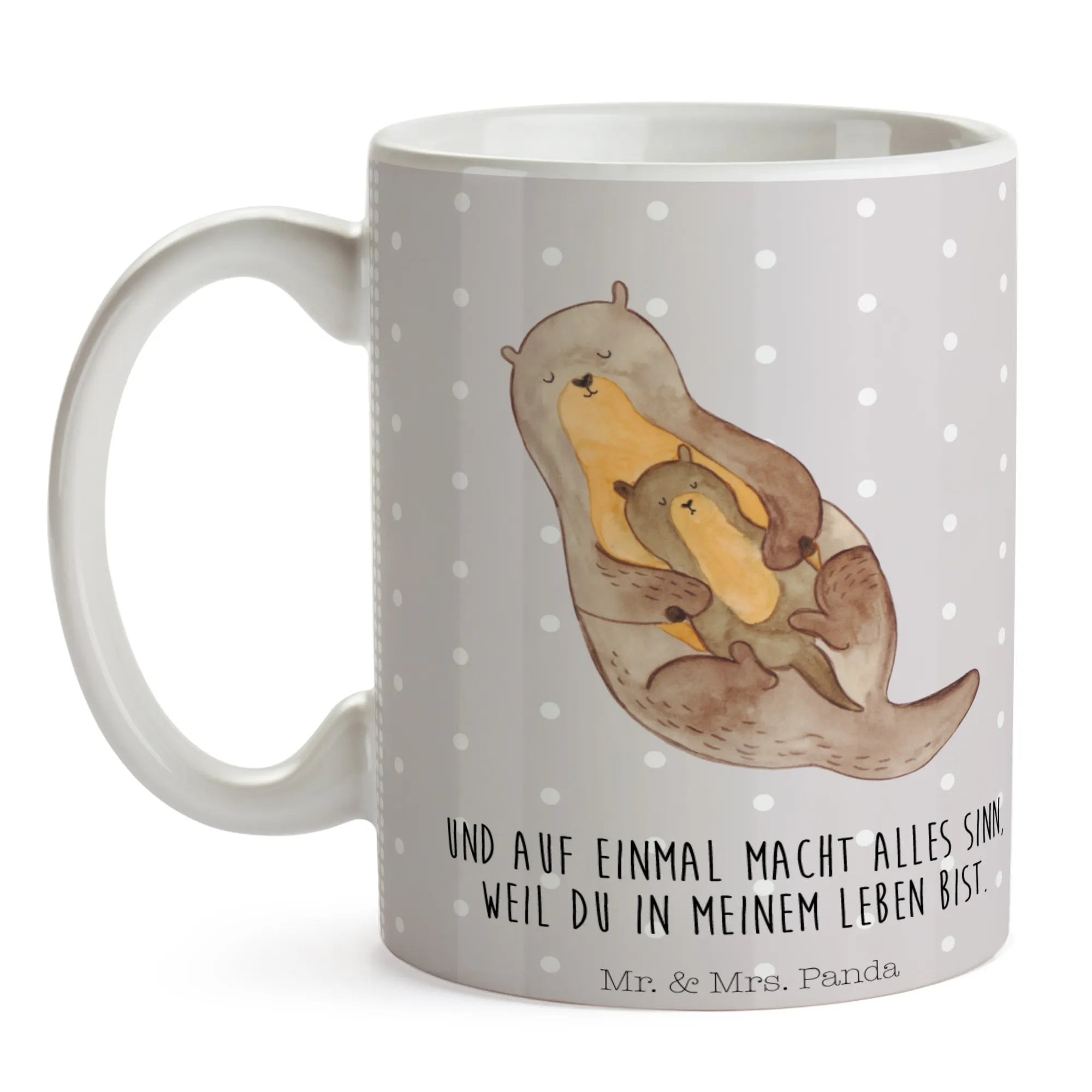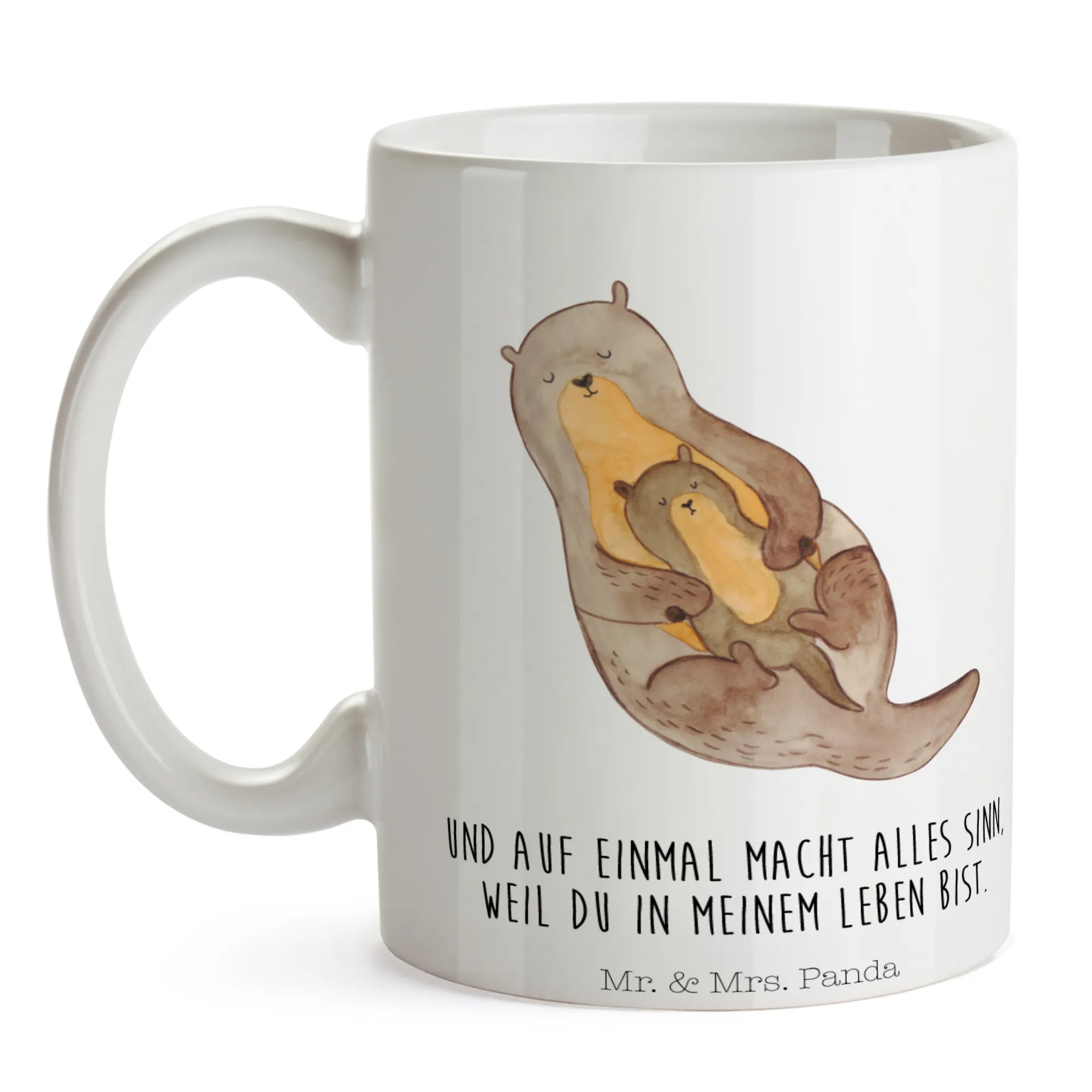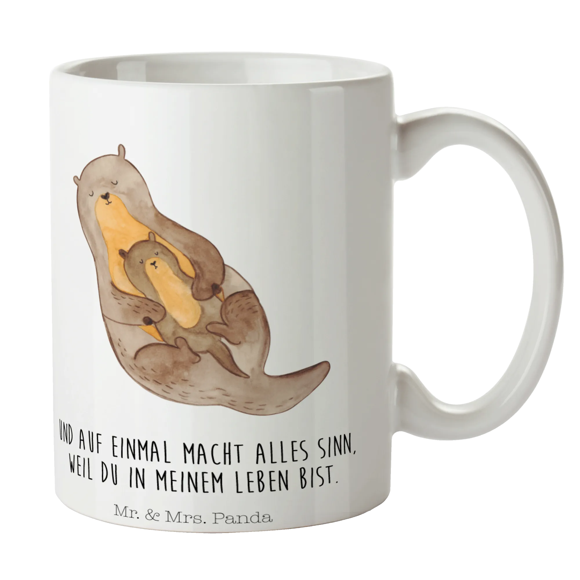 Tasse Otter mit Kind - mit Spruch - Keramik - Weiß