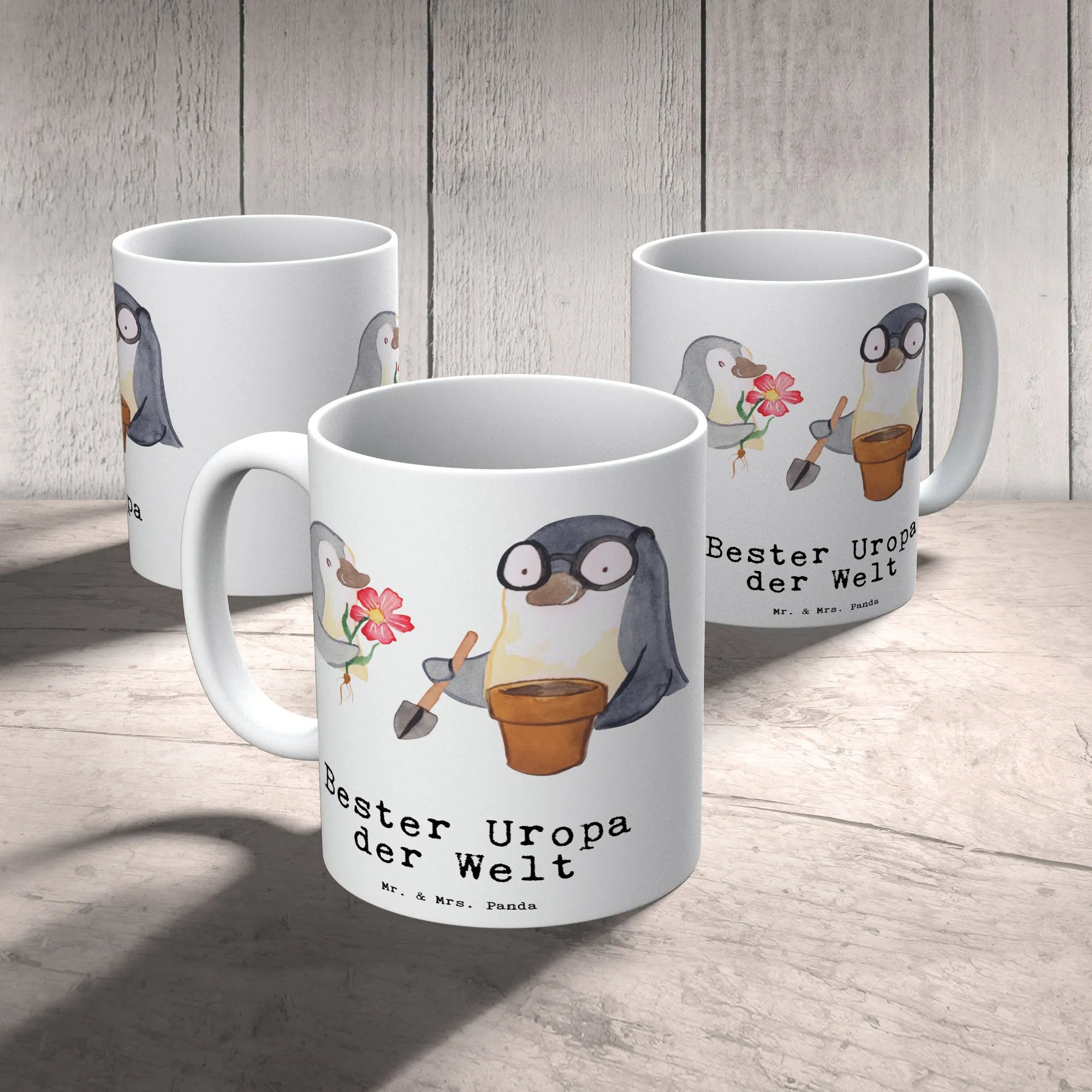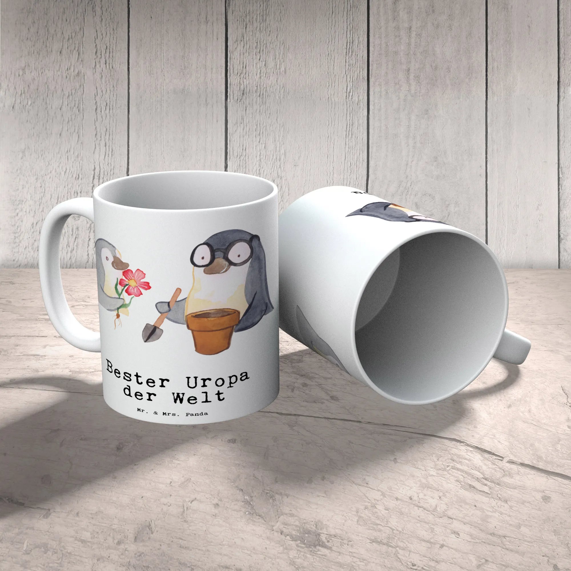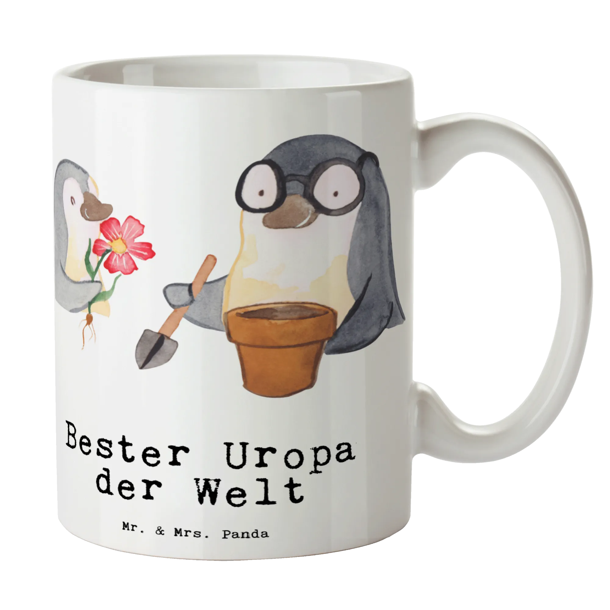 Suchst du ein Geschenk, das von Herzen kommt? Unsere Tasse "Pinguin – Bester Uropa der Welt" aus der Mr. & Mrs. Panda Kollektion Beziehungen ist das perfekte Mitbringsel für besondere Menschen in deinem Leben. Das liebevoll gezeichnete Motiv zeigt einen kleinen Pinguin, der seinem großen Uropa beim Einpflanzen einer Pflanze zuschaut. Der herzliche Spruch „Bester Uropa der Welt“ macht die Botschaft unverkennbar.