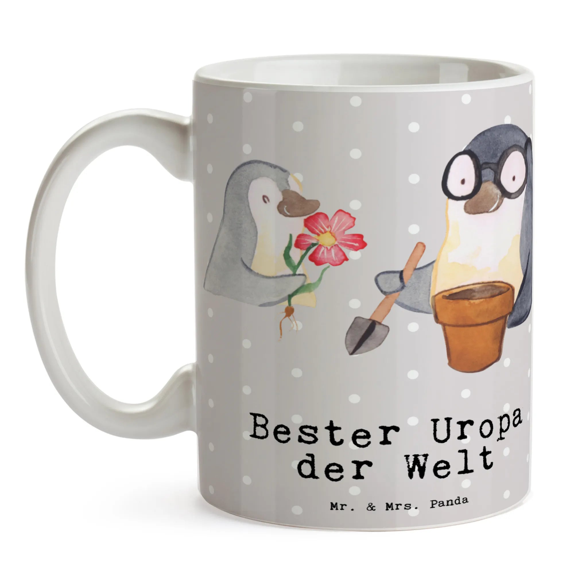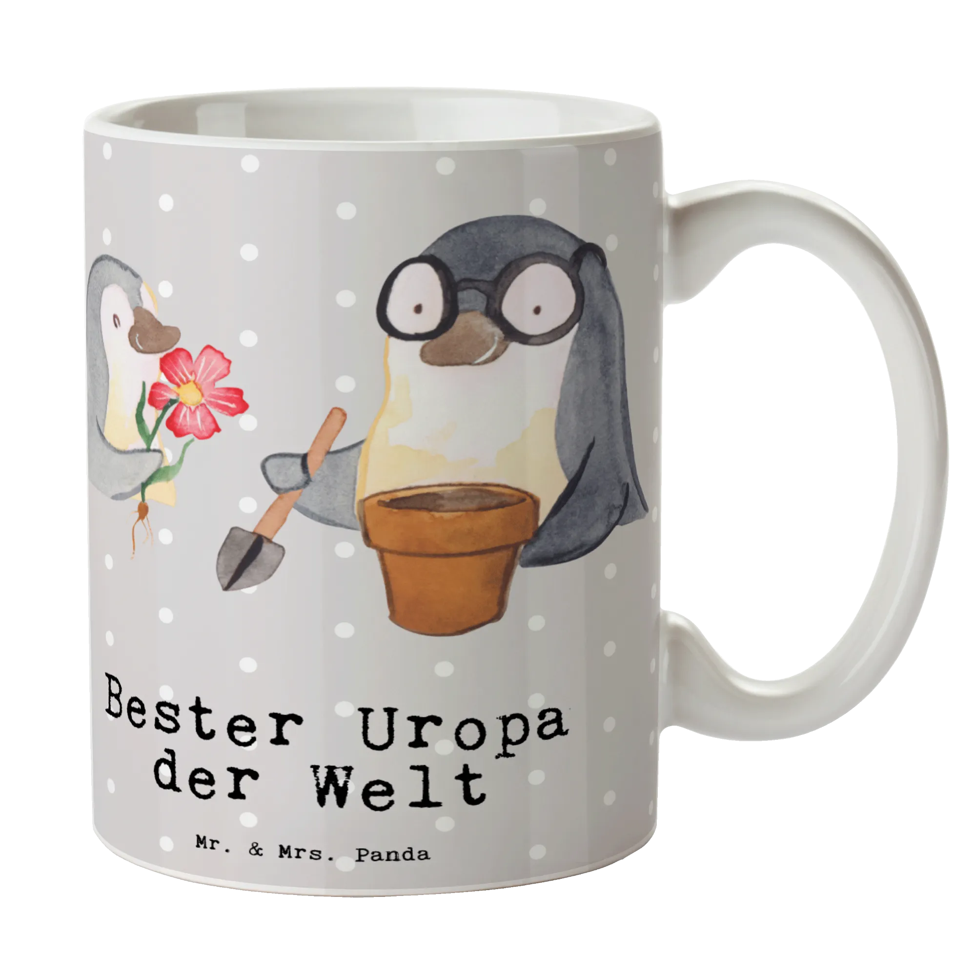 Tasse Pinguin Bester Uropa der Welt - Grau Pastell