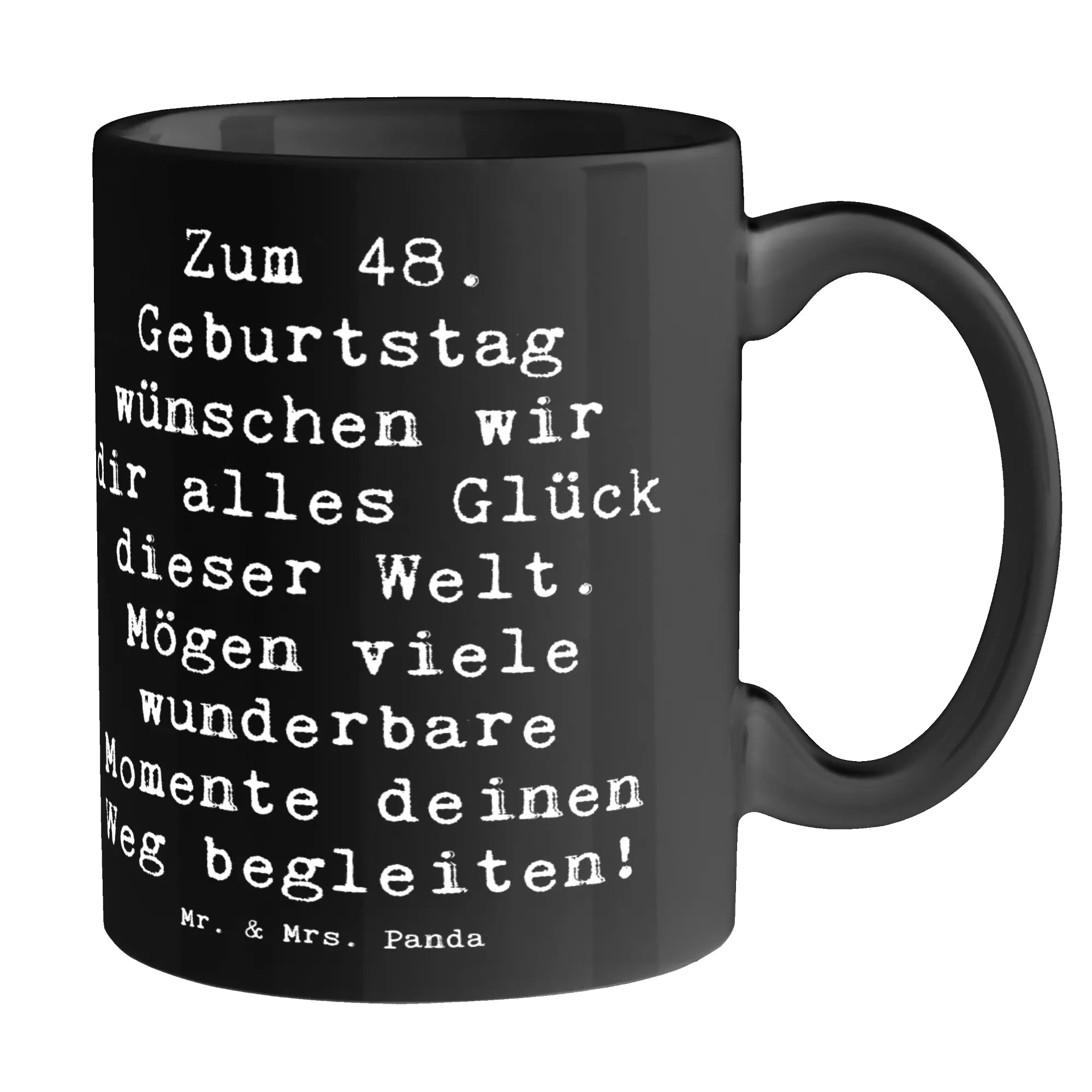 Suchst du das perfekte Geschenk für jemanden, der seinen 48. Geburtstag feiert? Unsere wunderschöne Tasse von Mr. & Mrs. Panda, die speziell für diesen Anlass entworfen wurde, ist die ideale Wahl! Mit dem liebevollen Spruch "Zum 48. Geburtstag wünschen wir dir alles Glück dieser Welt. Mögen viele wunderbare Momente deinen Weg begleiten!" ist diese Tasse eine herzliche Geste, die jeden Beschenkten erfreuen wird.