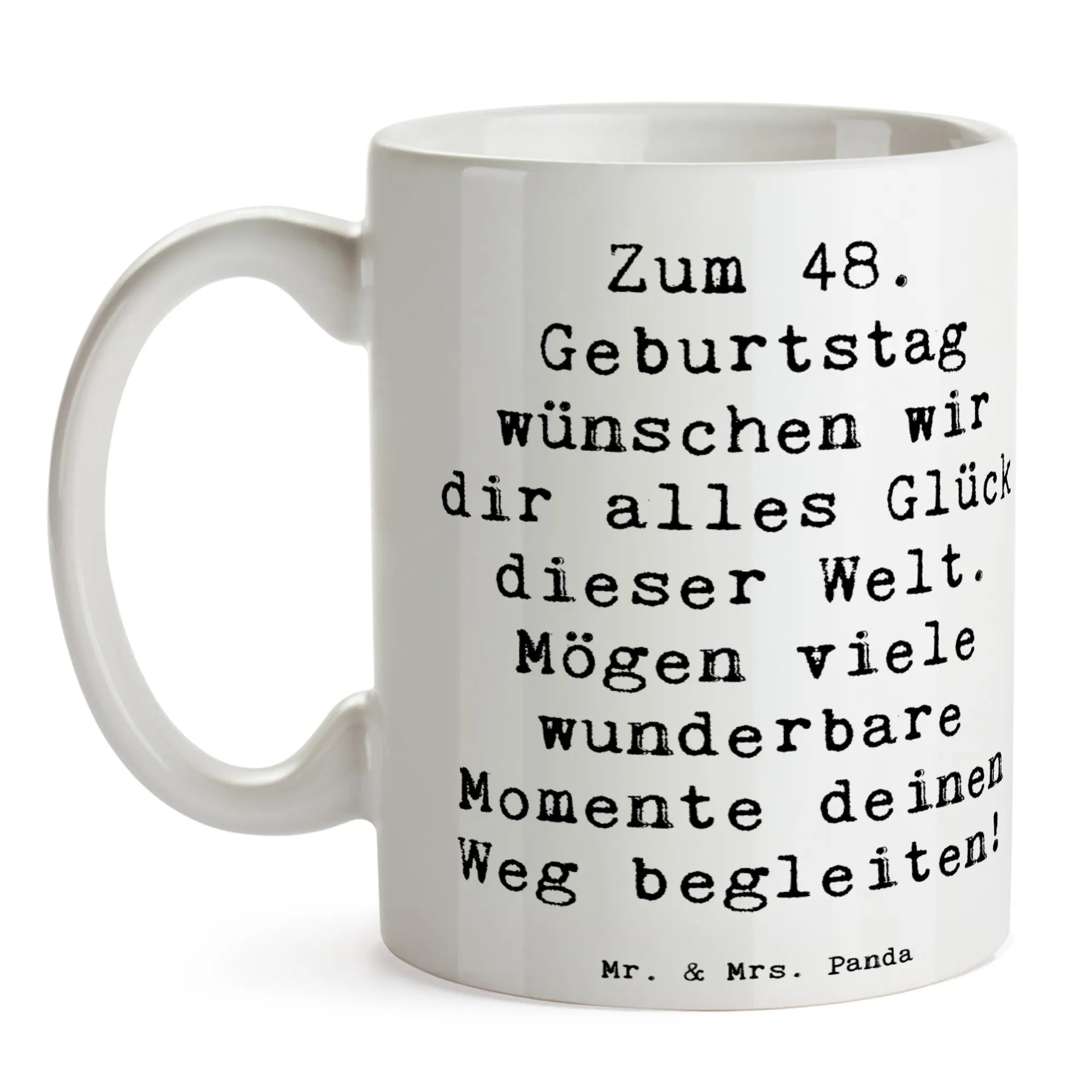 Der Spruch "Zum 48. Geburtstag wünschen wir dir alles Glück dieser Welt. Mögen viele wunderbare Momente deinen Weg begleiten!" macht diese Tasse zum idealen Geburtstagsgeschenk für deinen Freund, deine Freundin, Verwandte oder Kollegen.
