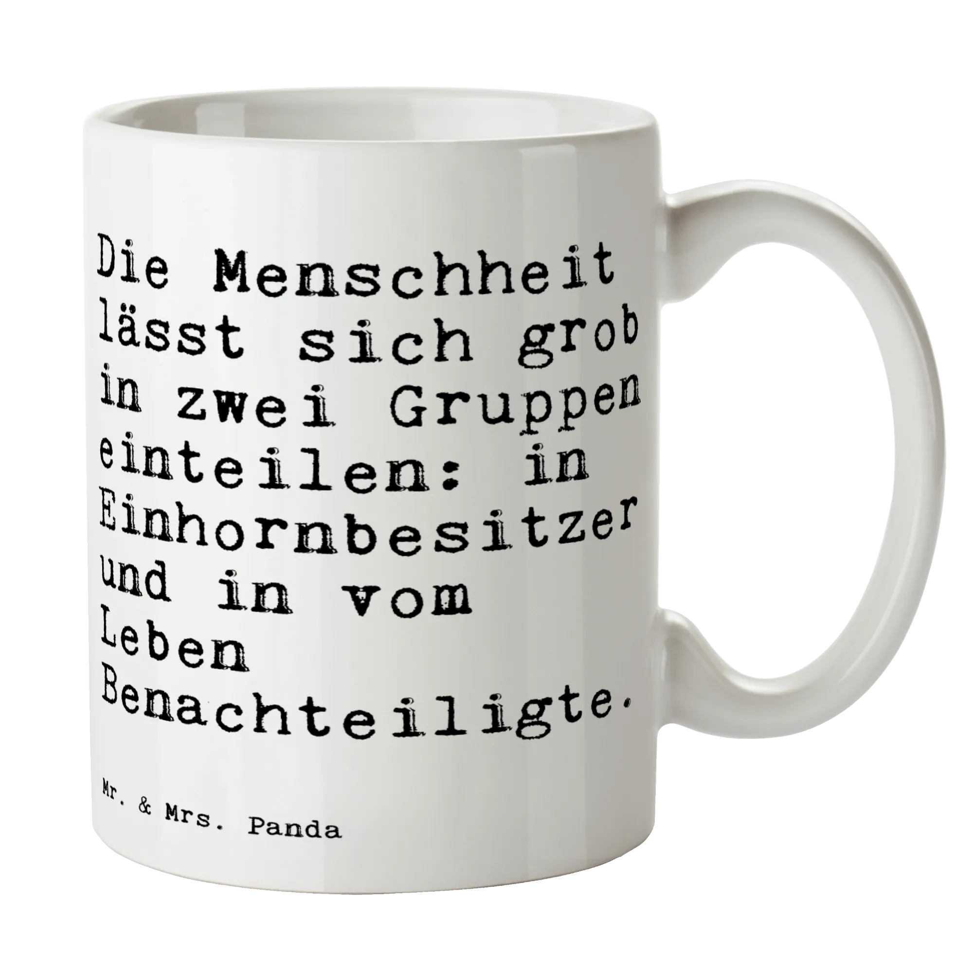 Tasse Sprüche und Zitate Die Menschheit lässt sich grob in zwei Gruppen einteilen: in Einhornbesitzer und in vom Leben Benachteiligte. - Keramik - Weiß