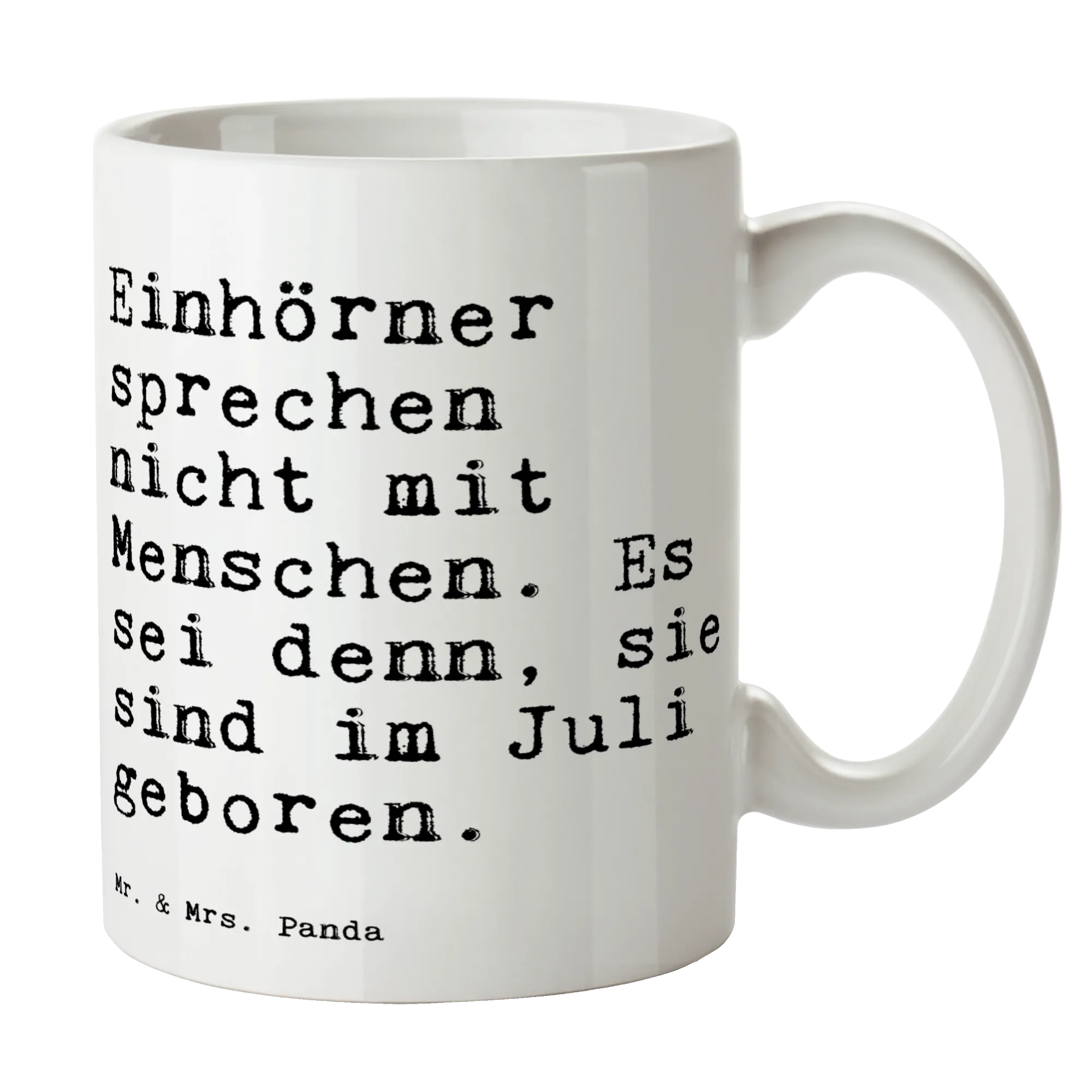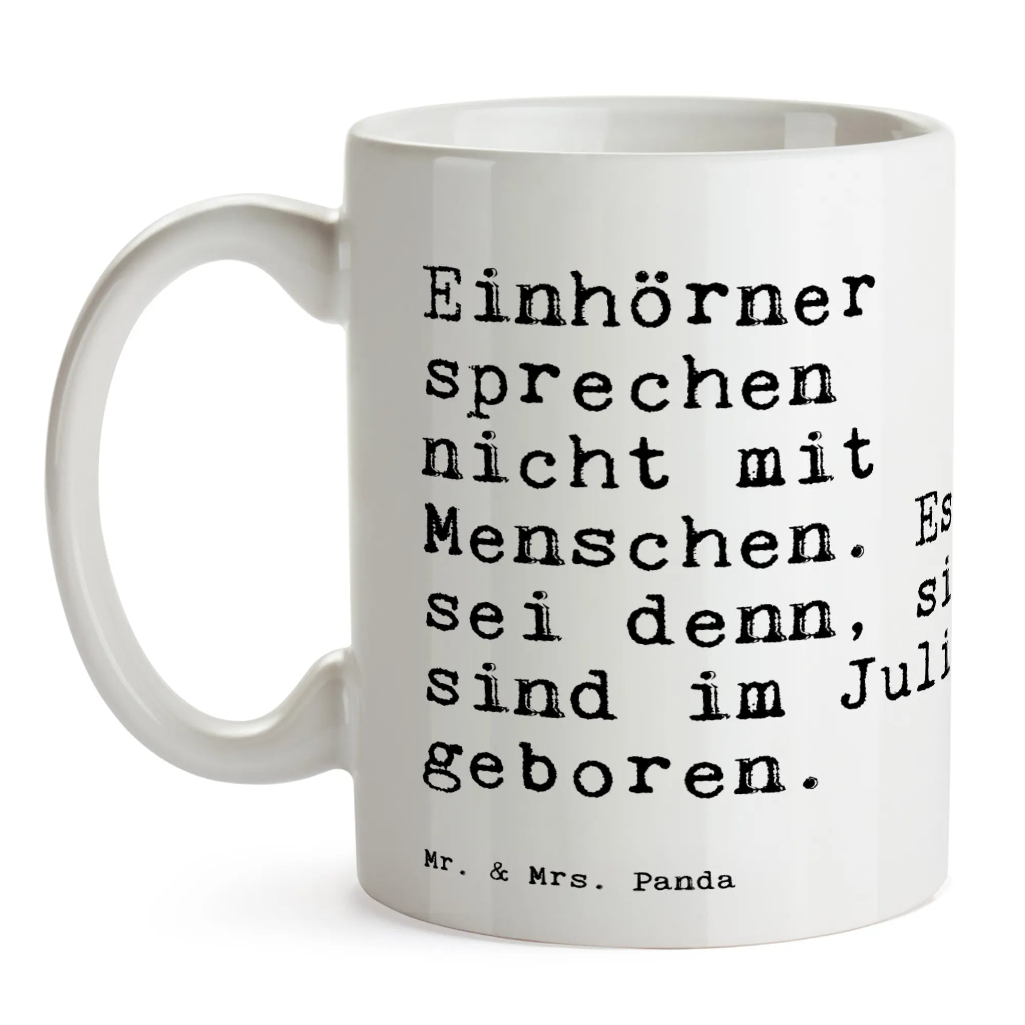 Tasse Sprüche und Zitate Einhörner sprechen nicht mit Menschen. Es sei denn, sie sind im Juli geboren. - Keramik - Weiß