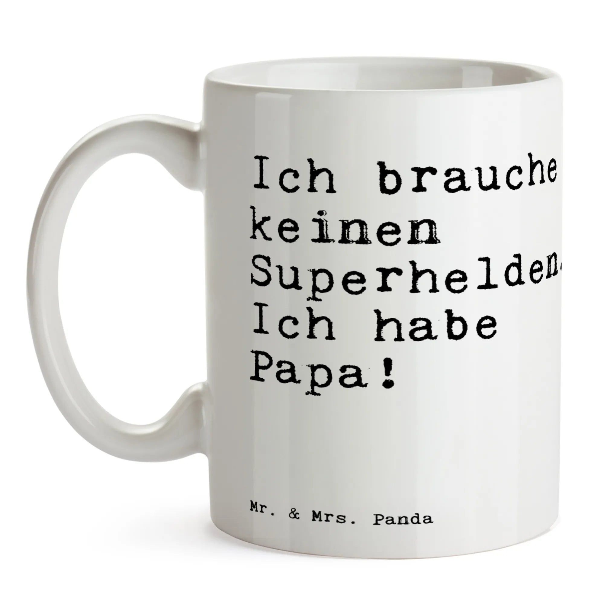 Die liebevolle Tasse "Ich brauche keinen Superhelden. Ich habe Papa!" von Mr. & Mrs. Panda ist das perfekte Geschenk für alle, die ihren Vater schätzen.