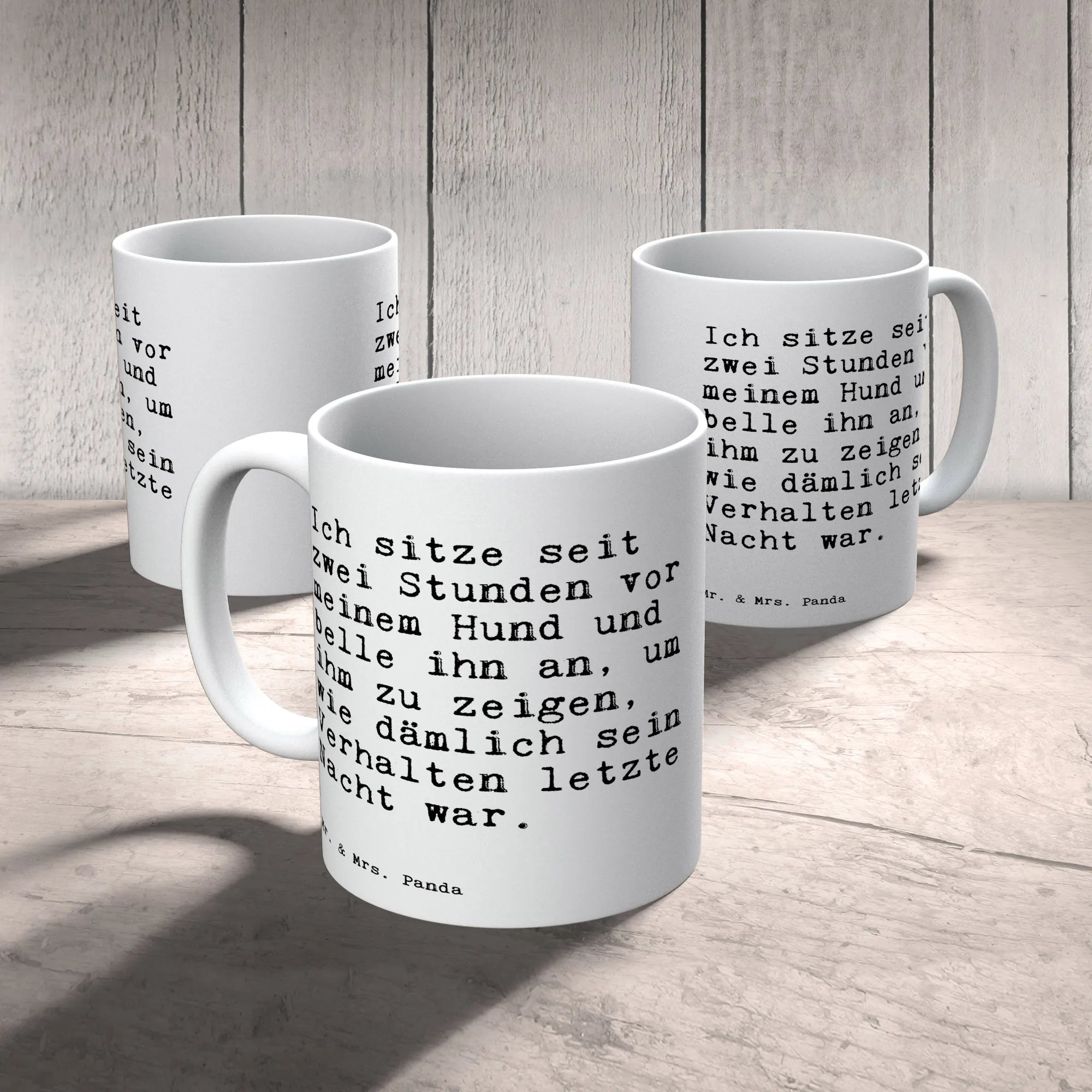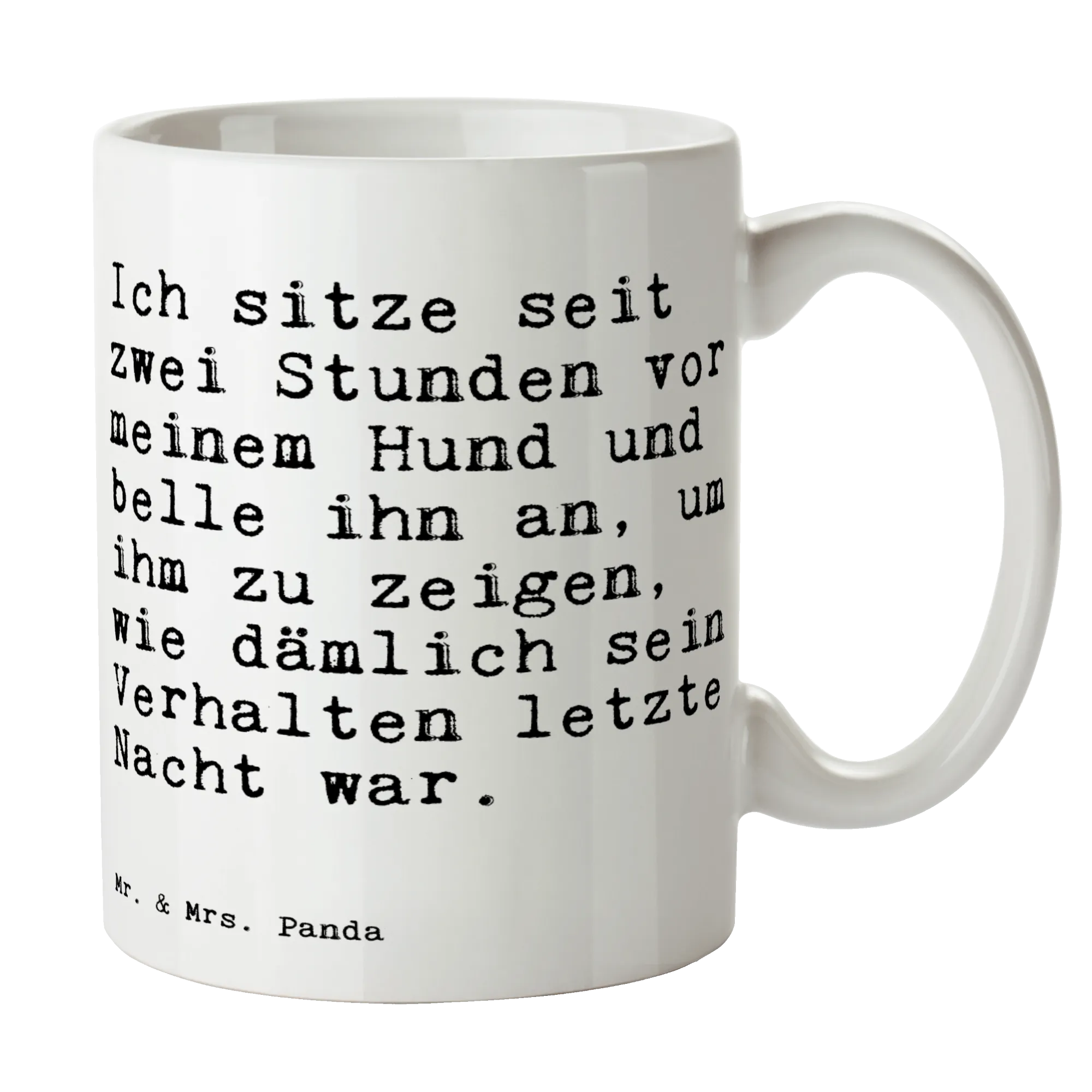 Tasse Sprüche und Zitate Ich sitze seit zwei Stunden vor meinem Hund und belle ihn an, um ihm zu zeigen, wie dämlich sein Verhalten letzte Nacht war. - Keramik - Weiß